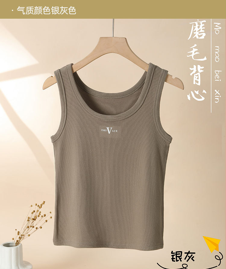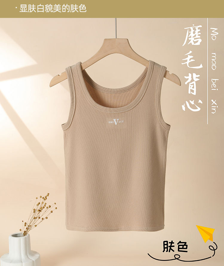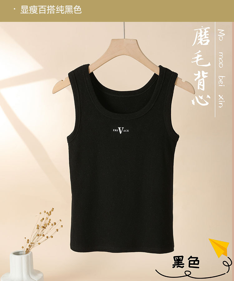 2023秋冬新款螺纹双面磨毛背心慕斯羊绒保暖背心女士打底小背心女