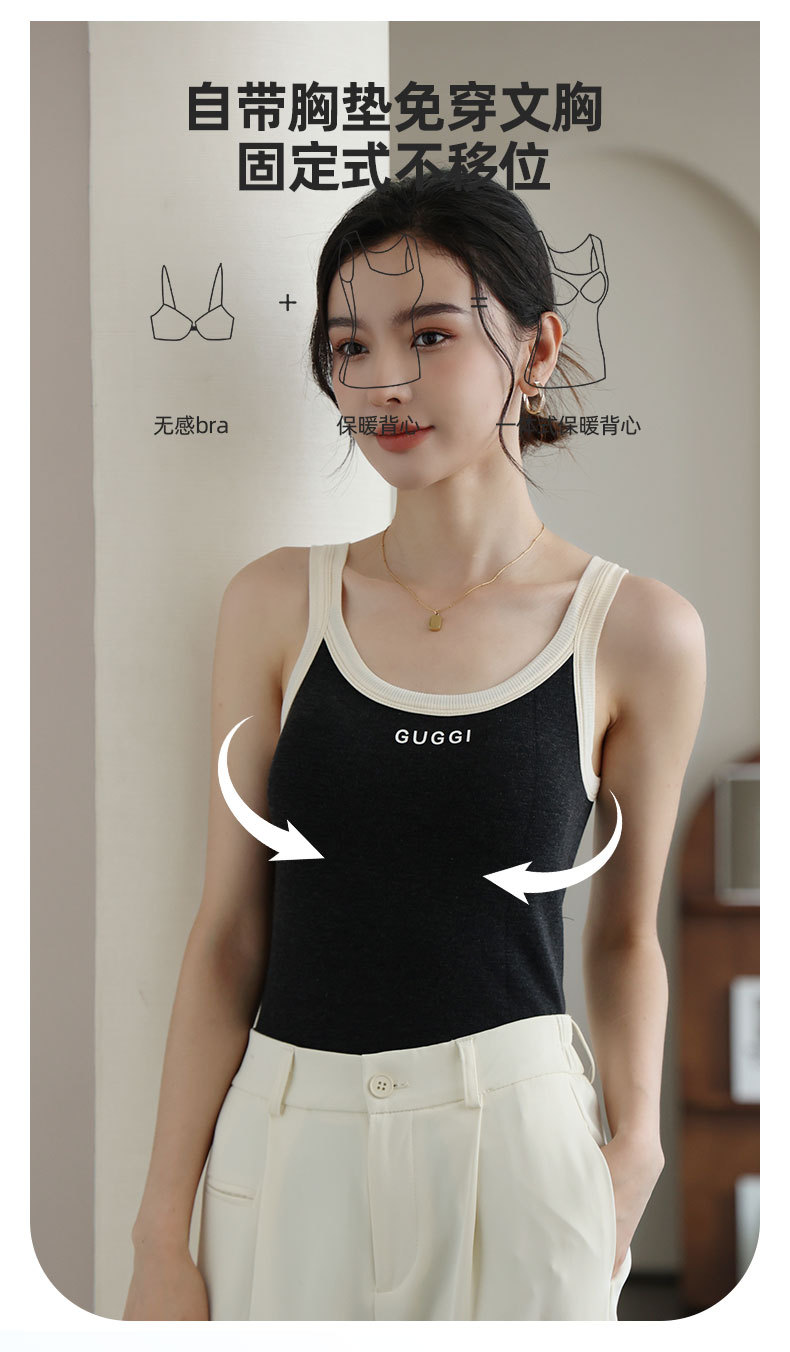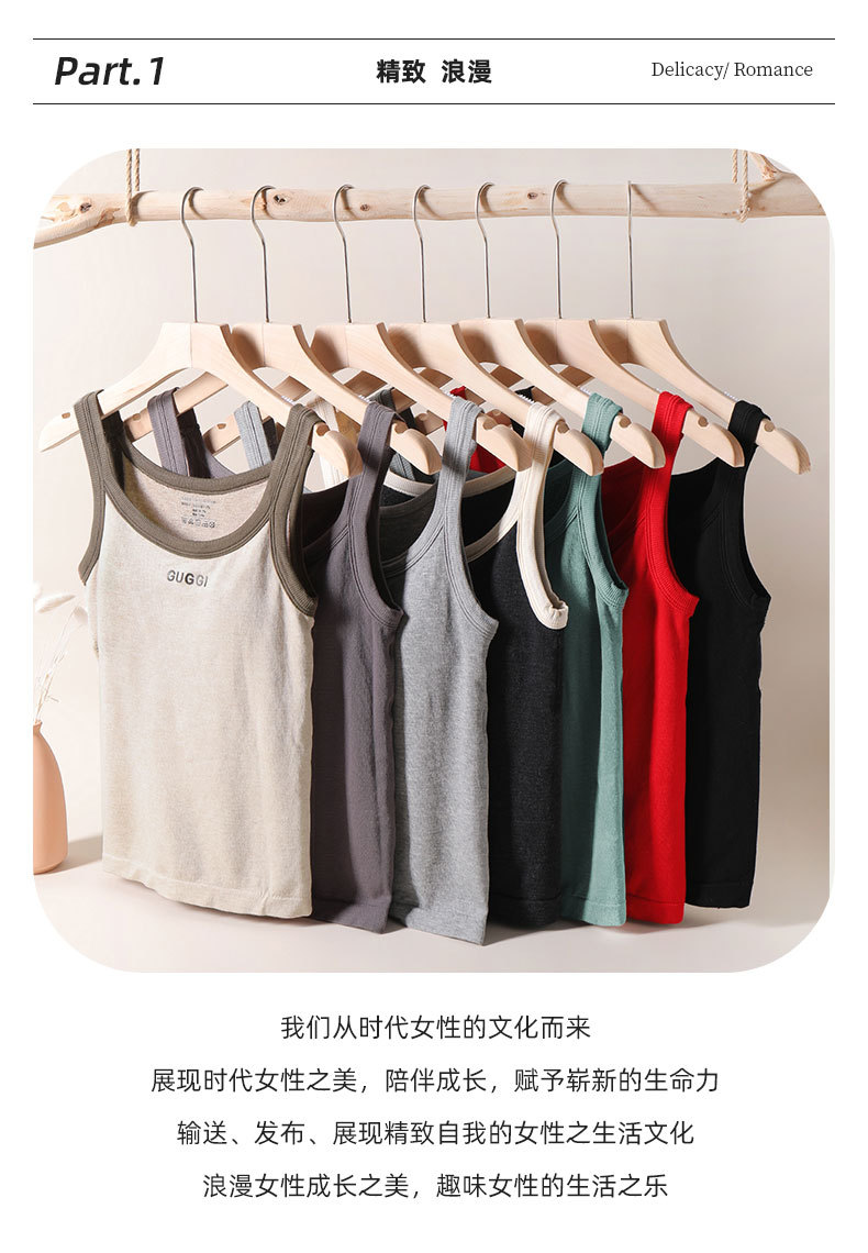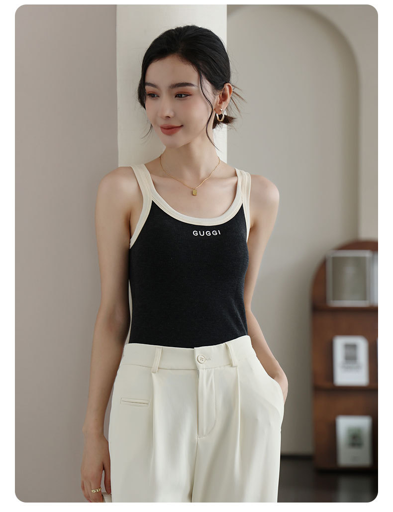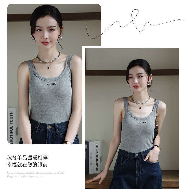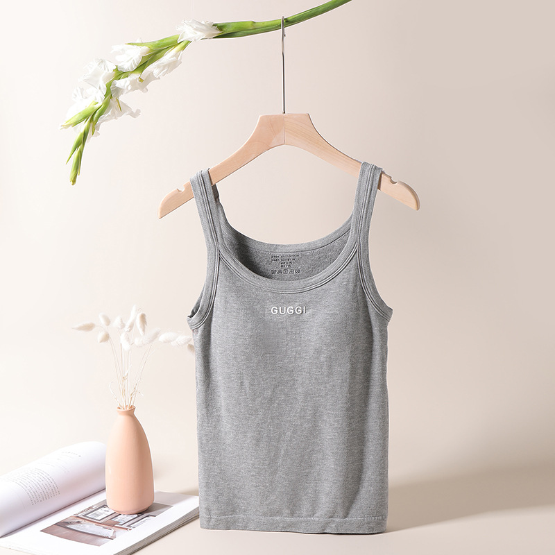 新款字母吊带背心带胸垫圆领美背修身显瘦无袖上衣百搭外穿