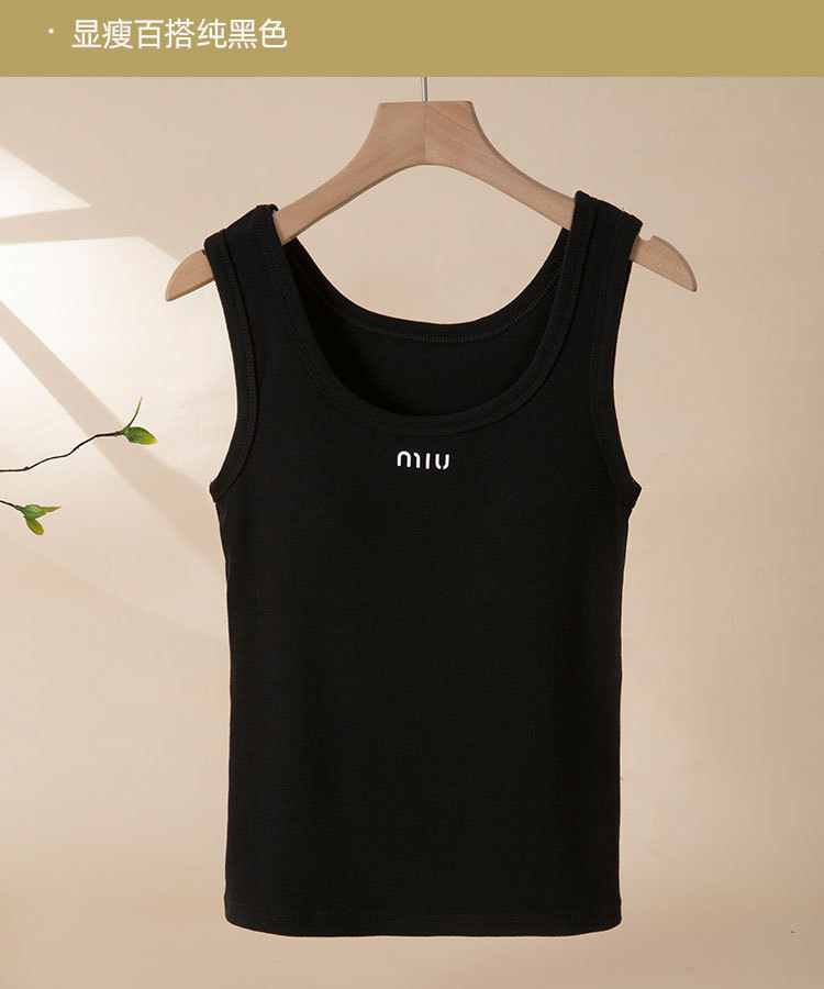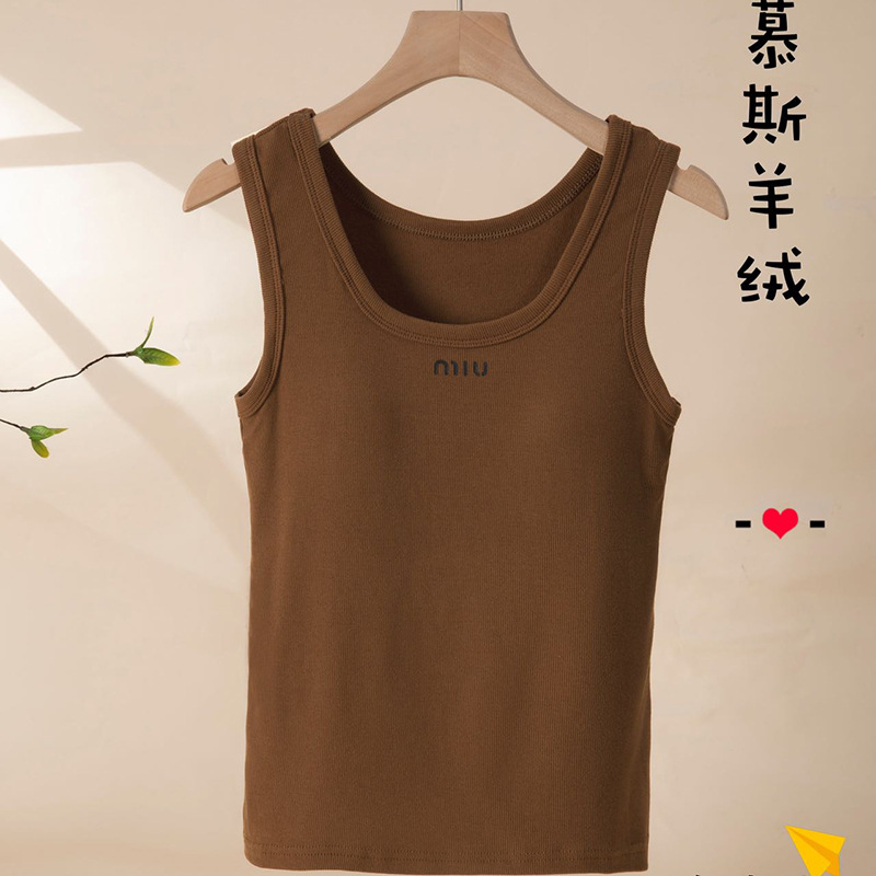 新款一体杯螺纹双面磨毛背心慕斯羊绒保暖背心女士打底小背心女