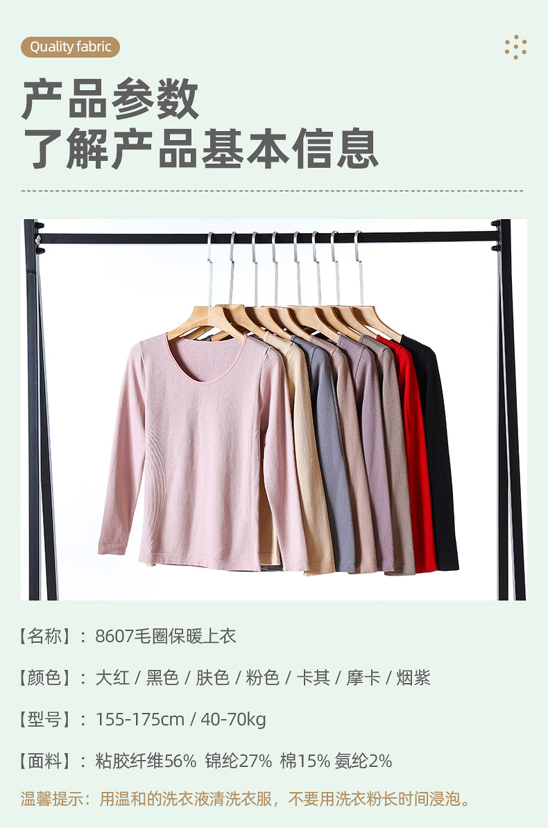 保暖上衣女秋冬单件肌底衣 圆领女士塑身保暖衣 贴身舒适打底衫女