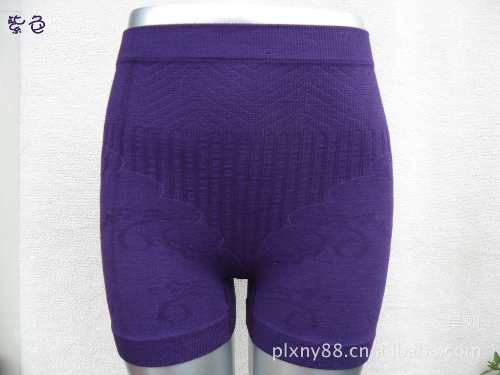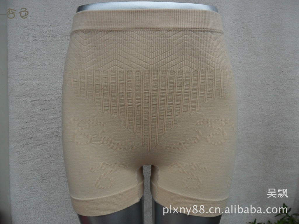 女士无缝高腰收腹内裤飘莱雪平角裤棉弹性平脚裤女美体罗纹提花