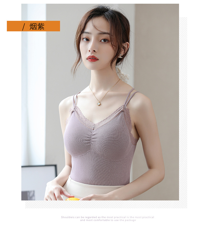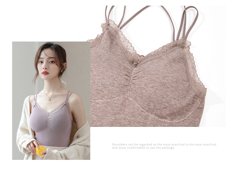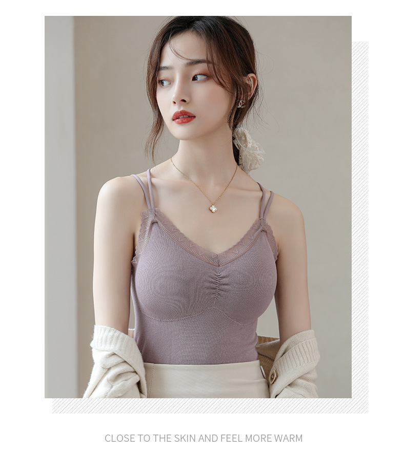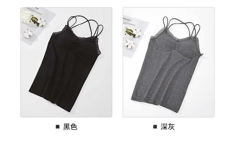 无缝美体秋冬保暖背心吊带毛圈背心女士连体杯打底背心