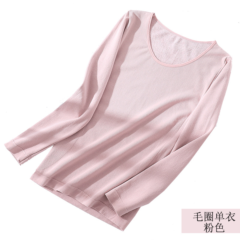 毛圈保暖上衣女秋冬毛圈绒单件保暖内衣圆领秋冬女士塑身保暖上衣