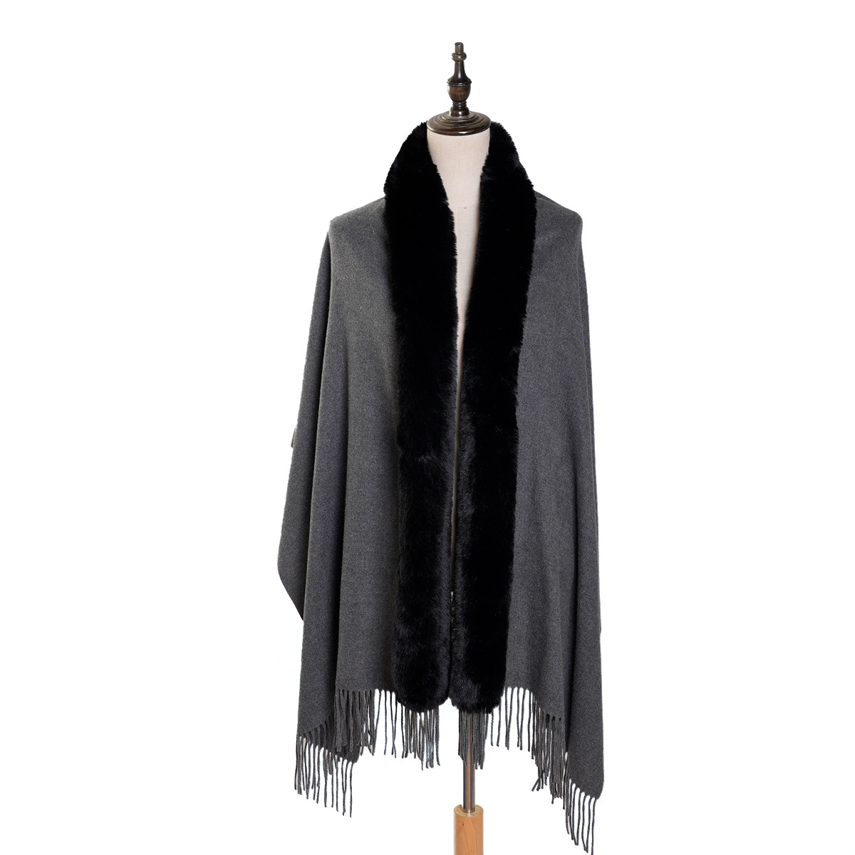 2023欧美冬季热销新款围巾保暖女士毛领围巾披肩两用加厚礼服披肩