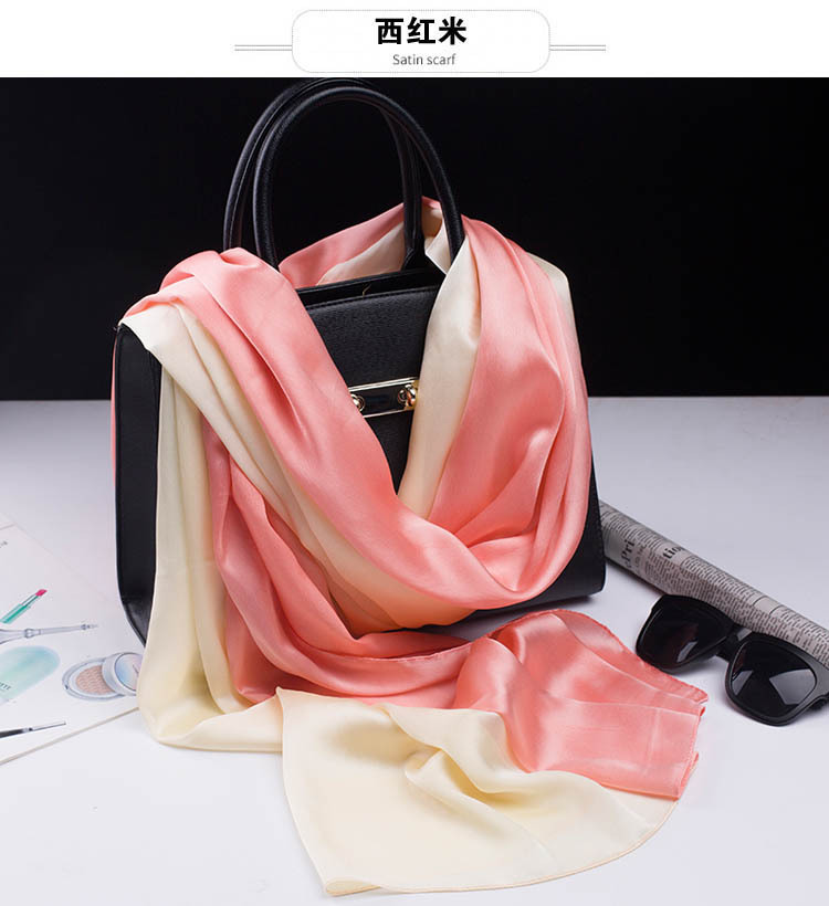 新款杭州丝绸仿真丝丝巾女新丝缎百搭长款空调披肩渐变色围巾批发