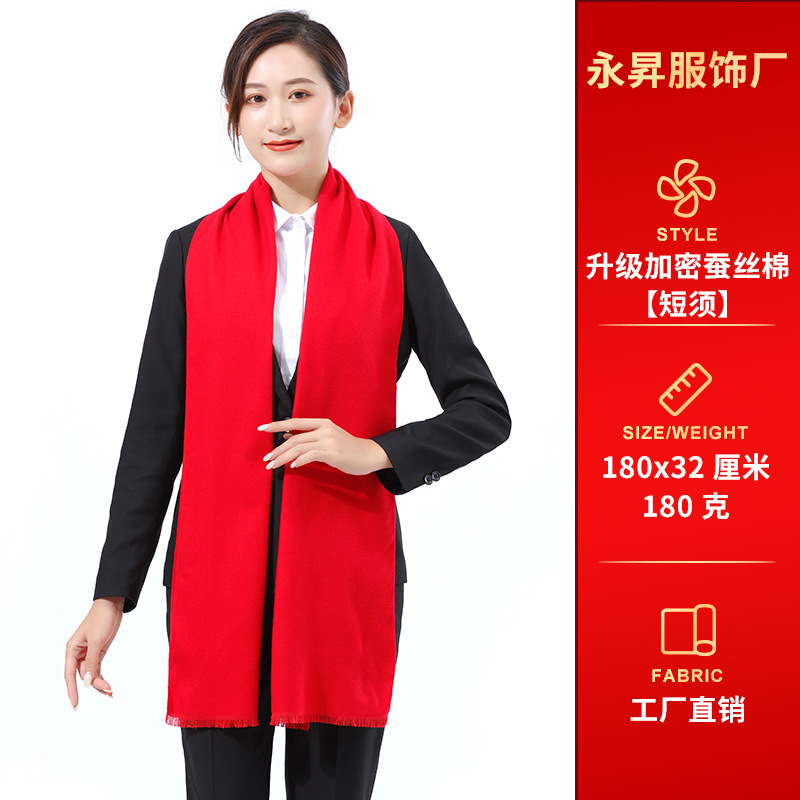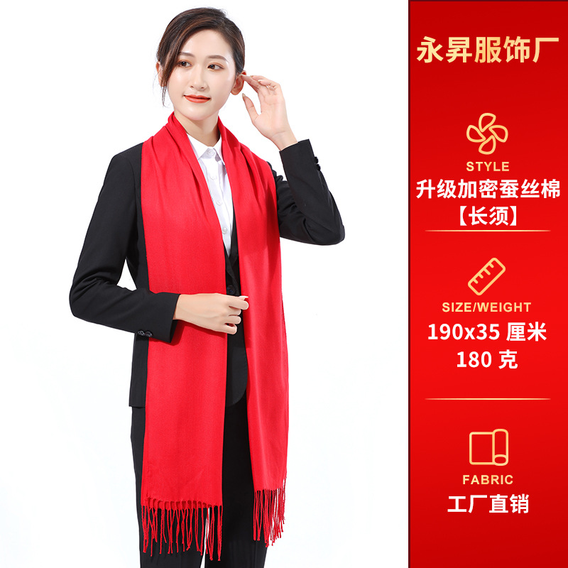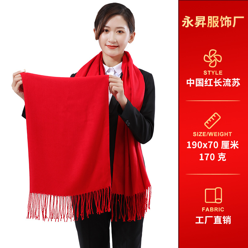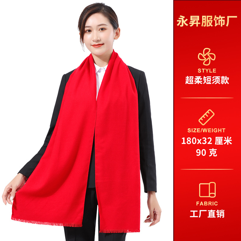 工厂批发围巾中国红年会红色logo刺绣长款开业庆典大红定制红围巾