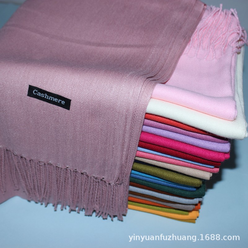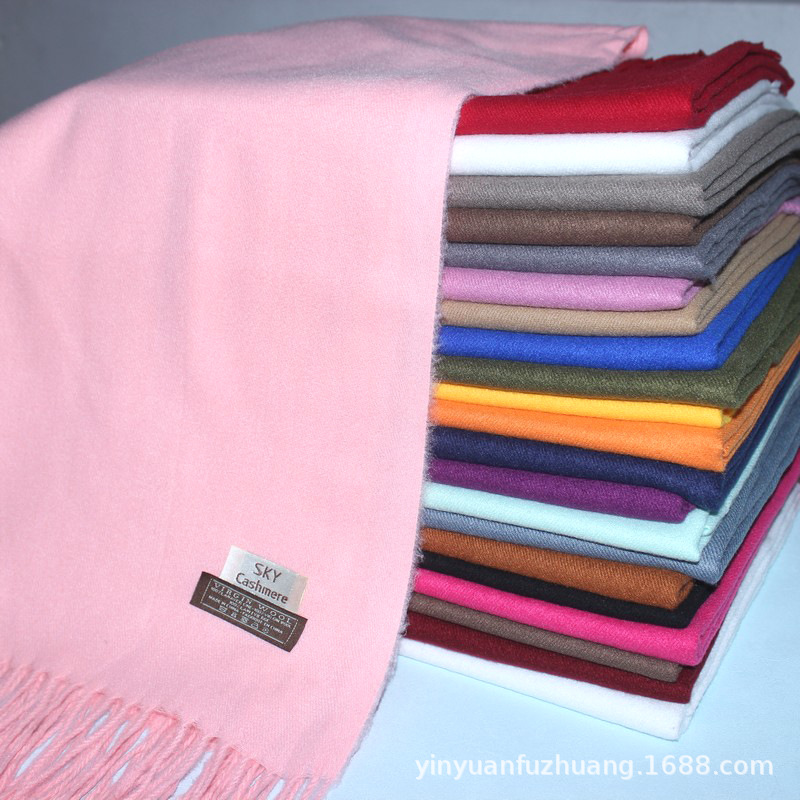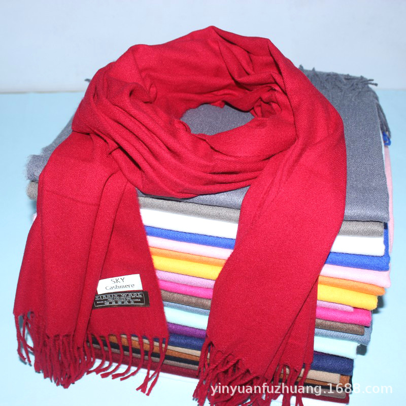 仿羊绒围巾女中国红企业年会logo印字刺绣冬季百搭羊绒纯色披肩