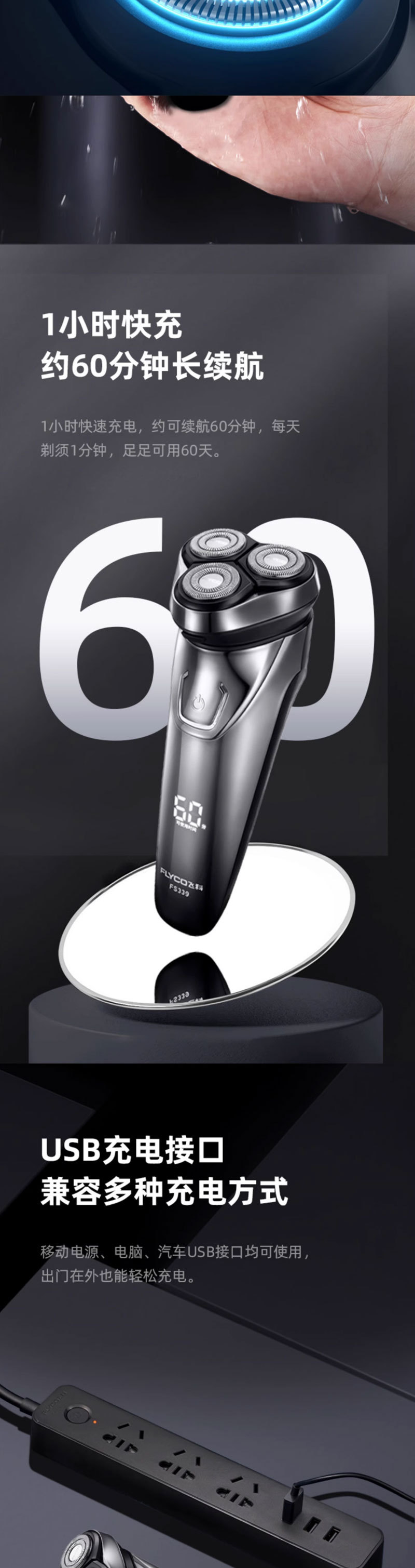 剃须刀旗舰店刮胡刀男士男电动先科2023新款全身水洗宸桥