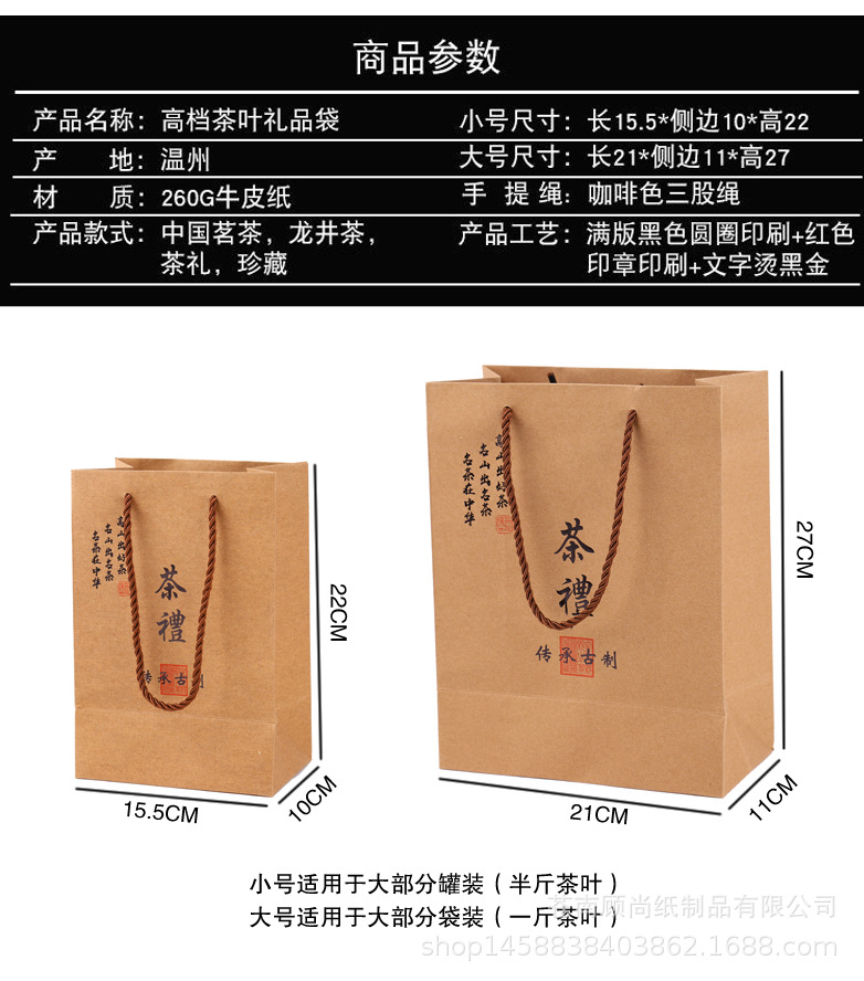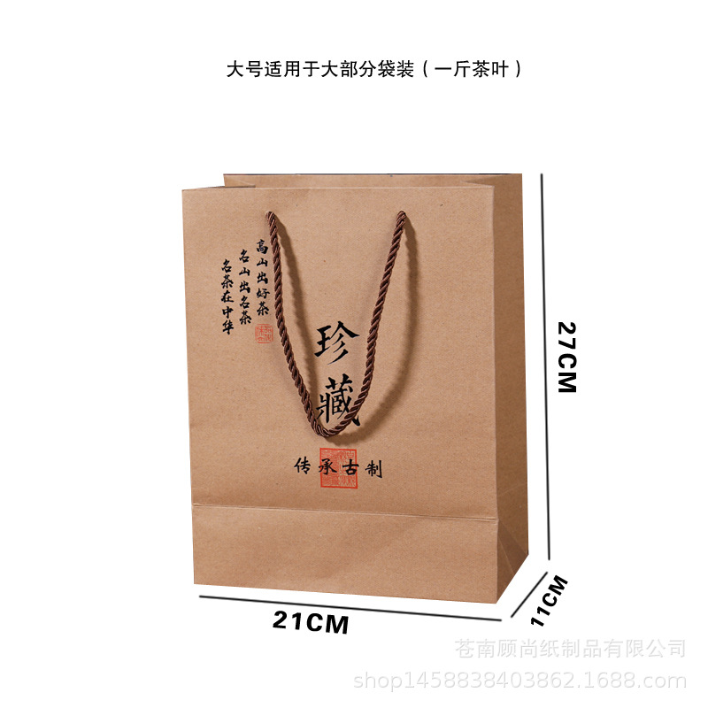 高档茶叶手提袋通用龙井茶礼品袋茗茶包装纸袋加厚牛皮纸袋印Logo