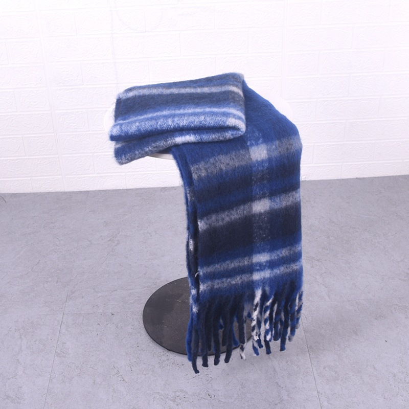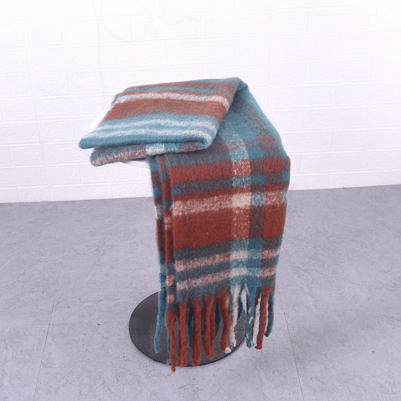 韩版秋冬季彩虹巴巴格子围巾女学生仿羊绒粗须马海毛保暖围脖披肩