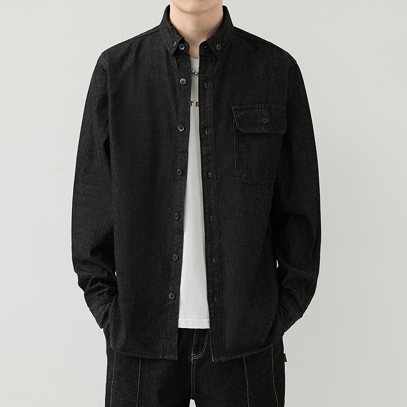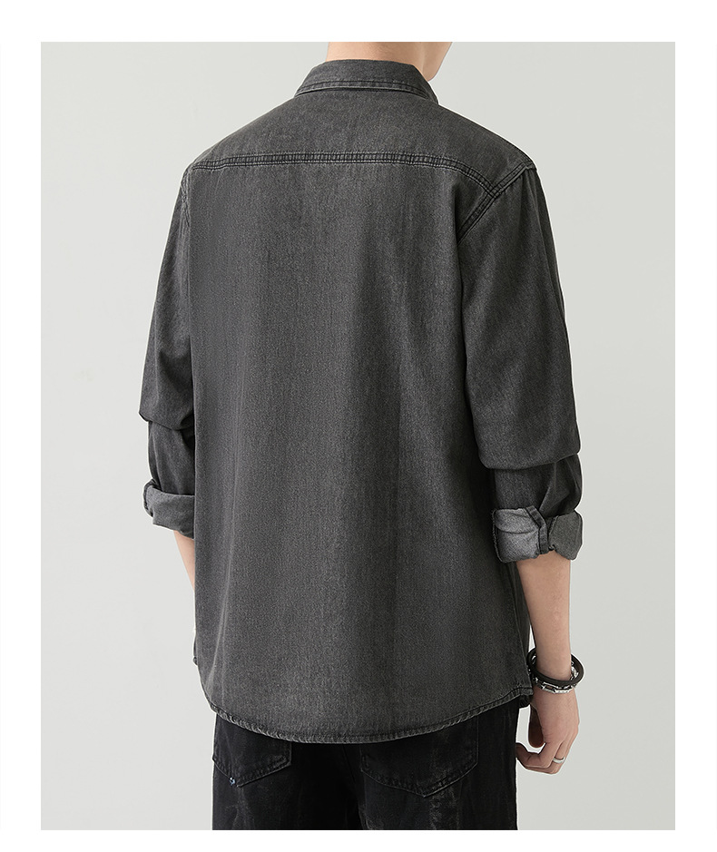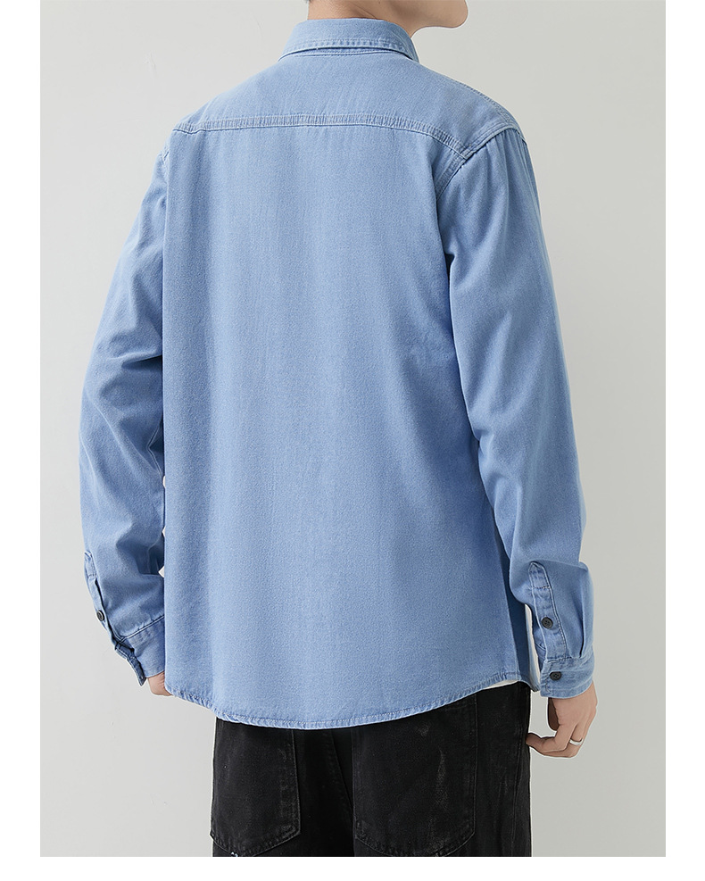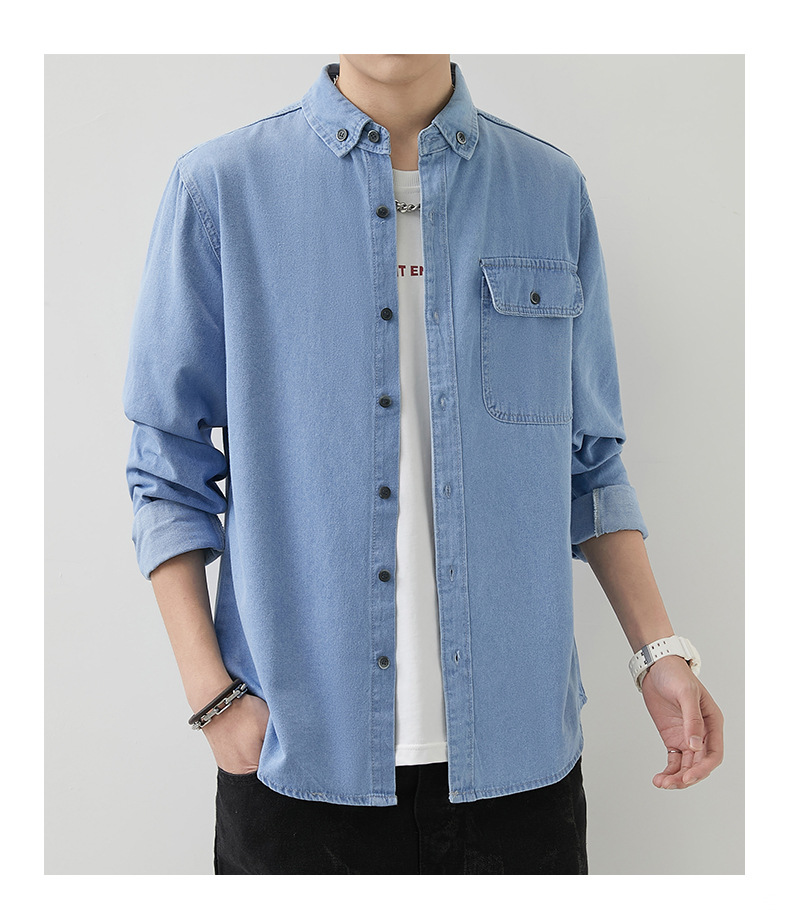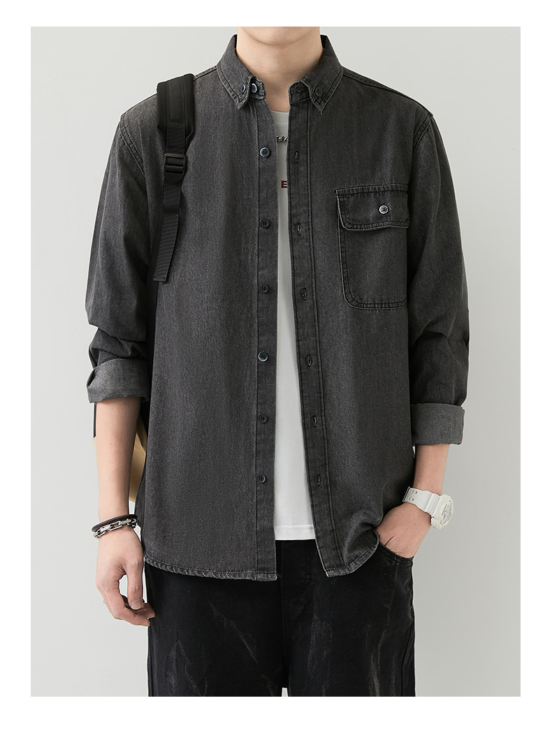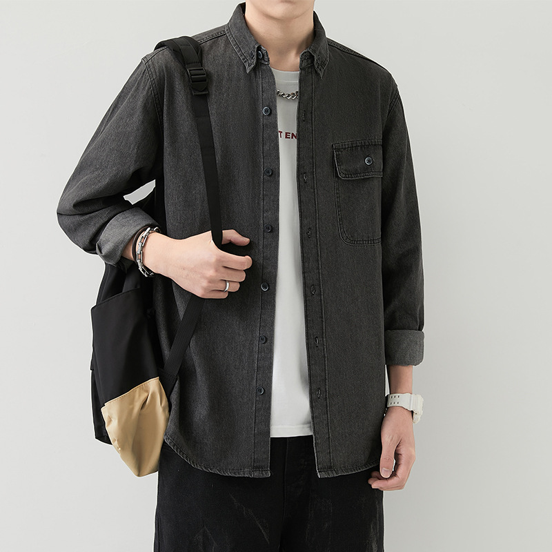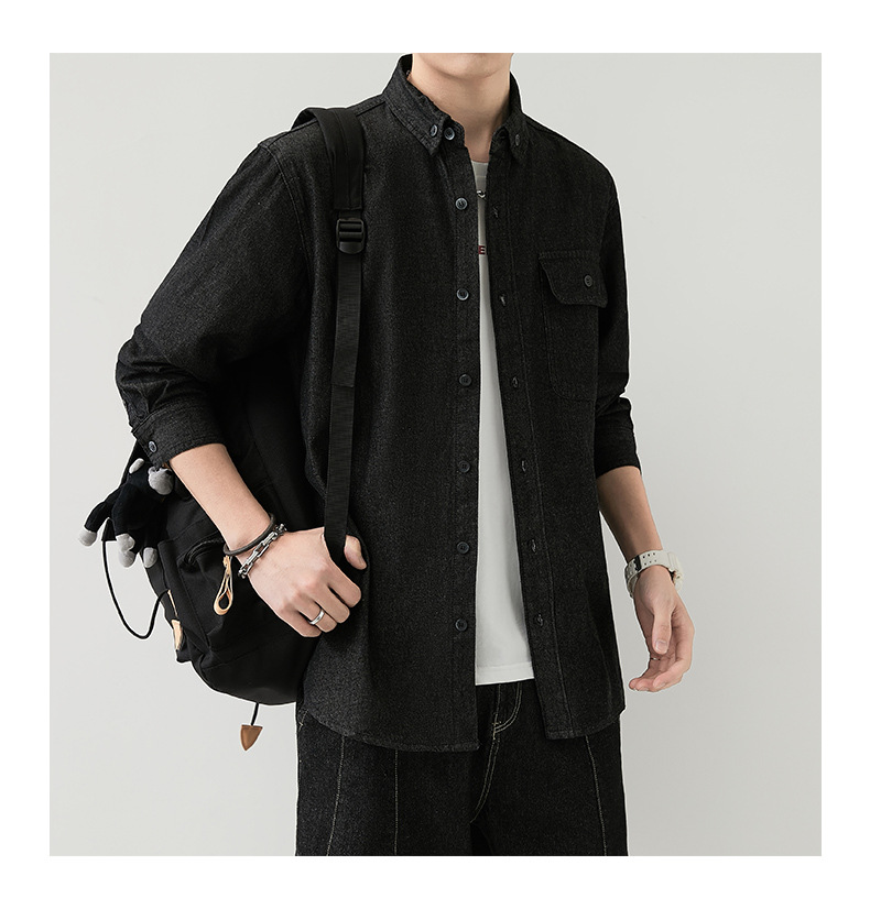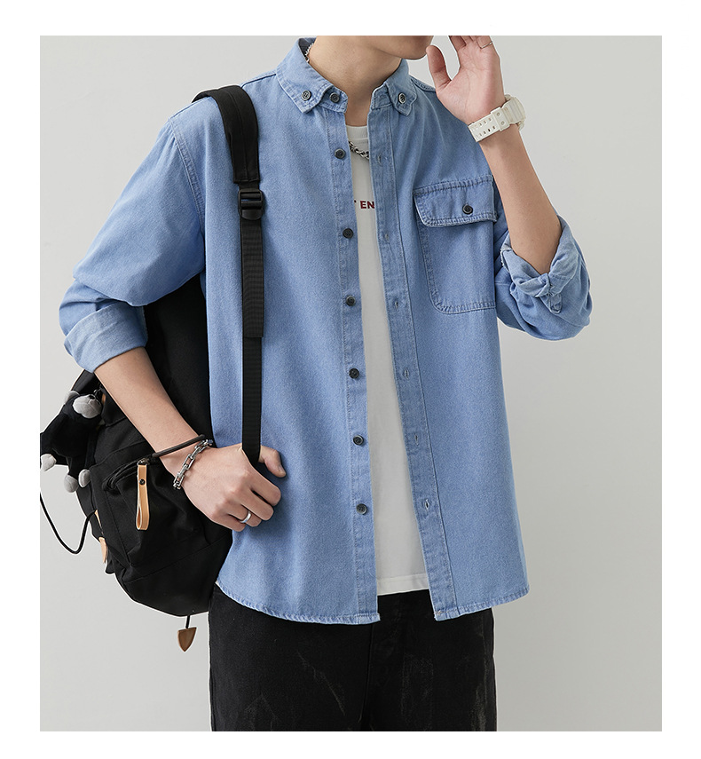 男装薄款牛仔长袖衬衫男2023春秋韩版潮流休闲纯色工装衬衣外套男