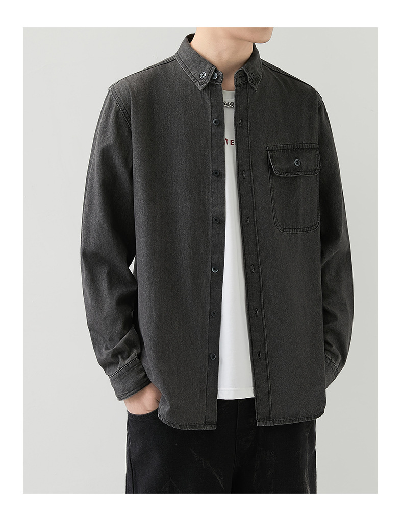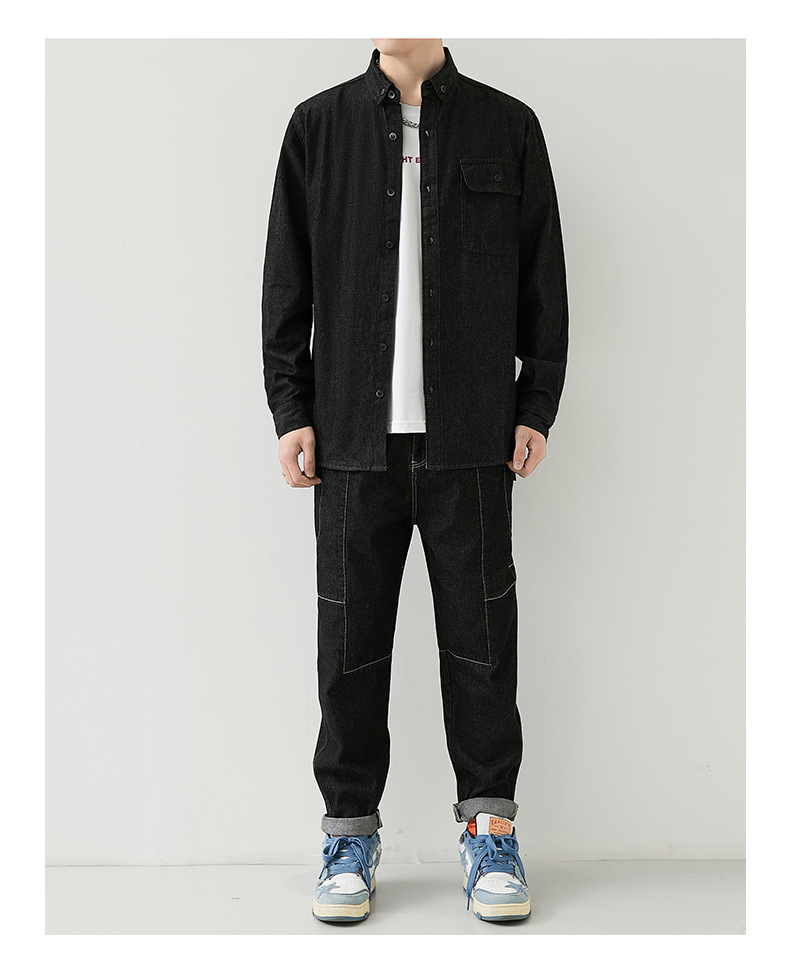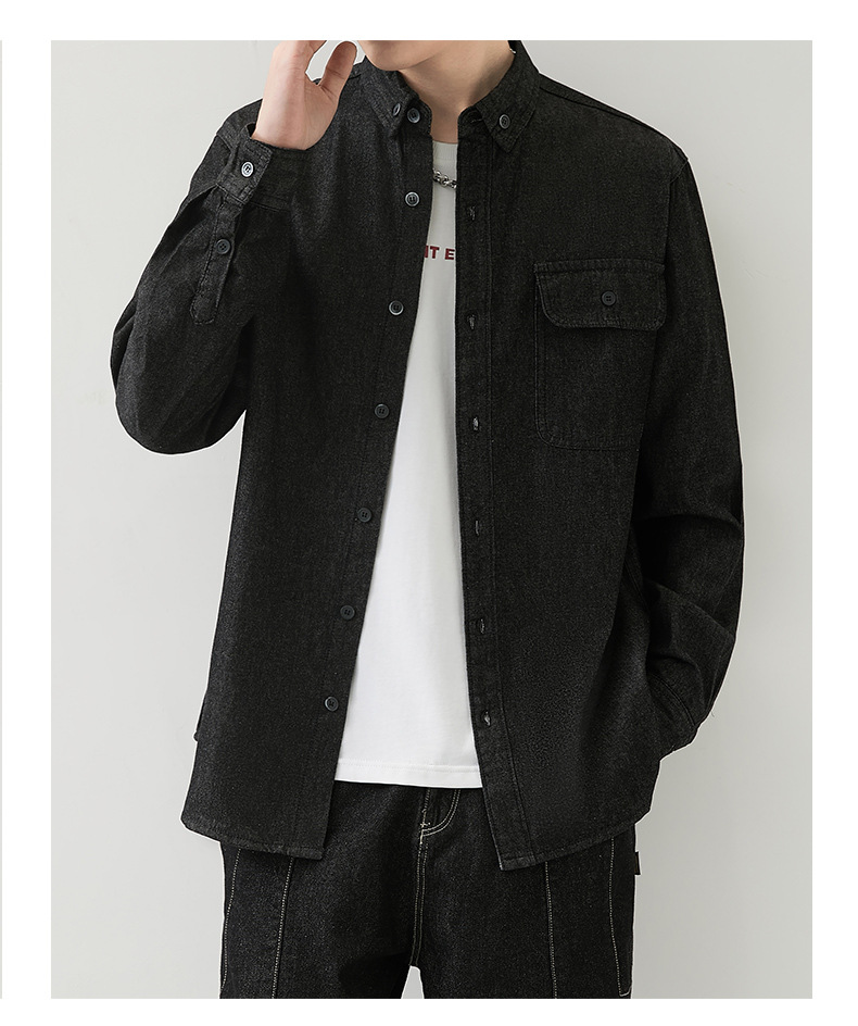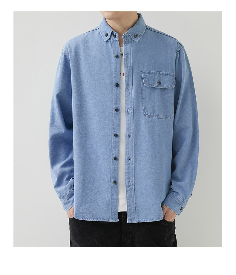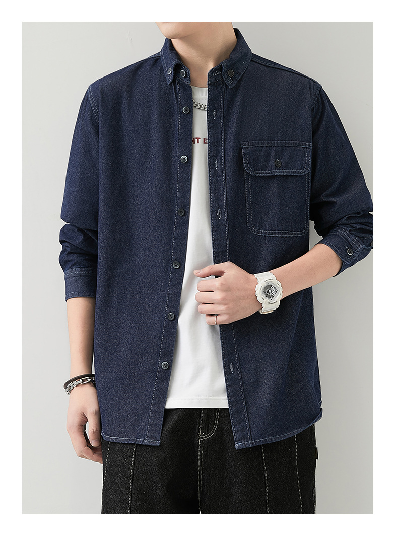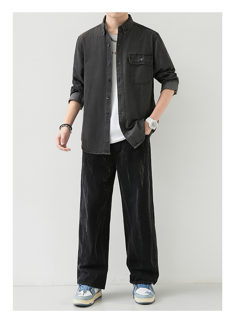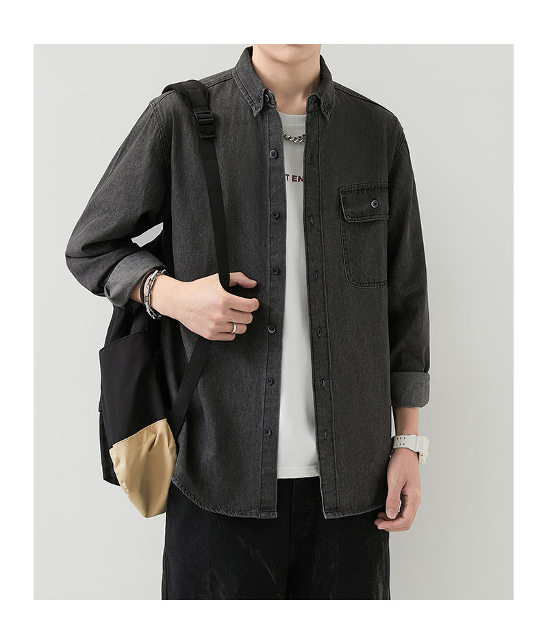 男装薄款牛仔长袖衬衫男2023春秋韩版潮流休闲纯色工装衬衣外套男
