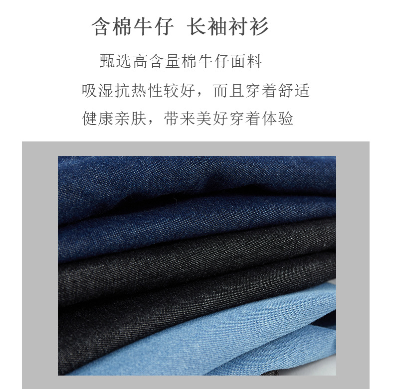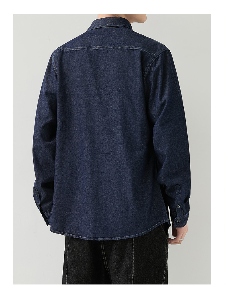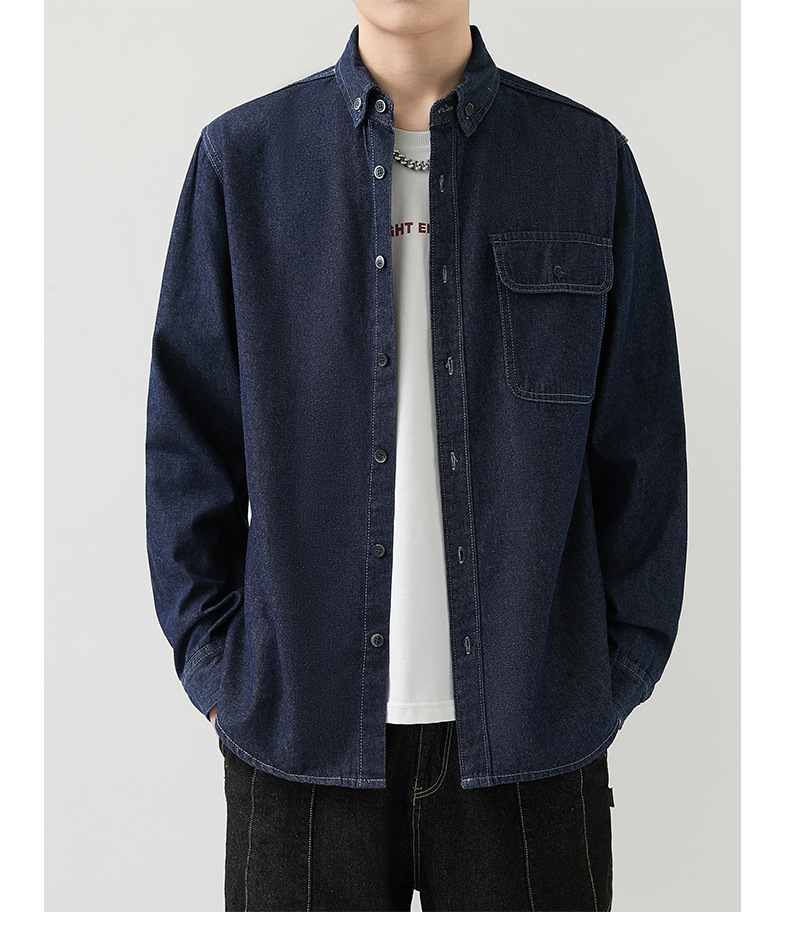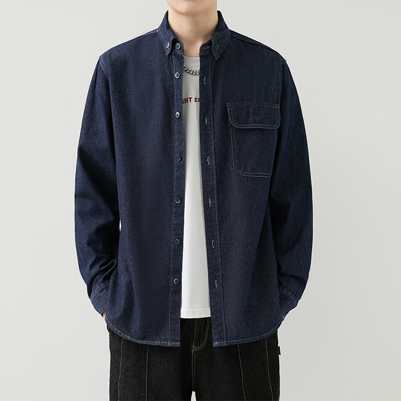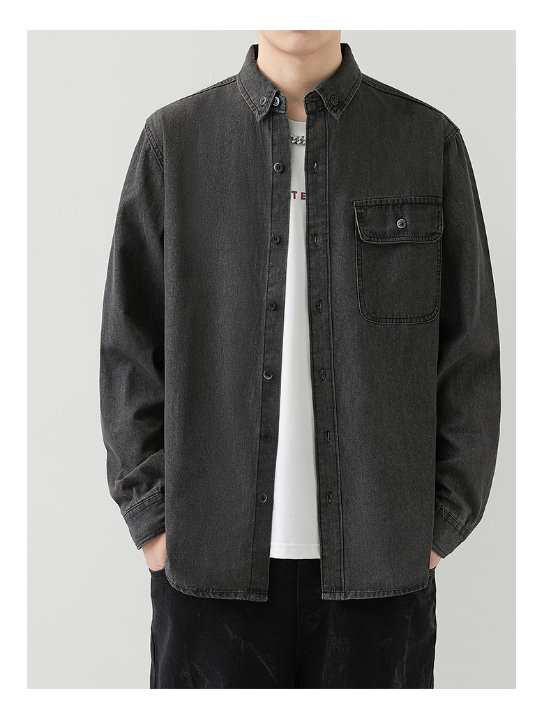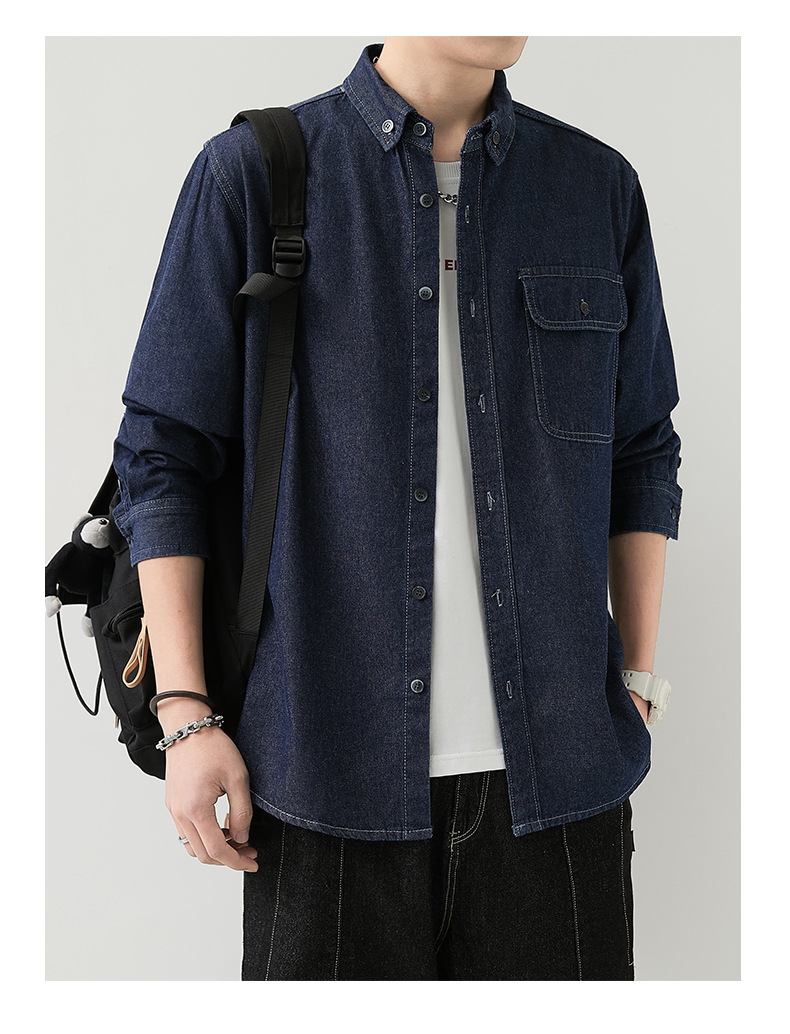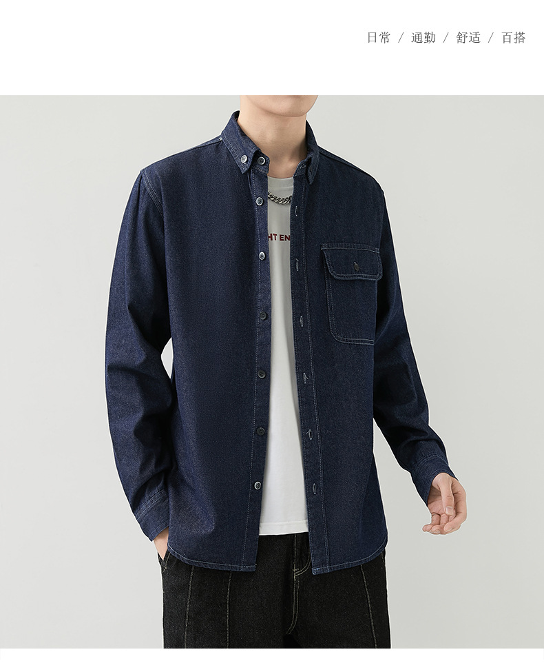男装薄款牛仔长袖衬衫男2023春秋韩版潮流休闲纯色工装衬衣外套男