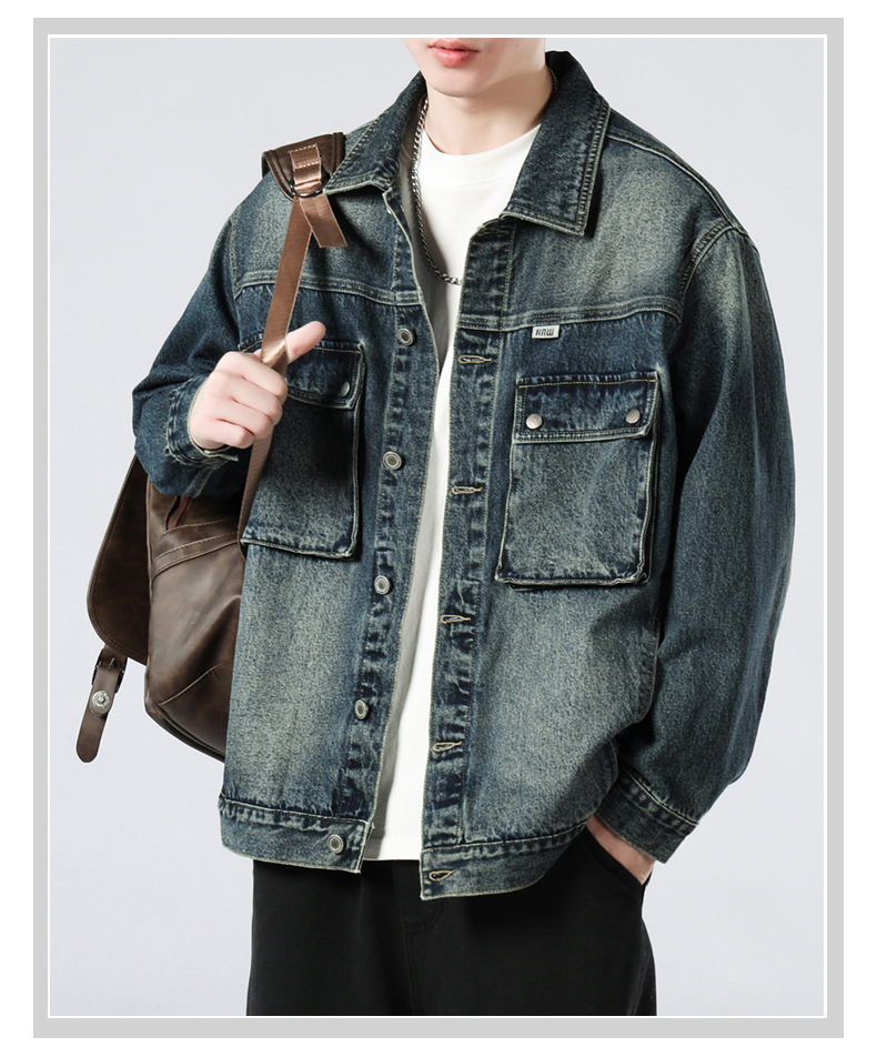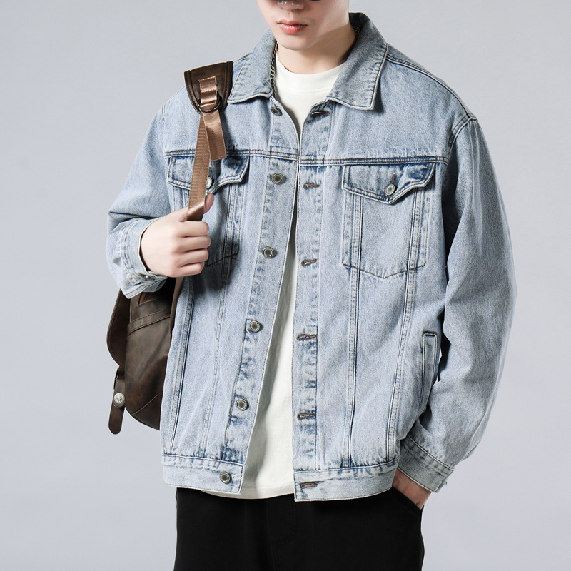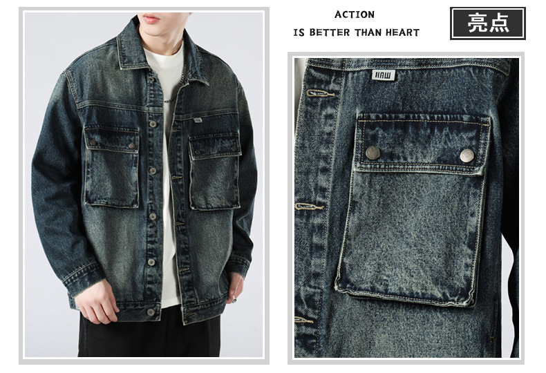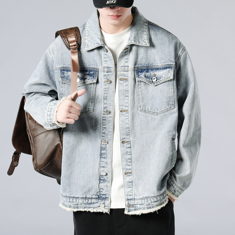 2023年春季新款牛仔外套男士宽松潮牌帅气牛仔衣春秋男工装夹克潮