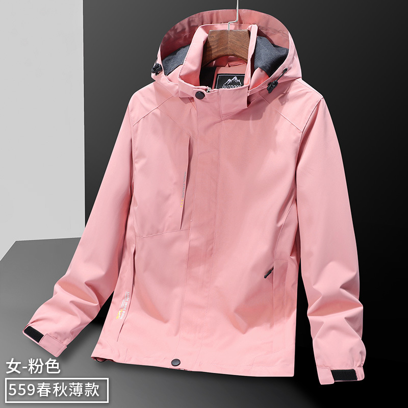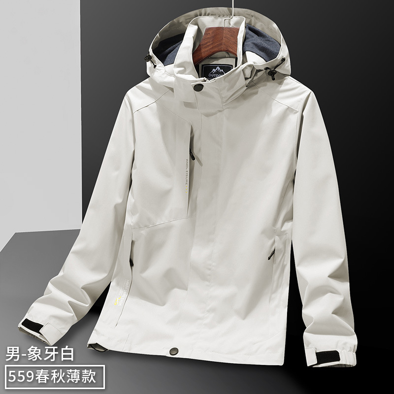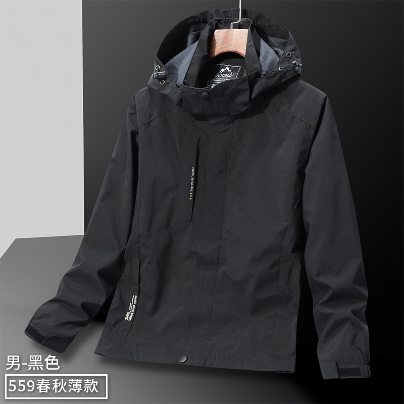 情侣户外冲锋衣男士连帽夹克春秋季2023新款防风休闲大码宽松外套