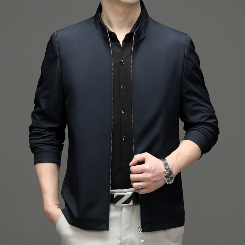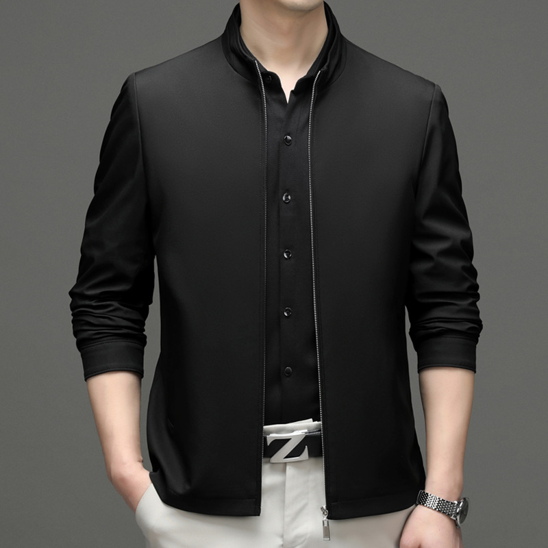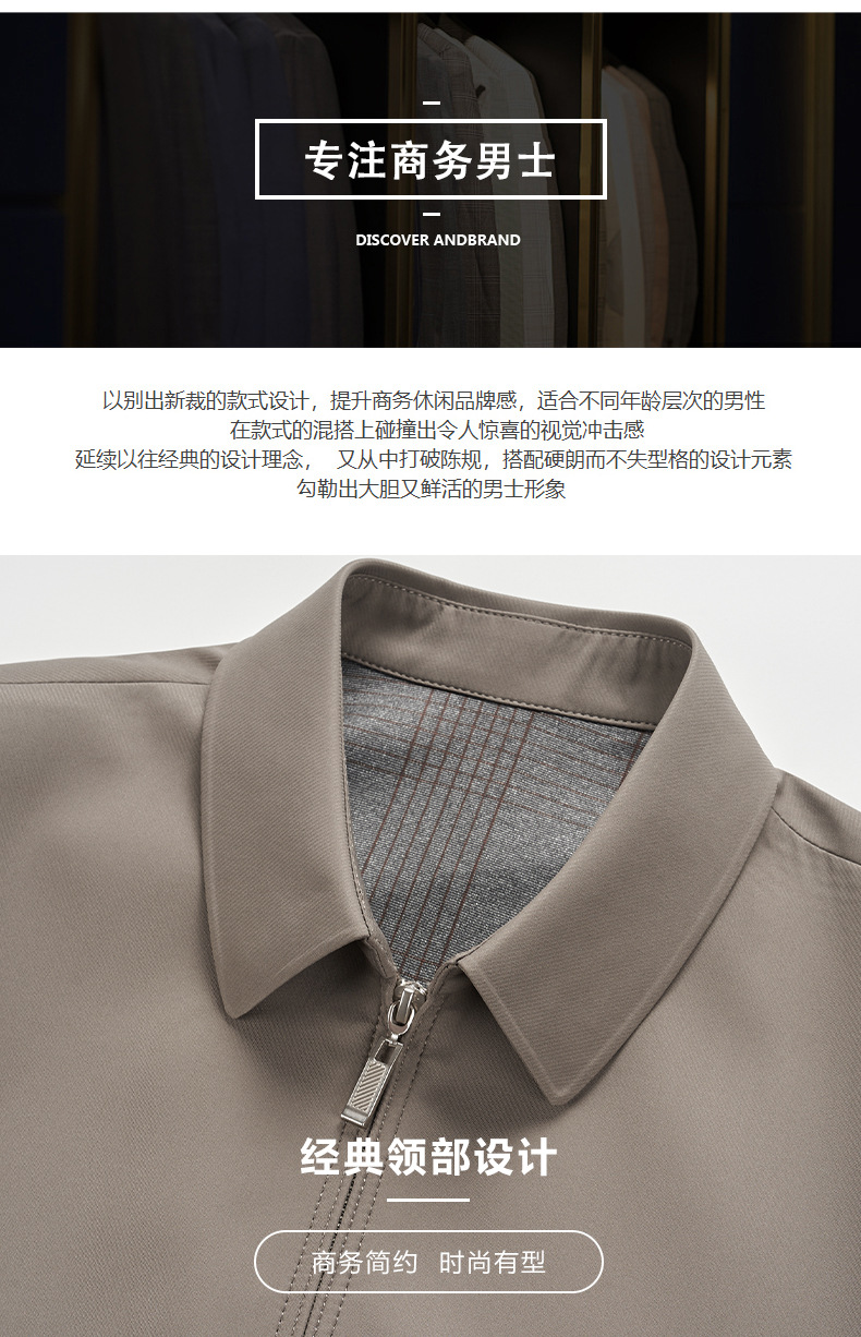 2023新款男士行政夹克男款春秋大码纯色商务高端翻领外套男装批发