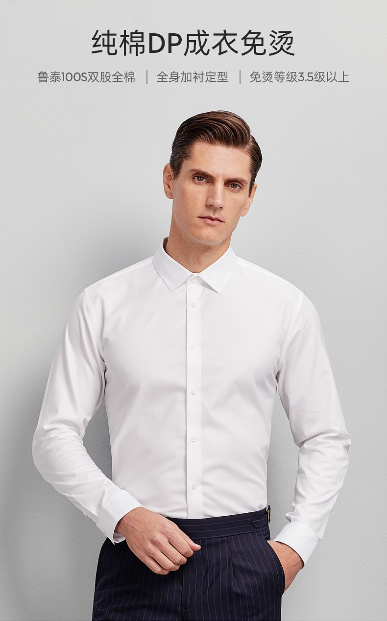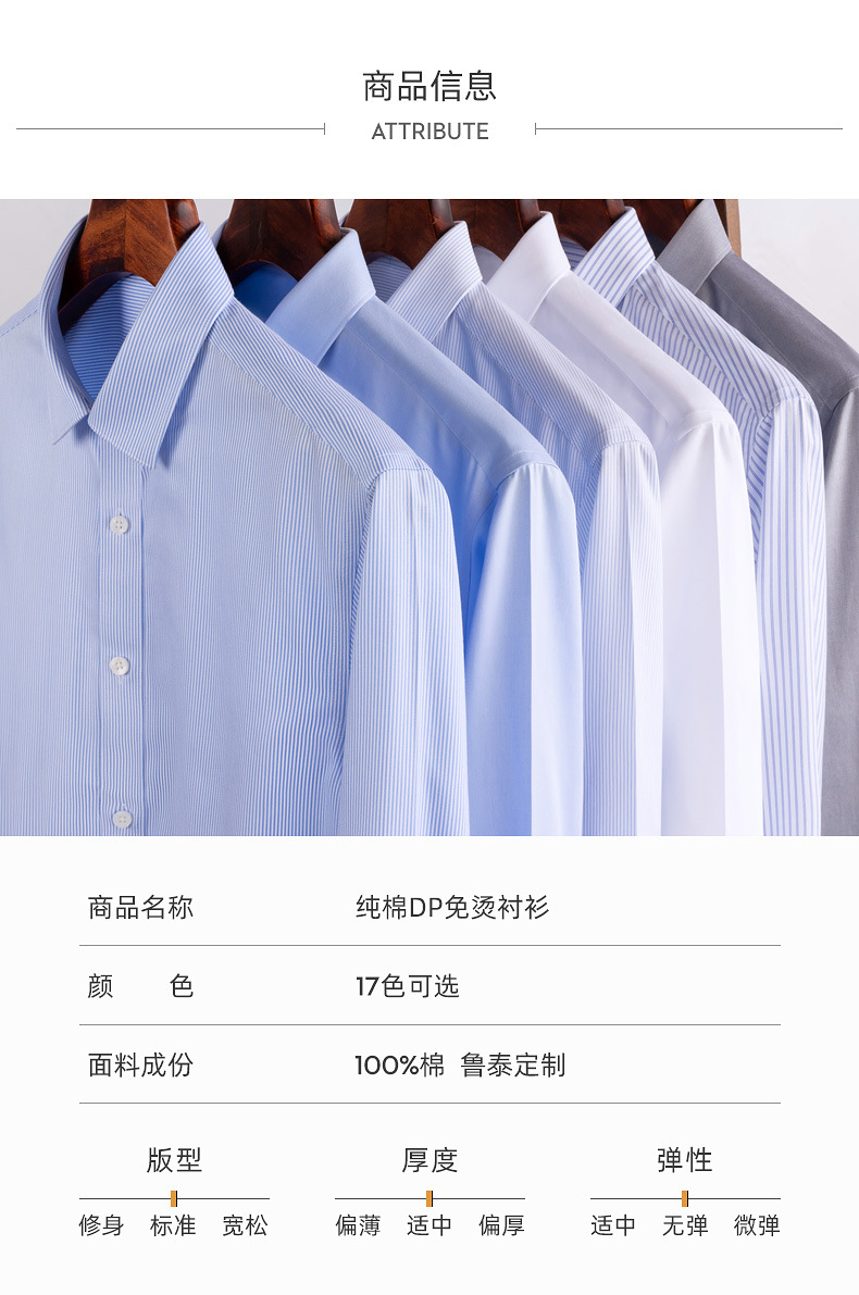 DP成衣免烫男士长袖衬衫商务男装100S/2纯棉白色衬衣现货团购LOGO
