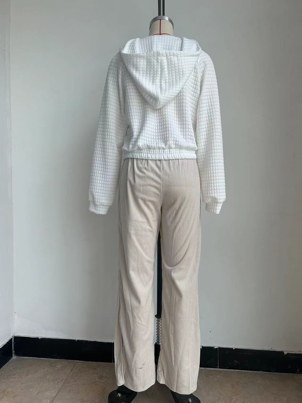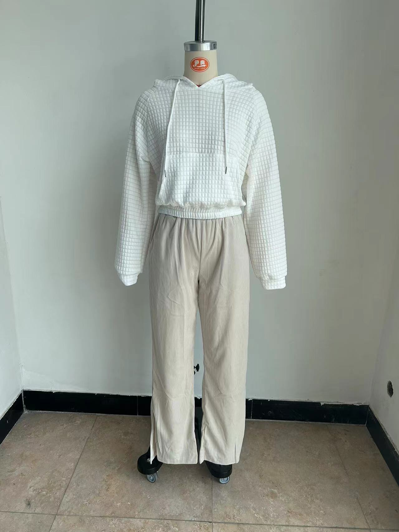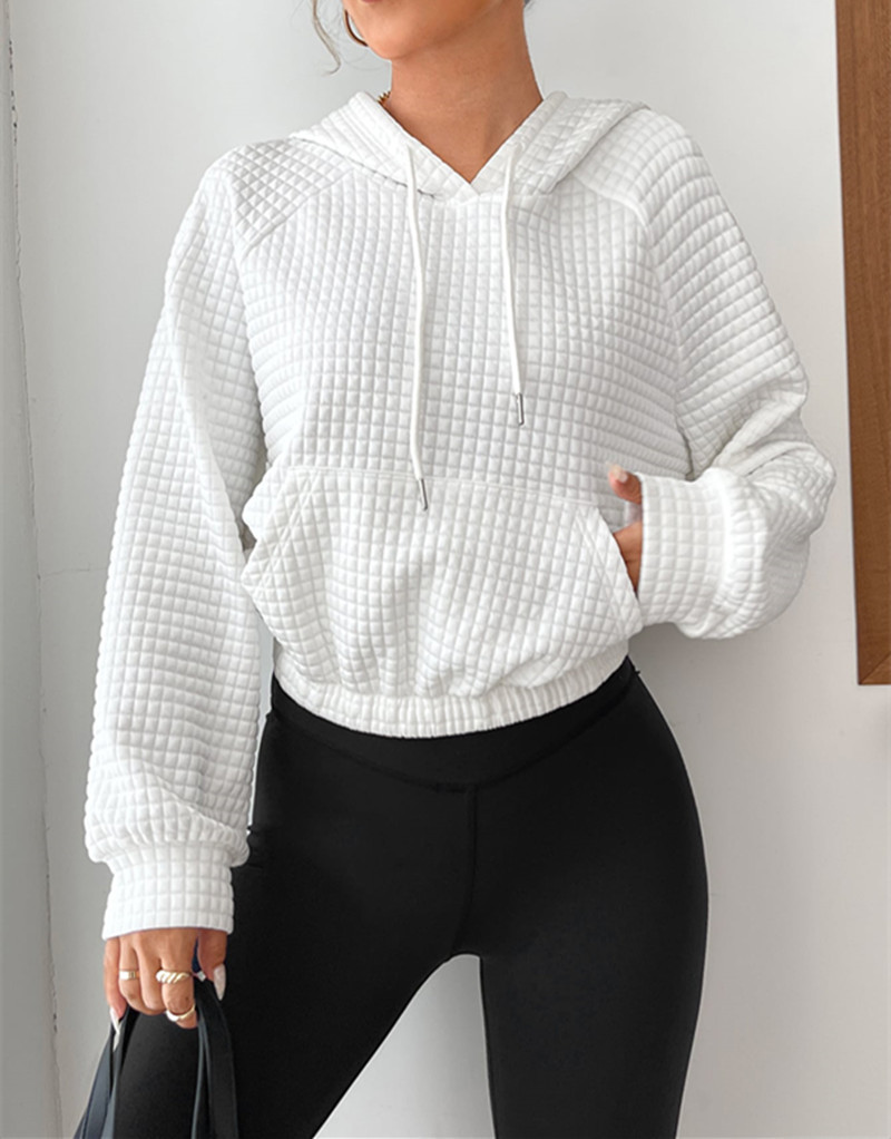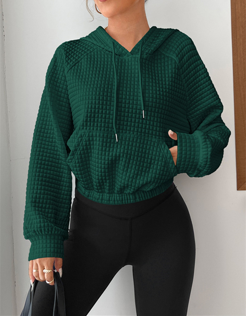 跨境2023亚马逊欧美风通勤春季宽松套头连帽长袖拼接华夫格卫衣女