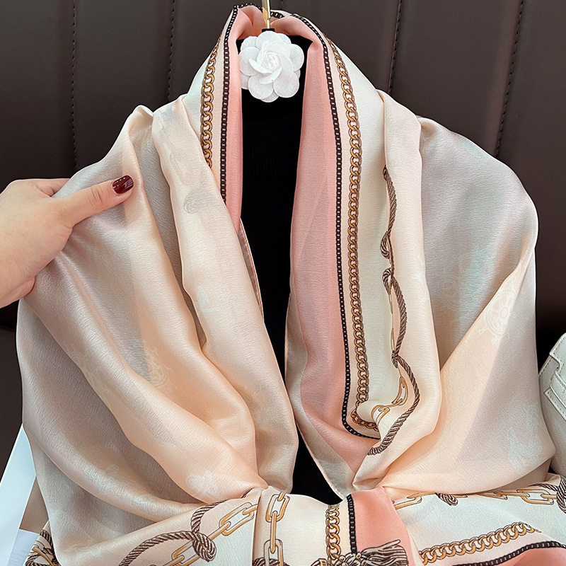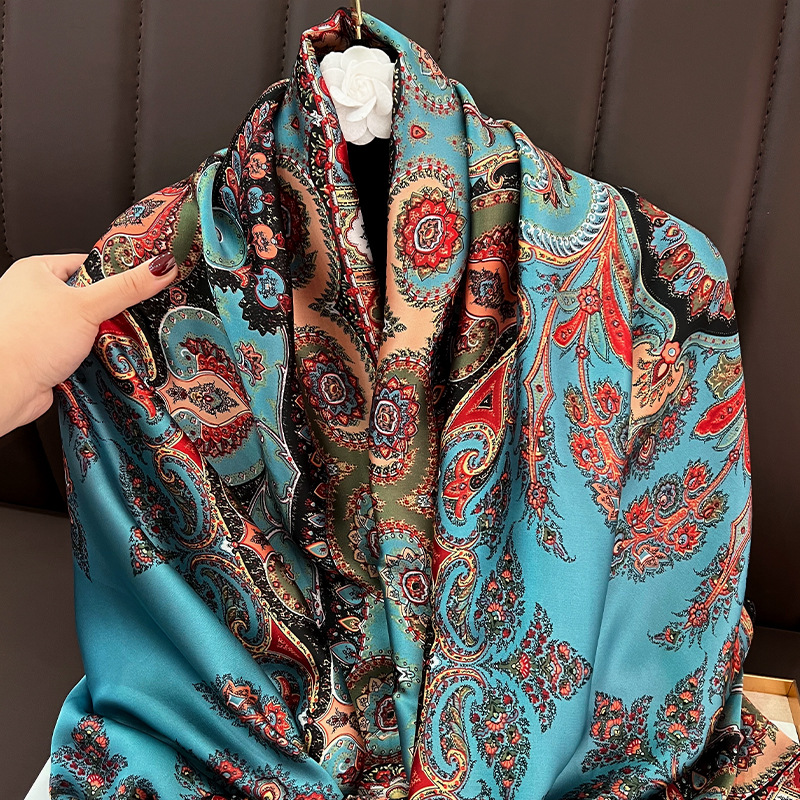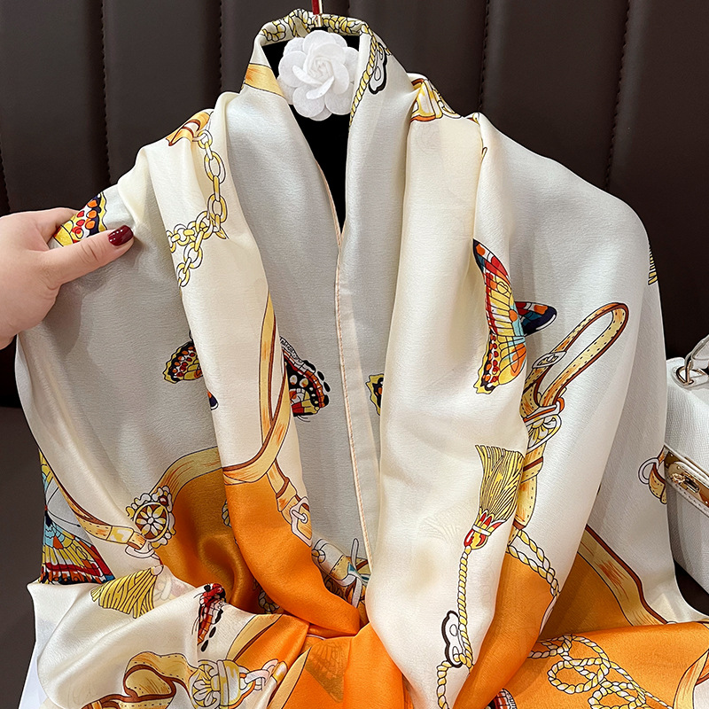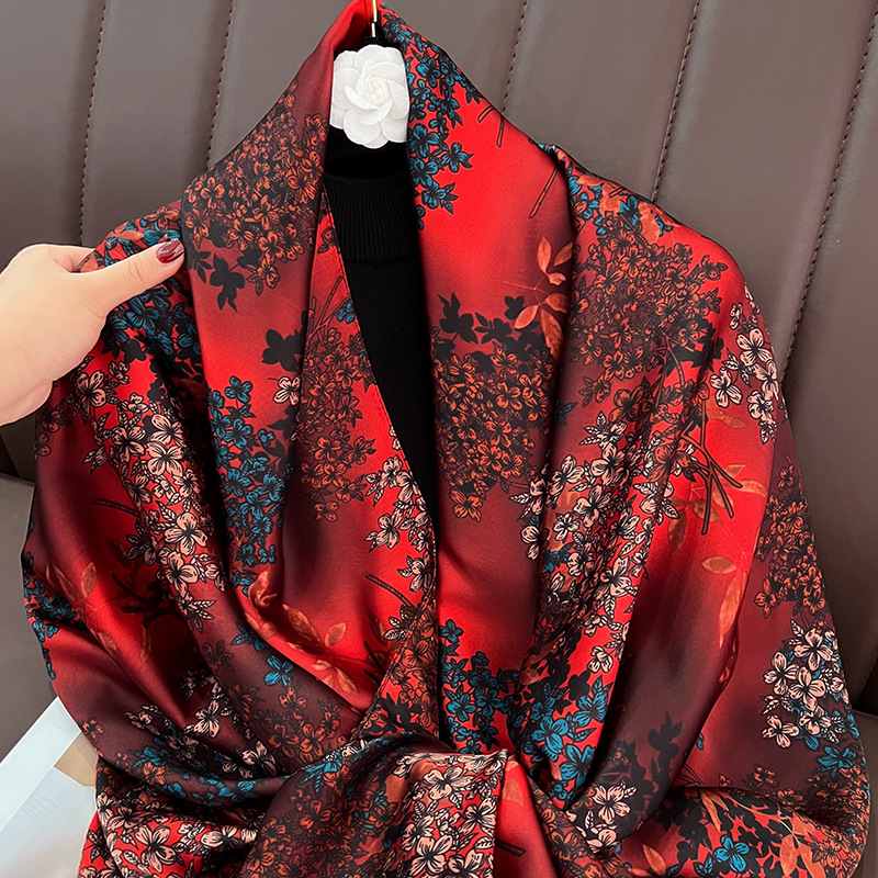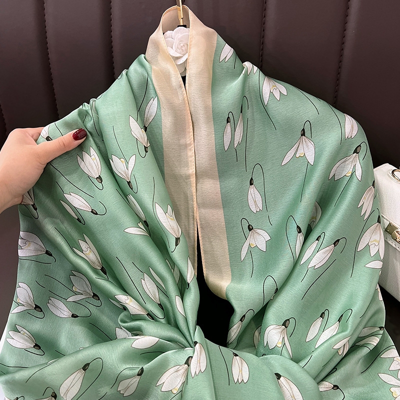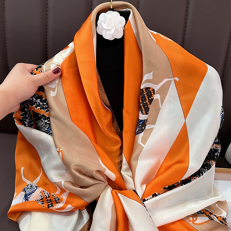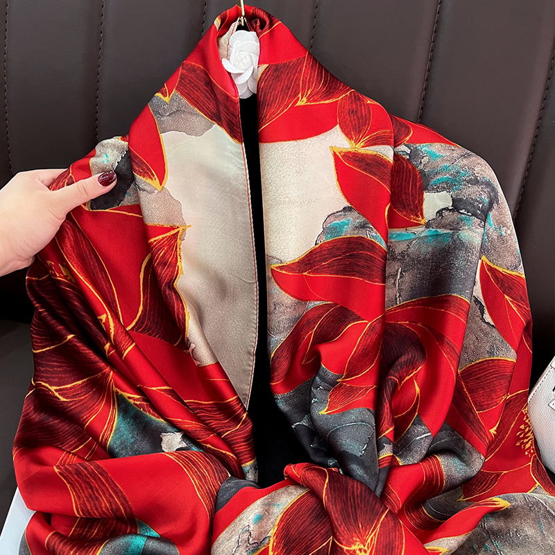 丝巾女春秋新款丽锦缎大长巾韩版时尚印花围巾空调披肩外搭沙滩巾