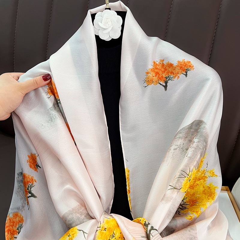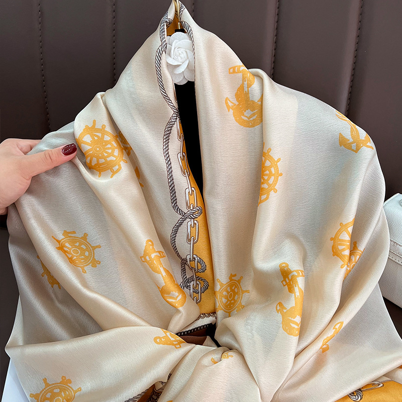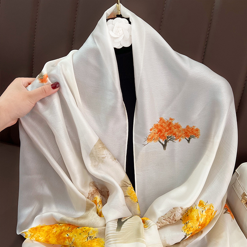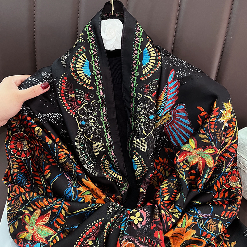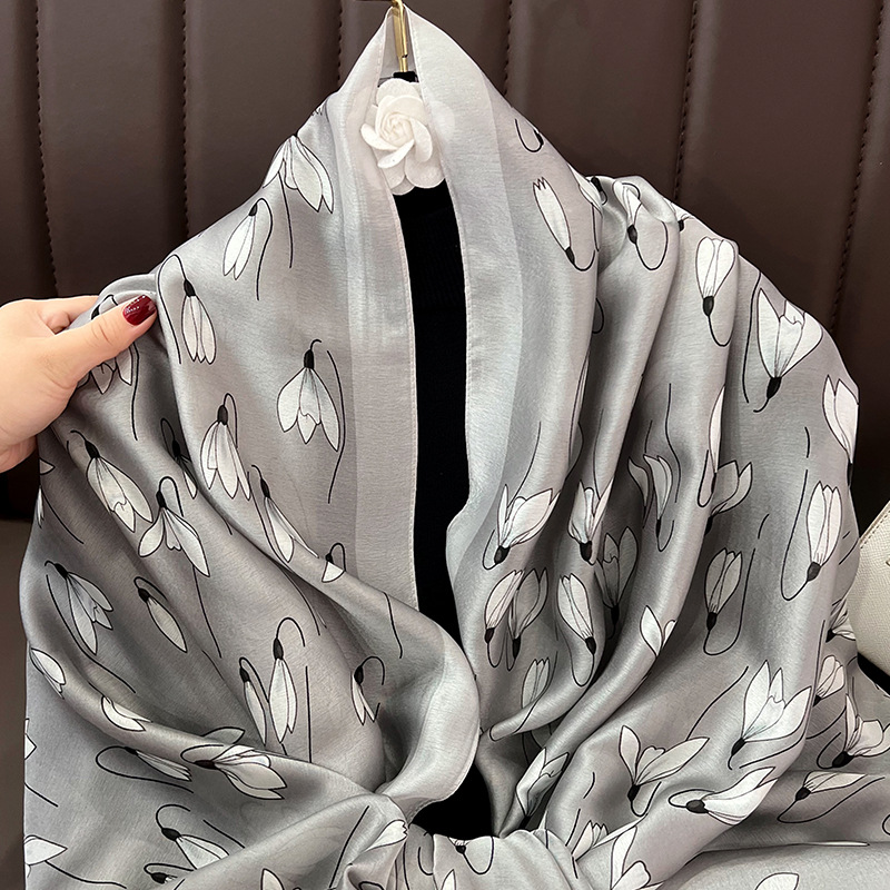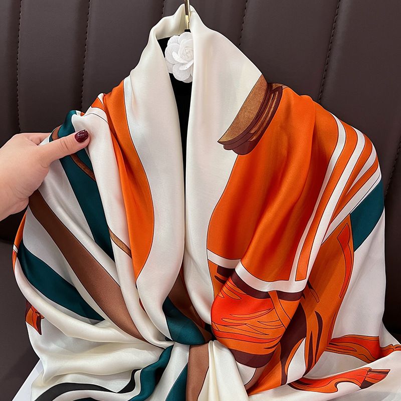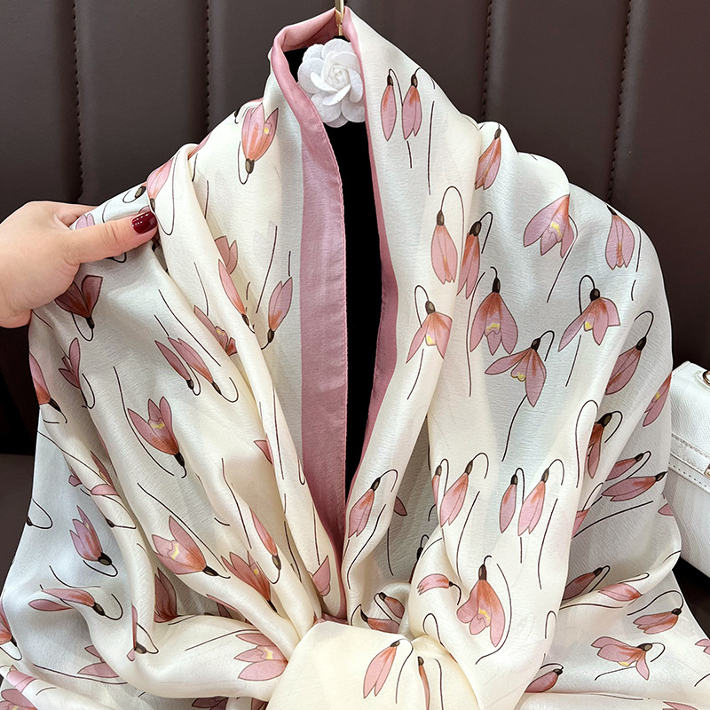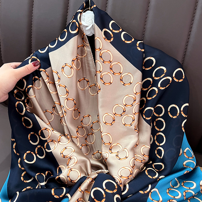 丝巾女春秋新款丽锦缎大长巾韩版时尚印花围巾空调披肩外搭沙滩巾