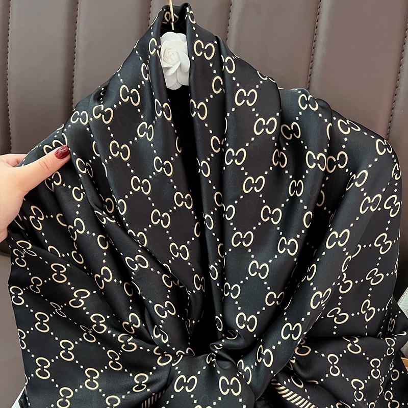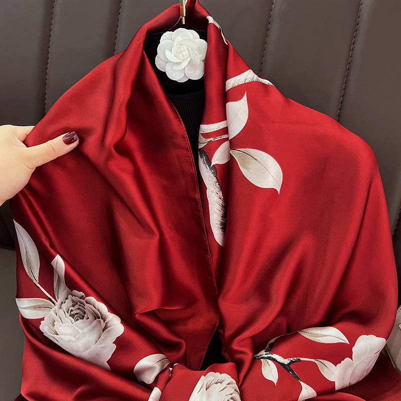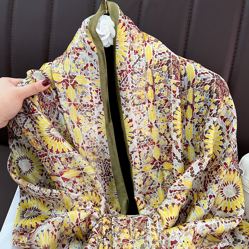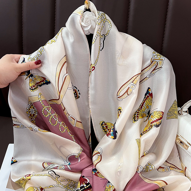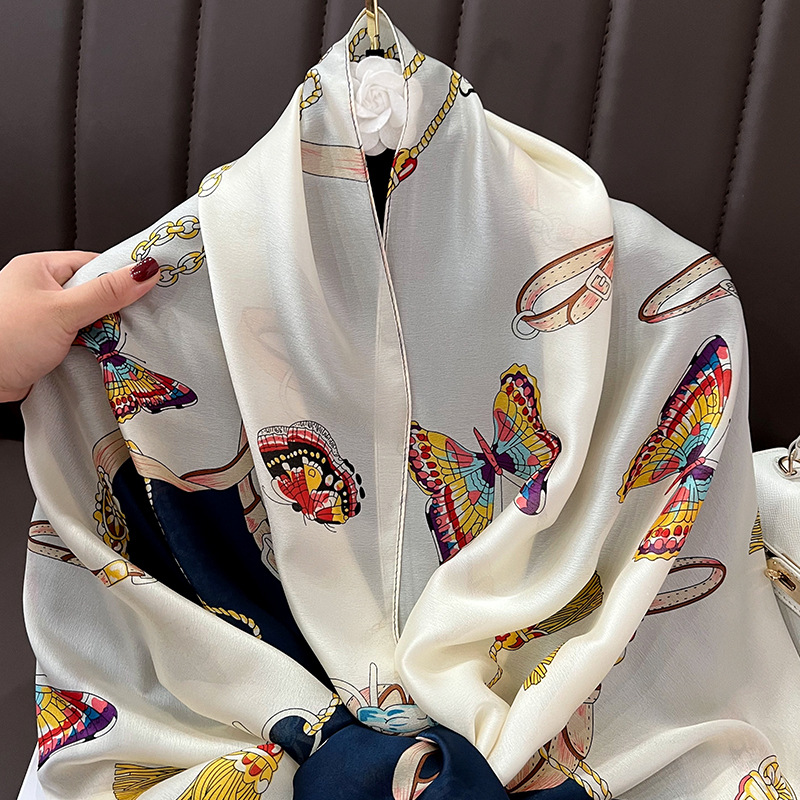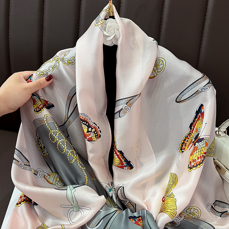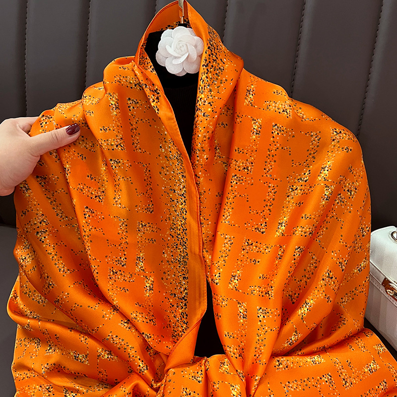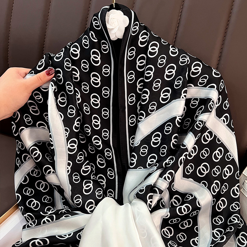 丝巾女春秋新款丽锦缎大长巾韩版时尚印花围巾空调披肩外搭沙滩巾