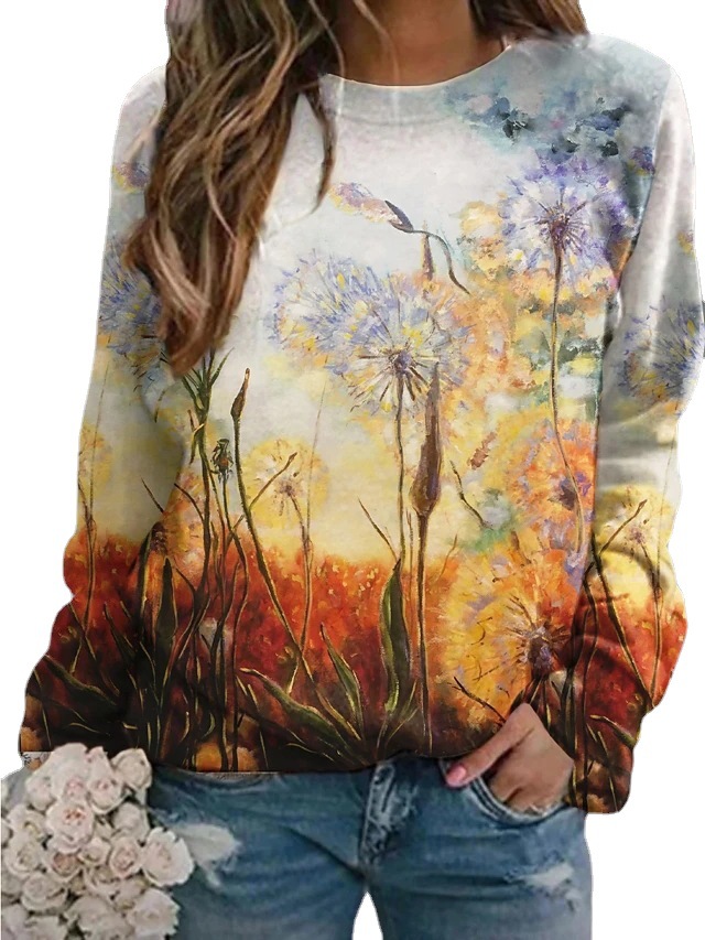 2023欧美速卖通wish亚马逊独立站女装新款3D风景花卉印花长袖卫衣