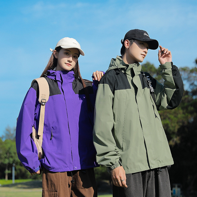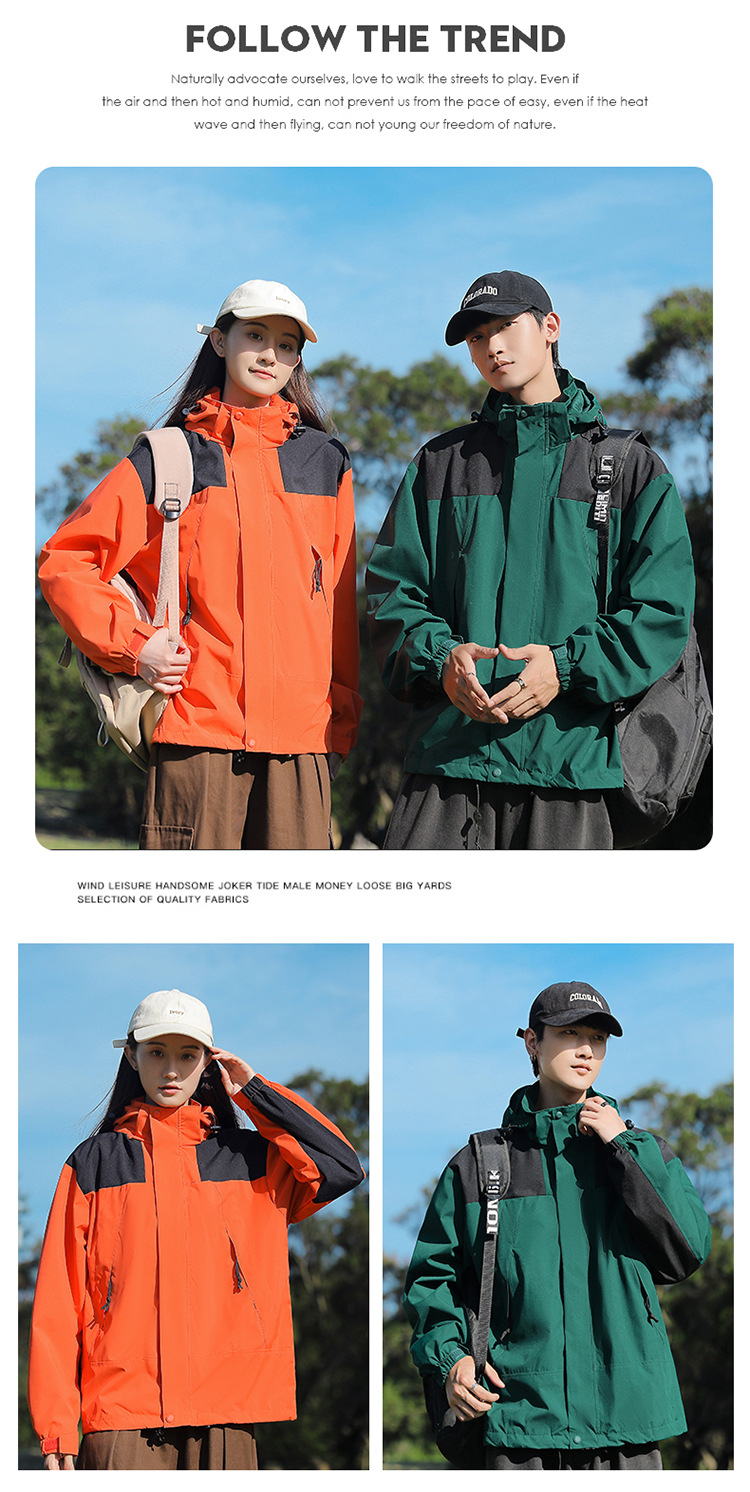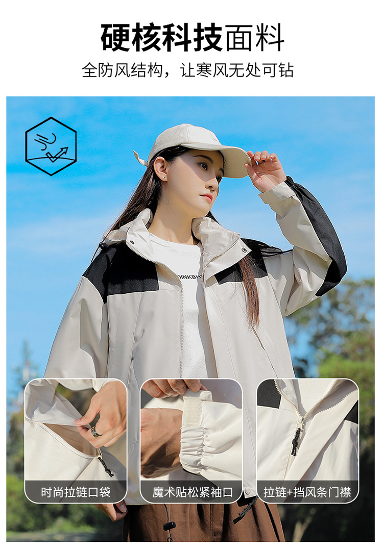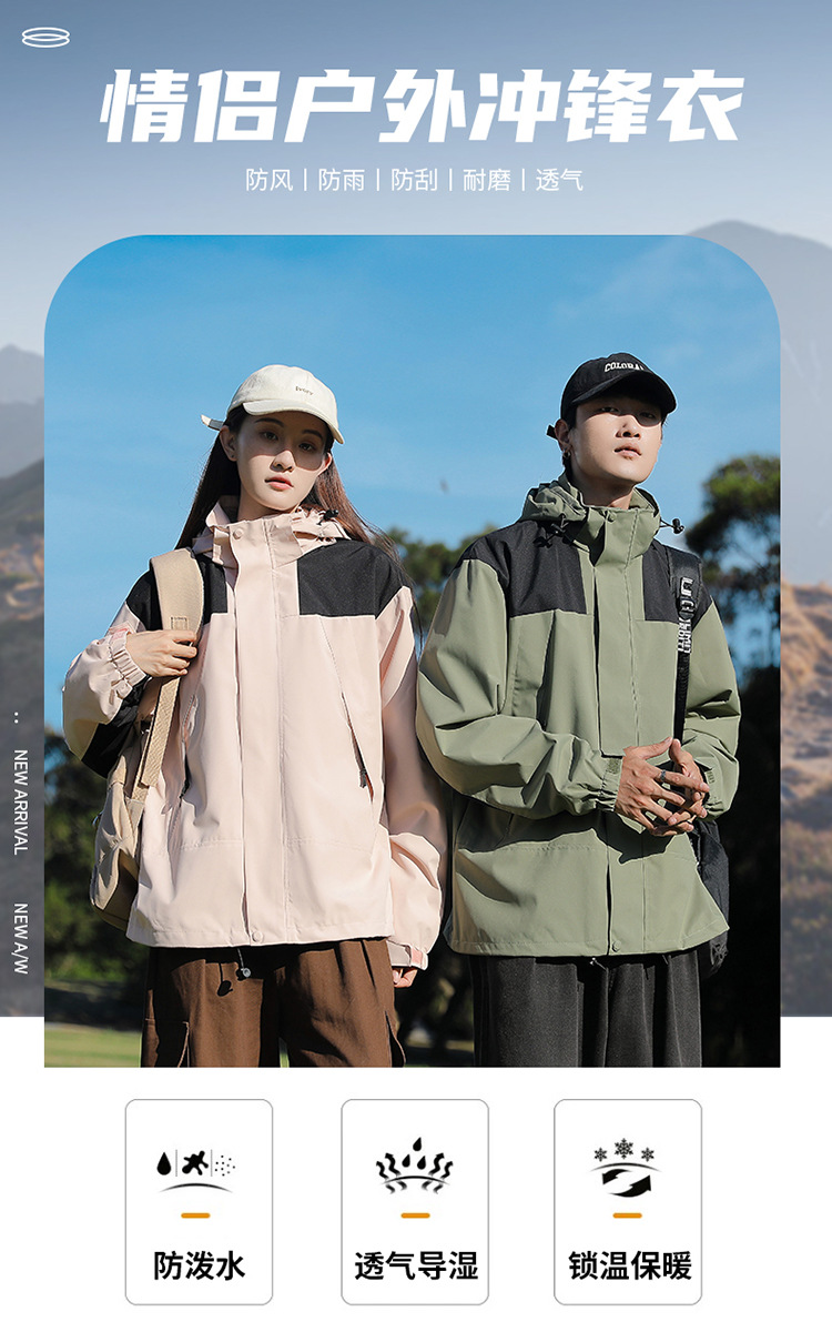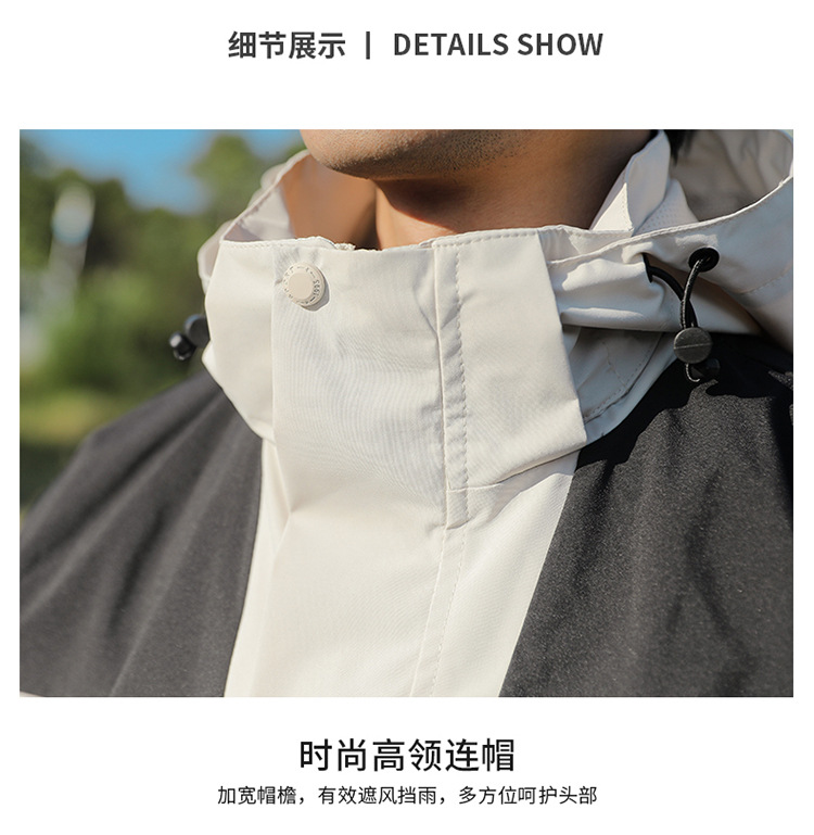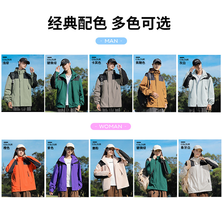 户外运动冲锋衣春秋男女同款开衫连帽上衣拼接情侣防风防水登山服