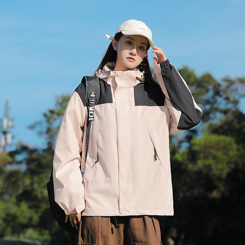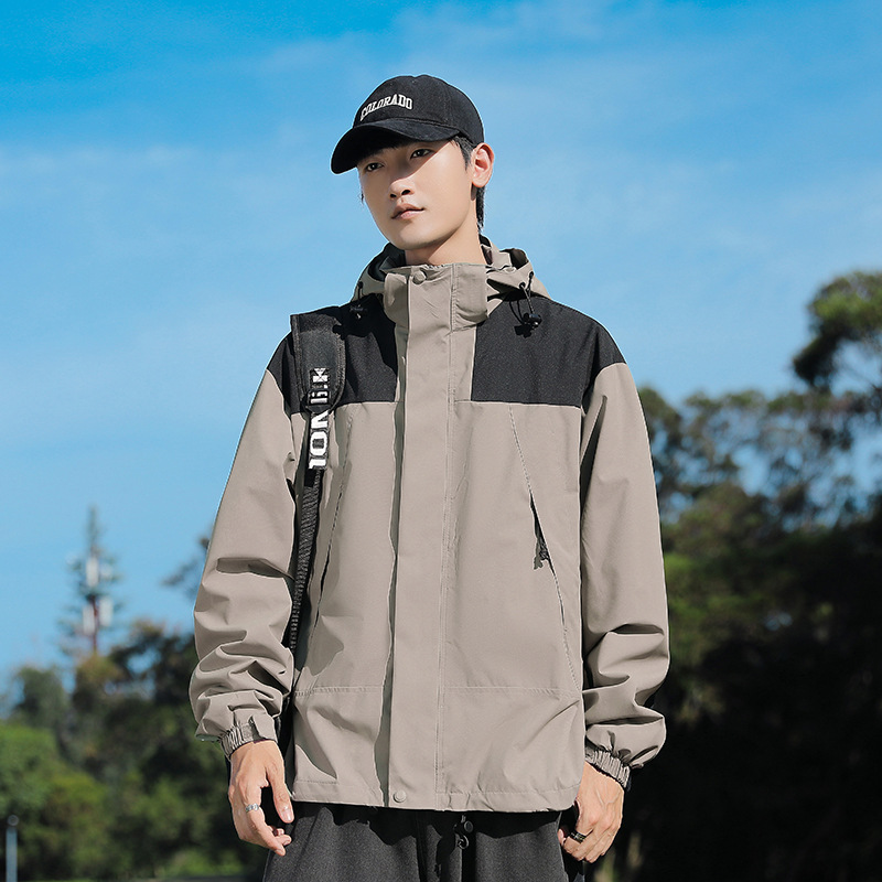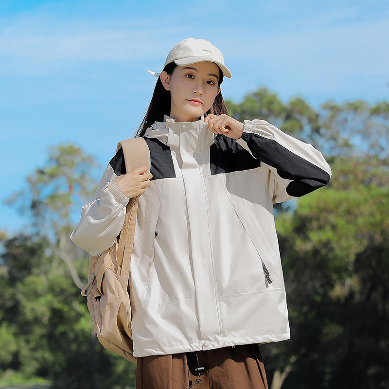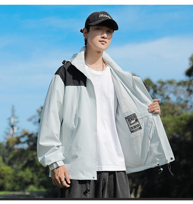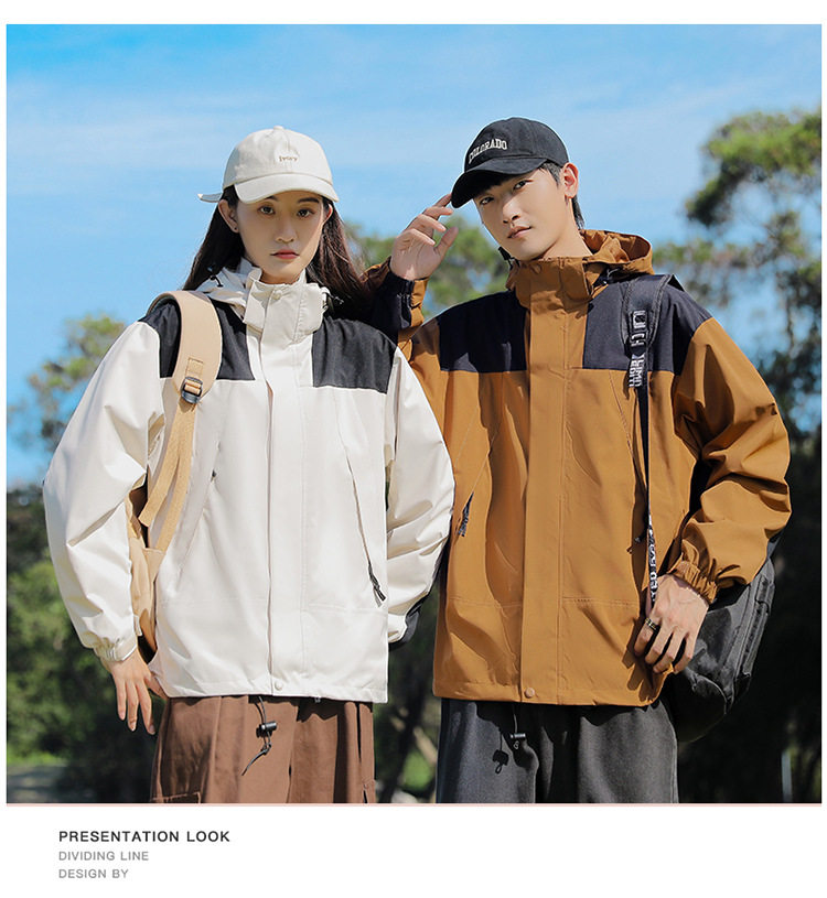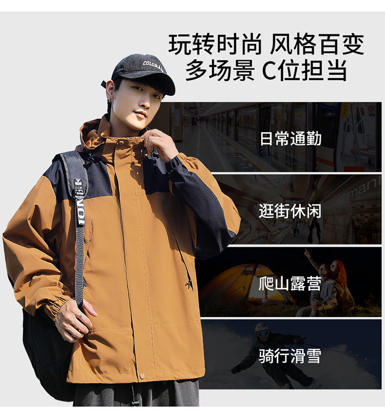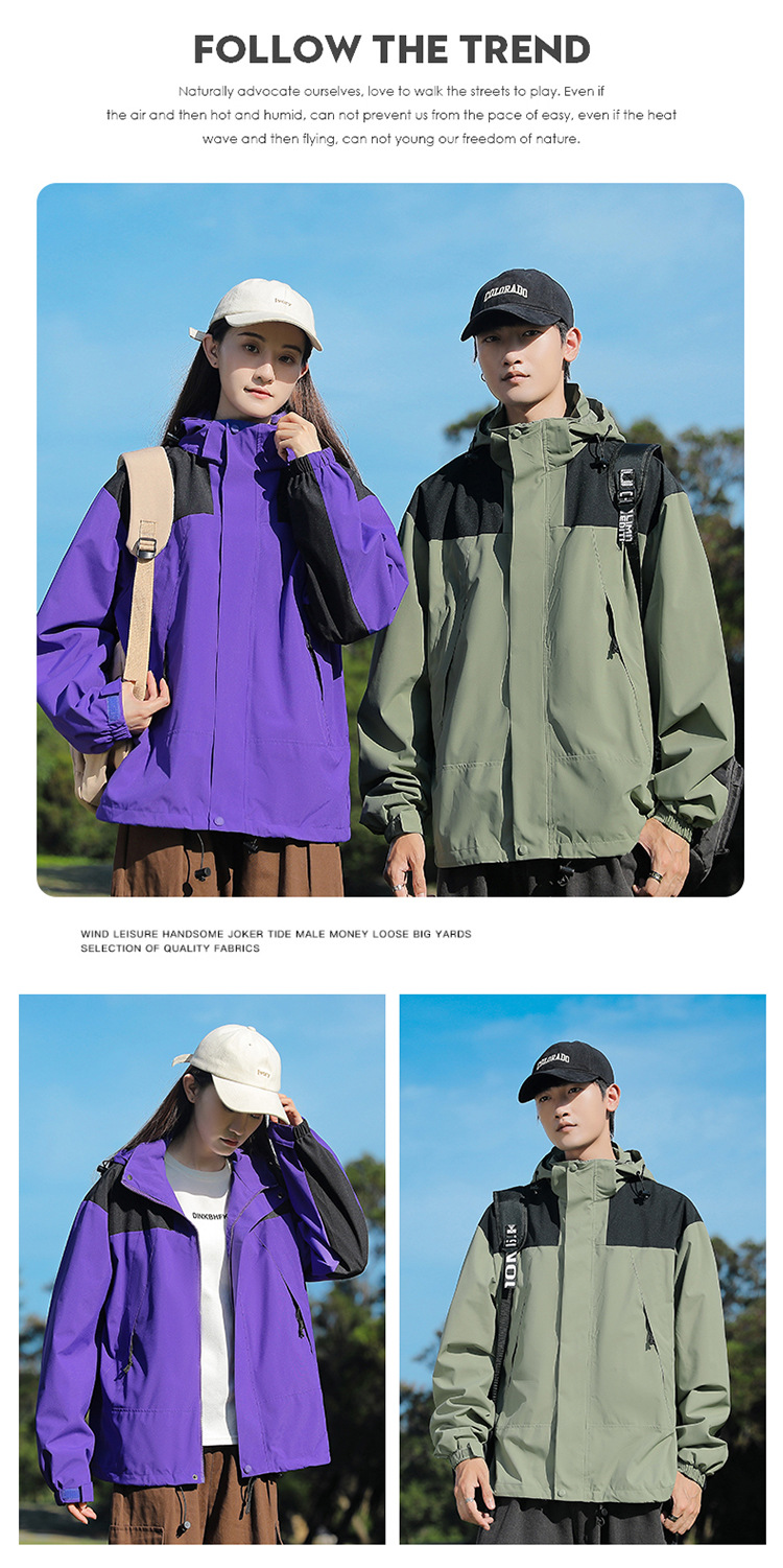户外运动冲锋衣春秋男女同款开衫连帽上衣拼接情侣防风防水登山服