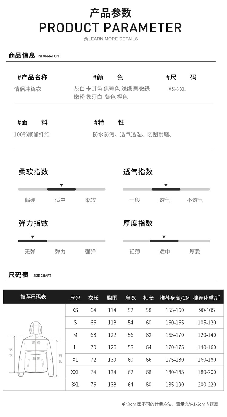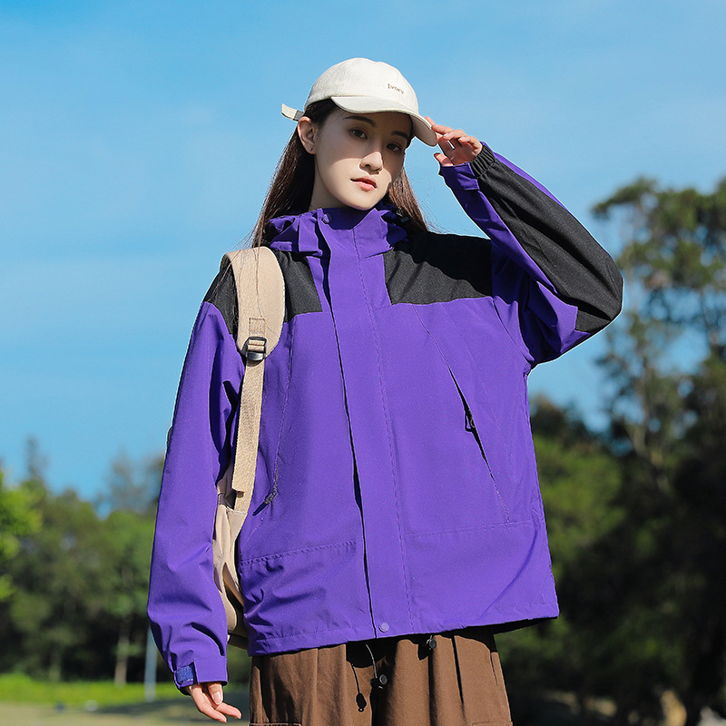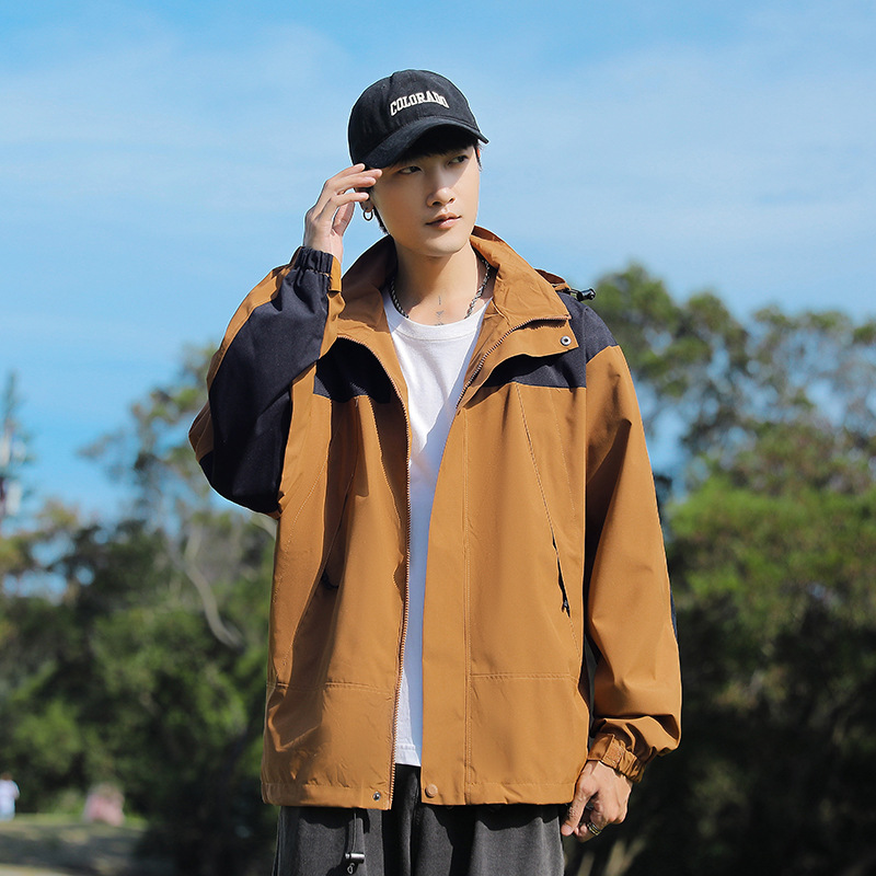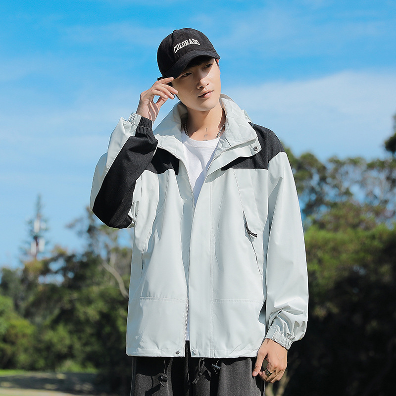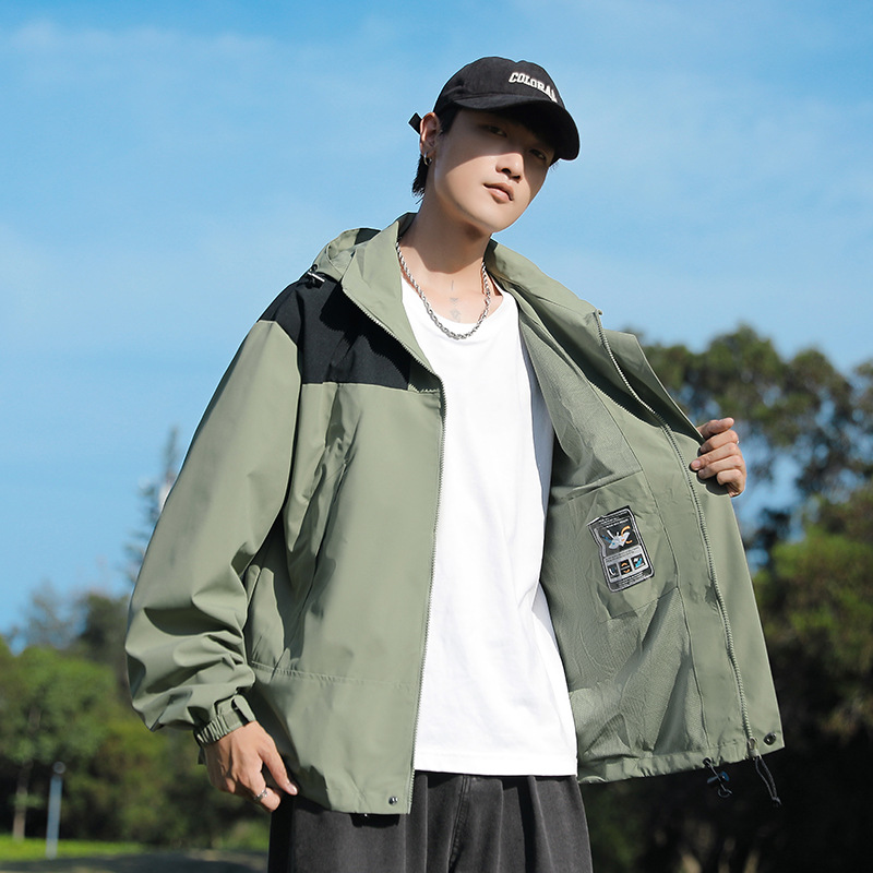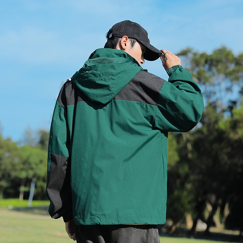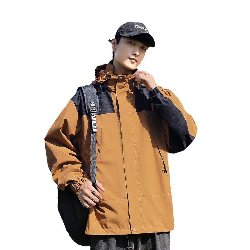 户外运动冲锋衣春秋男女同款开衫连帽上衣拼接情侣防风防水登山服
