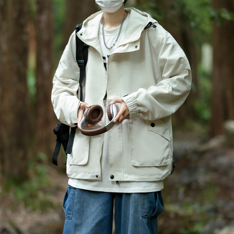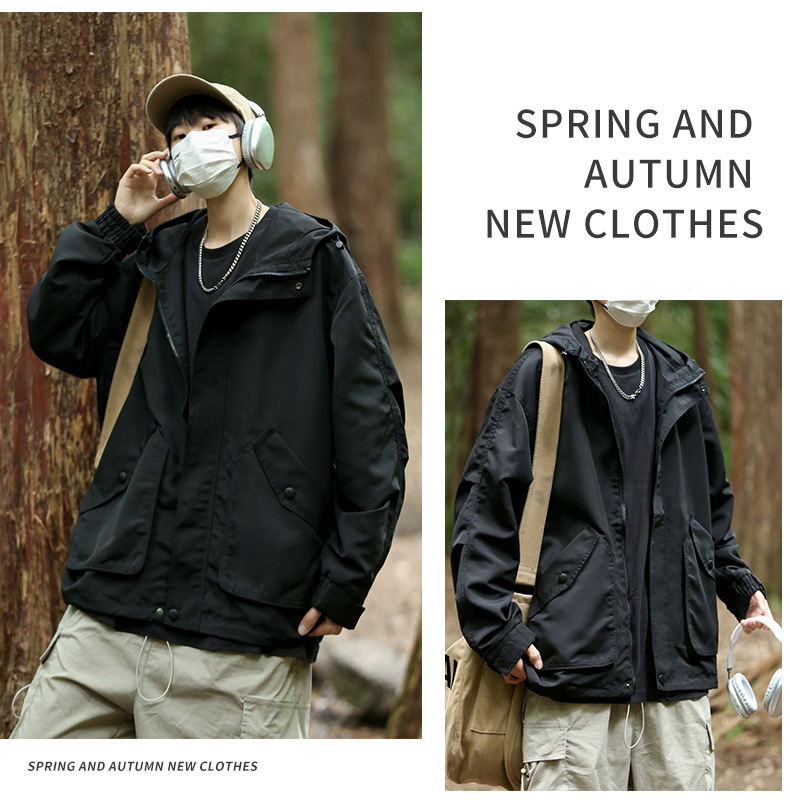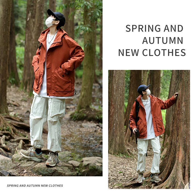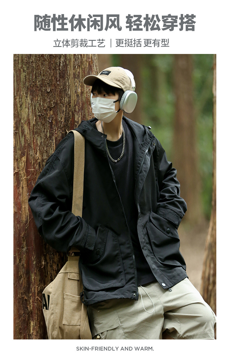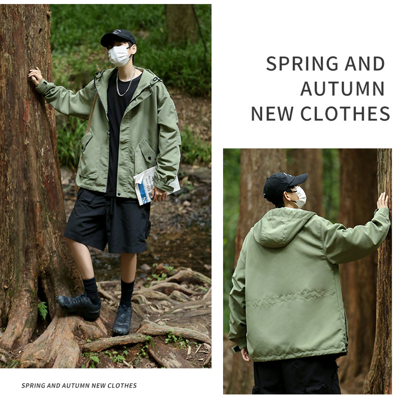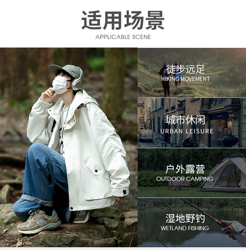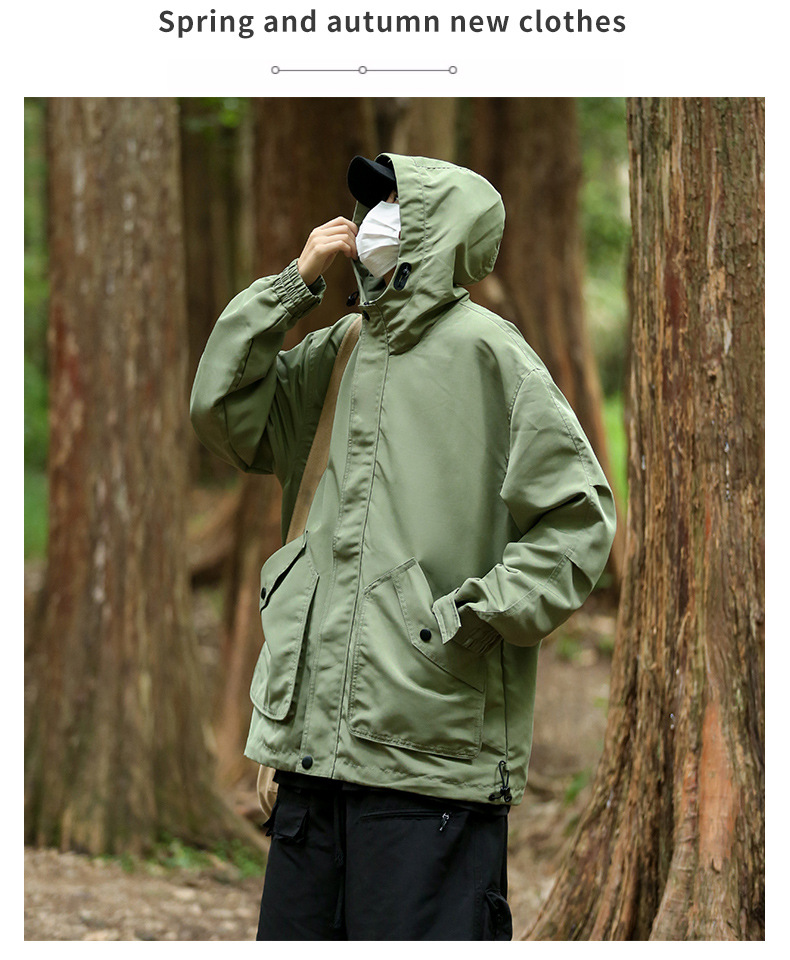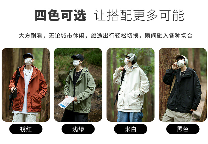 23春秋季新款爆款休闲夹克连帽防风防水冲锋衣男户外运动潮流外套