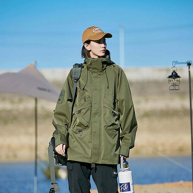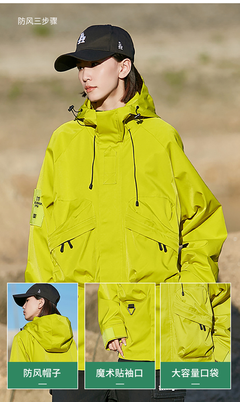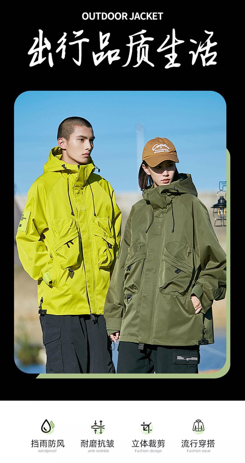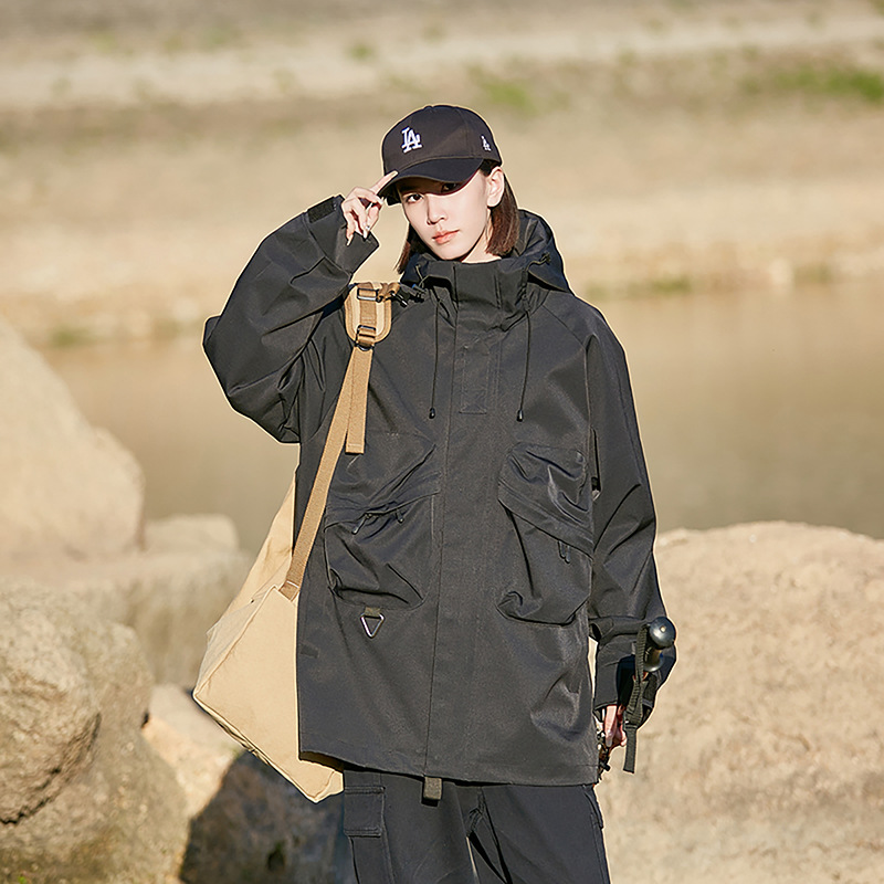 男女同款春秋美式高街机能潮流户外工装防风防水连帽冲锋衣夹克