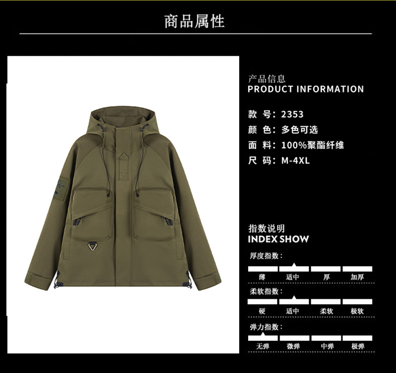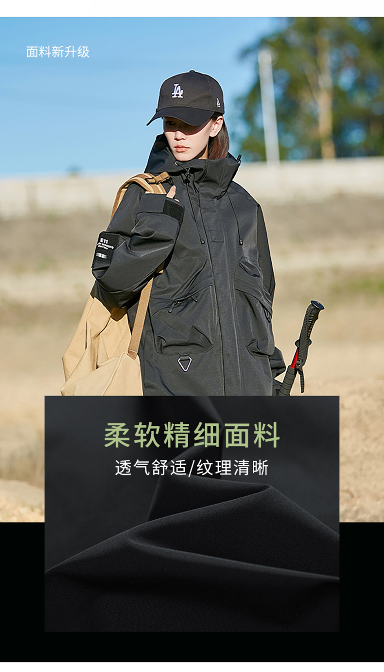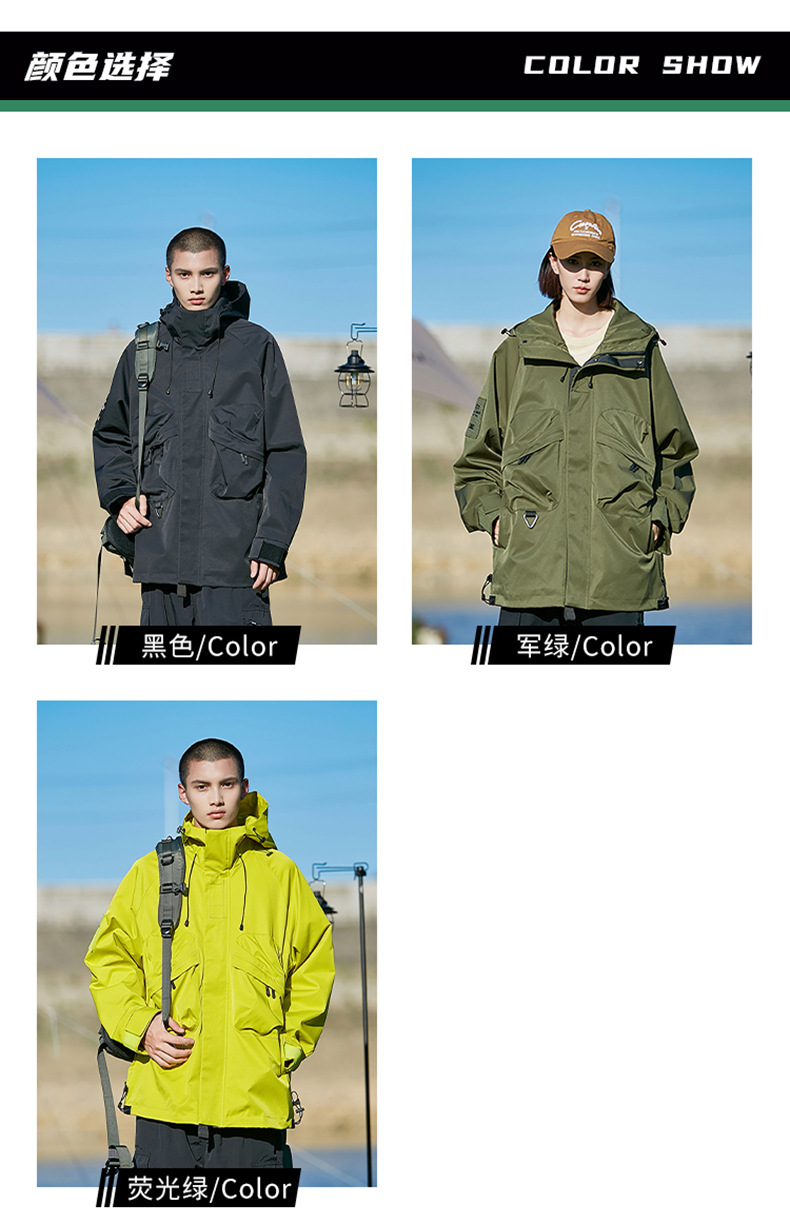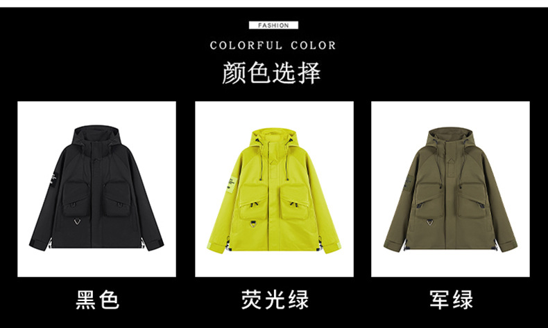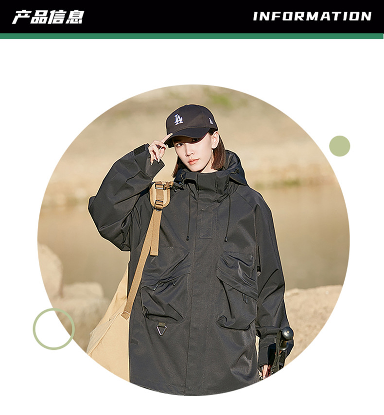 男女同款春秋美式高街机能潮流户外工装防风防水连帽冲锋衣夹克