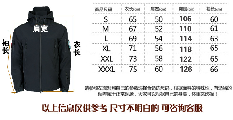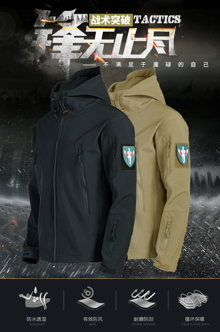 鲨鱼皮软壳冲锋衣户外男款战术夹克军迷服M65风衣防寒服外套