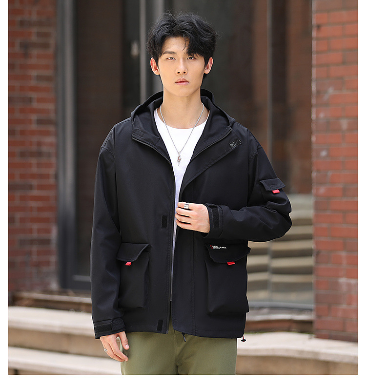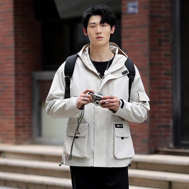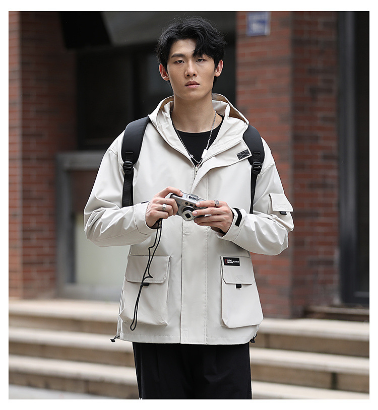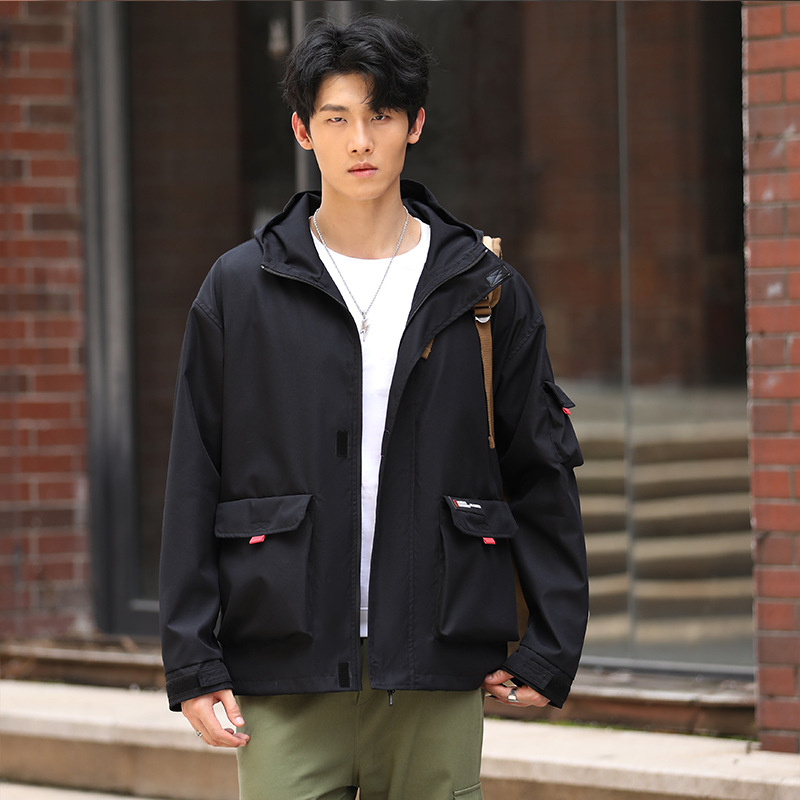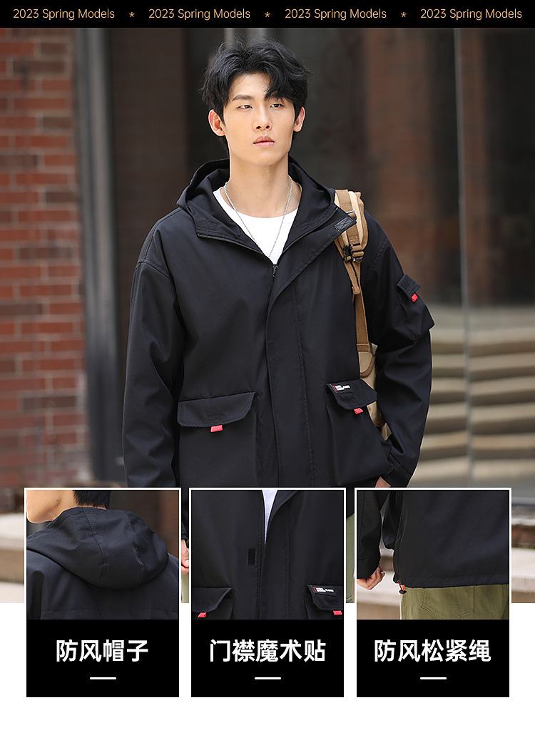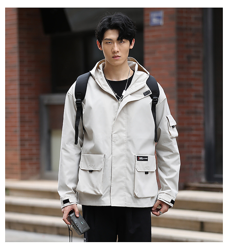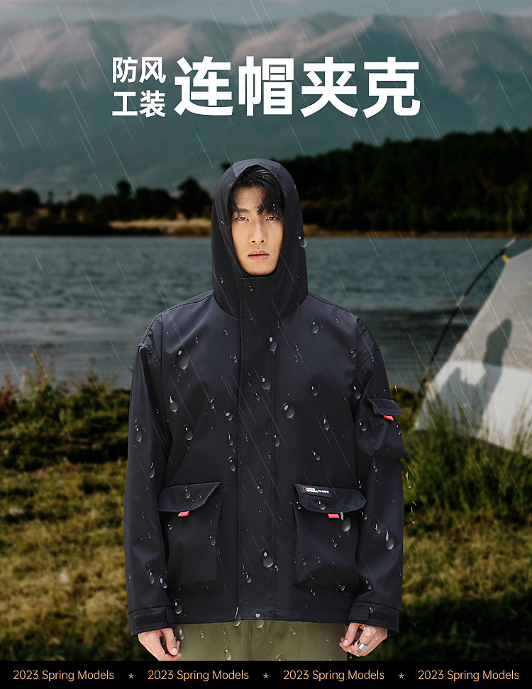 日系工装夹克男2023秋季薄款连帽宽松休闲潮牌青年外套冲锋衣男装