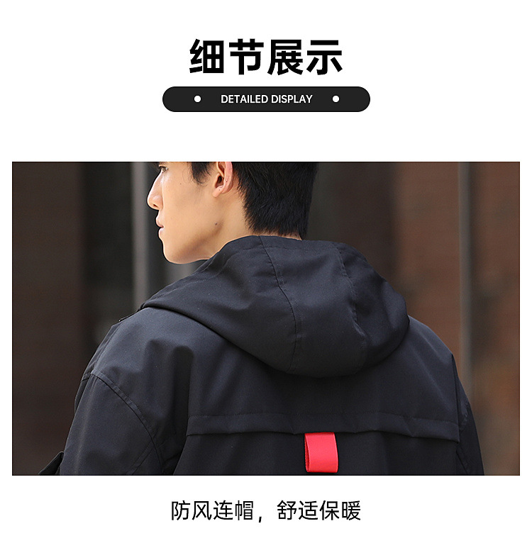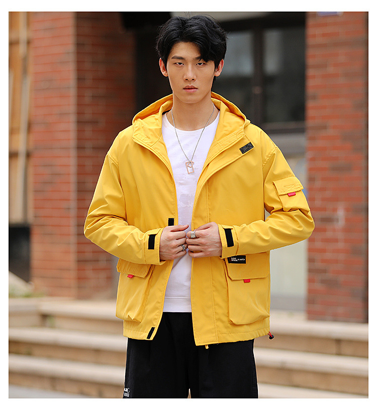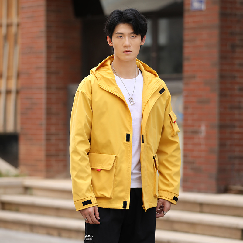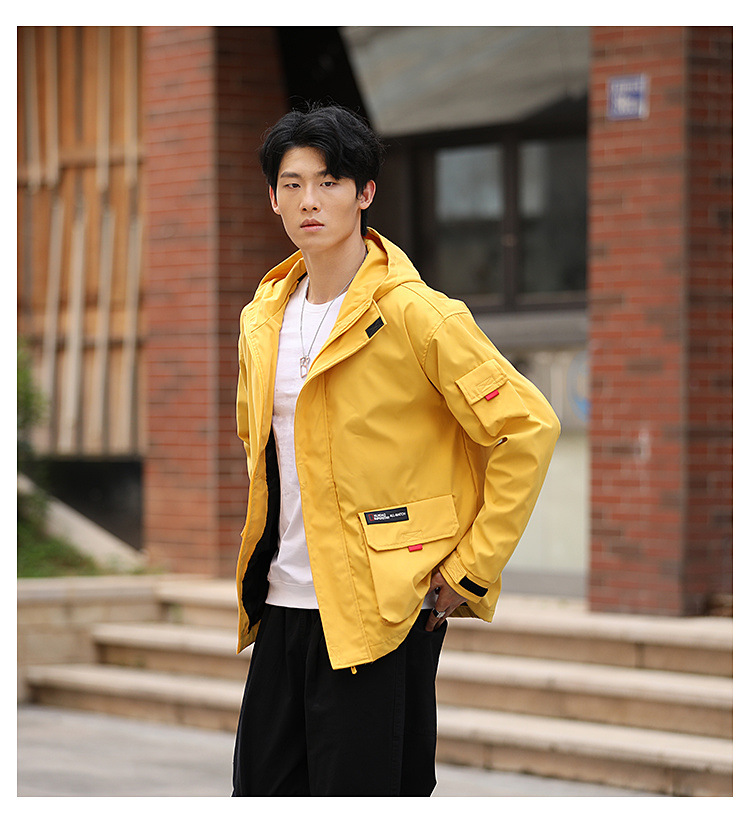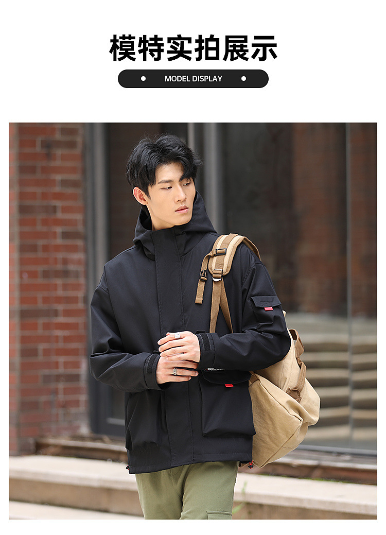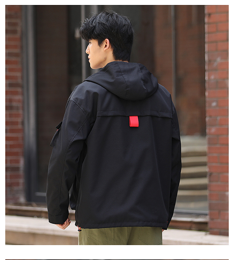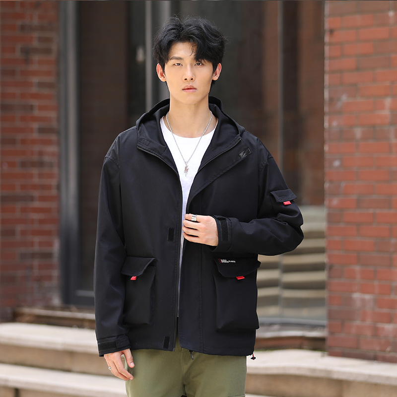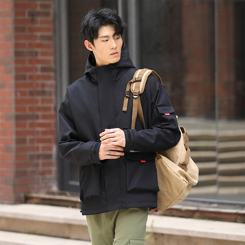 日系工装夹克男2023秋季薄款连帽宽松休闲潮牌青年外套冲锋衣男装