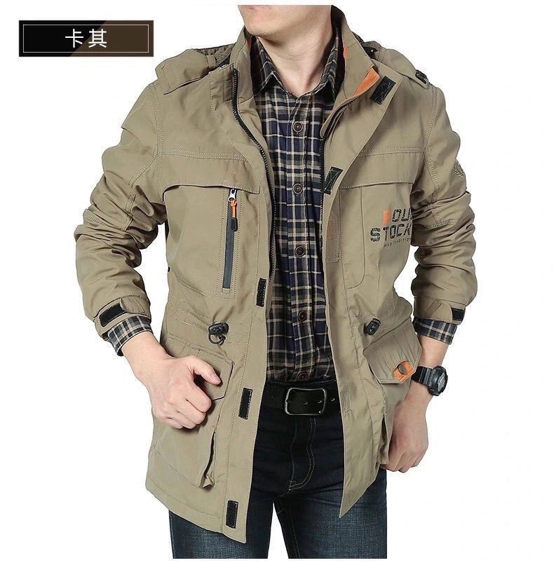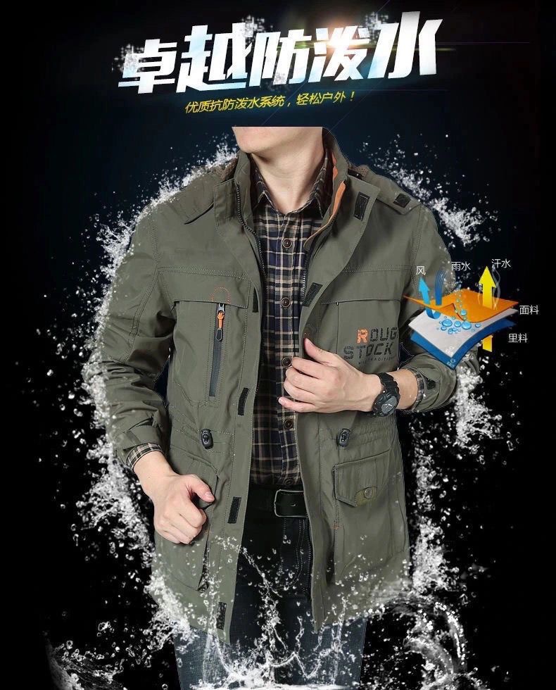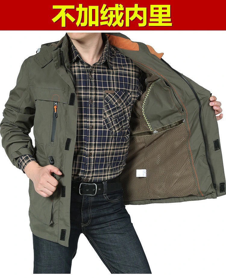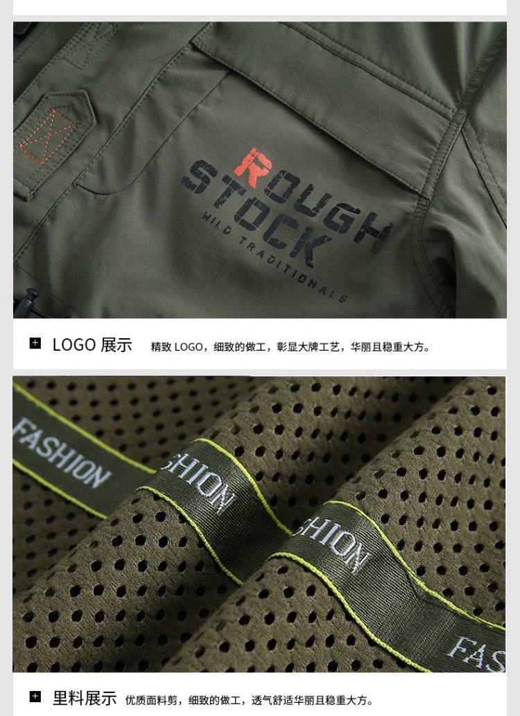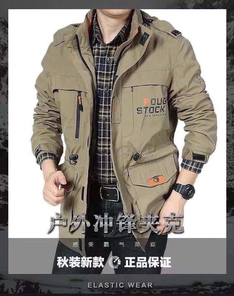 春秋薄款男士外套户外防风防水登山服冲锋衣大码多口袋夹克086款