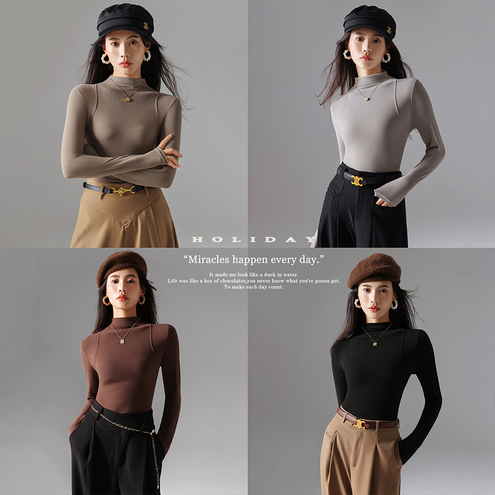 【礼盒装】【椰油蛋白】春秋款加厚半高领打底衫纯色修身遮副乳打