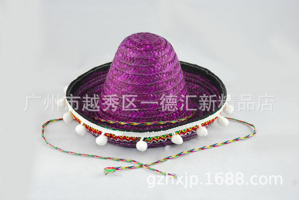 B191 绒球草帽 墨西哥草帽 夏威夷风情装扮道具 派对用品