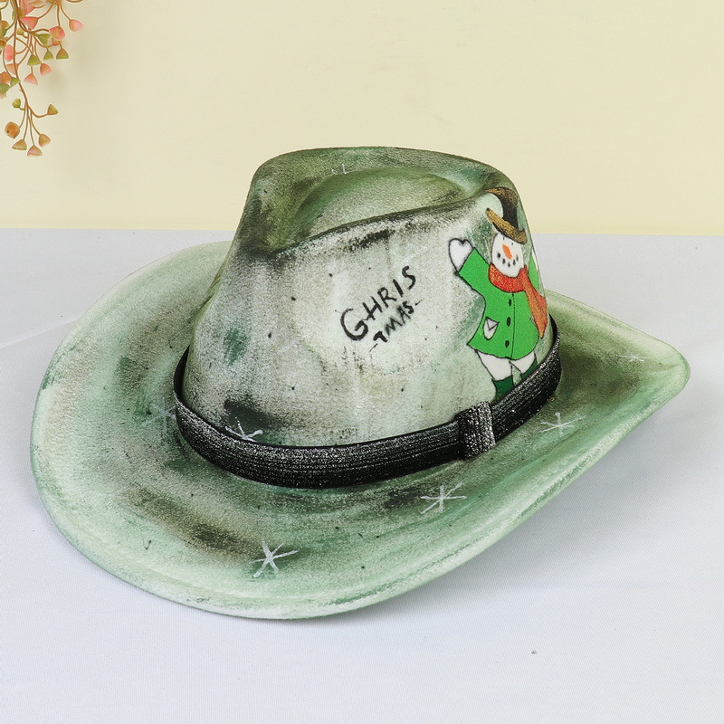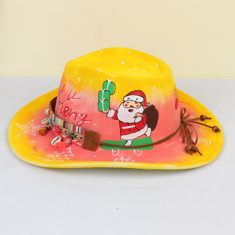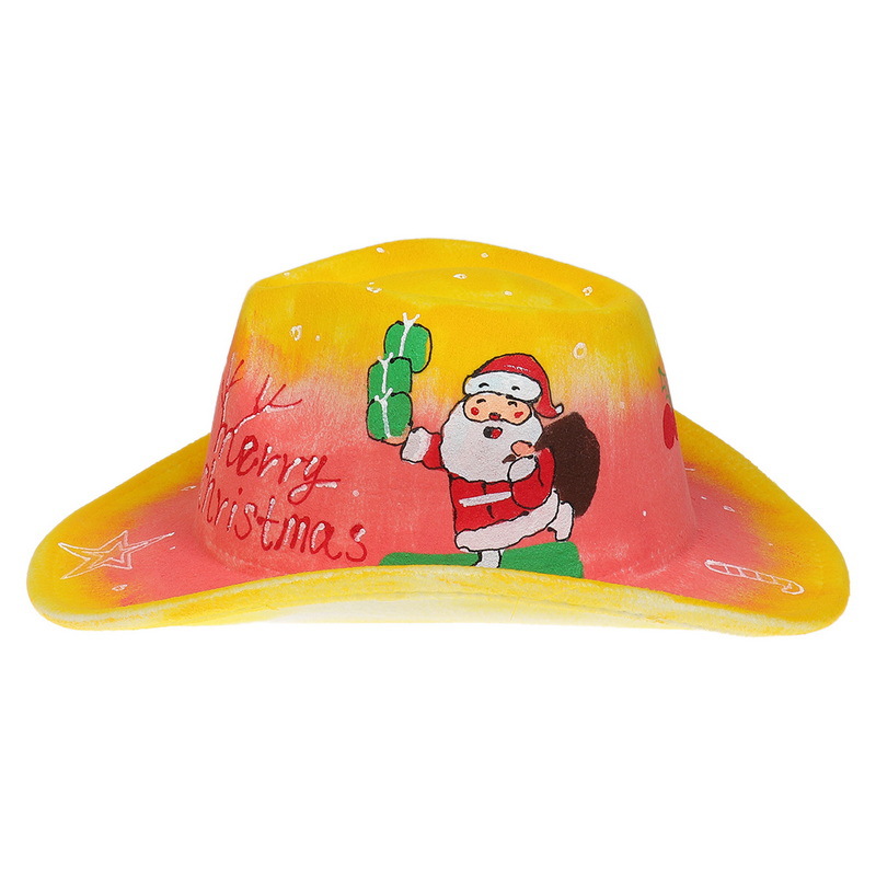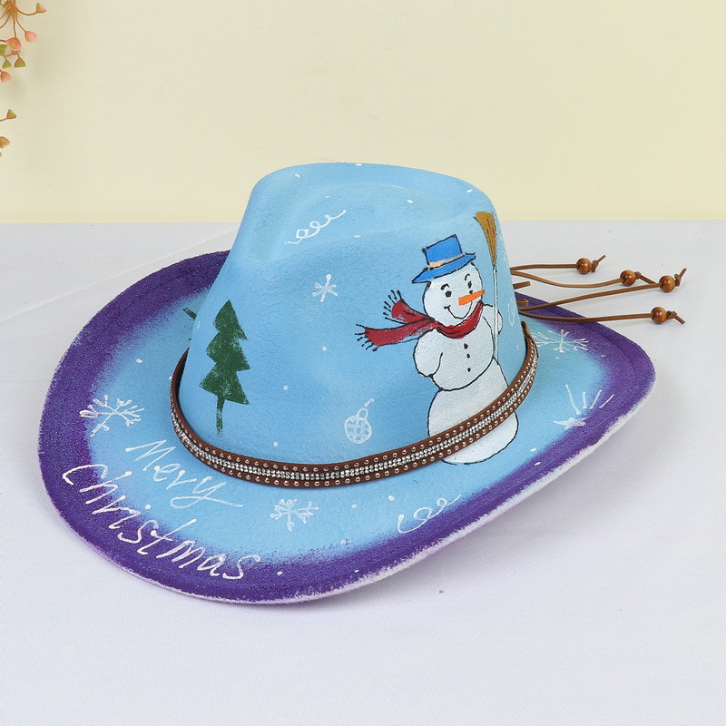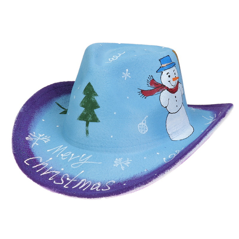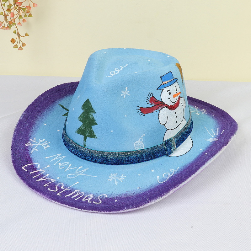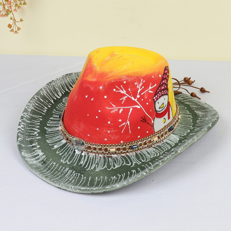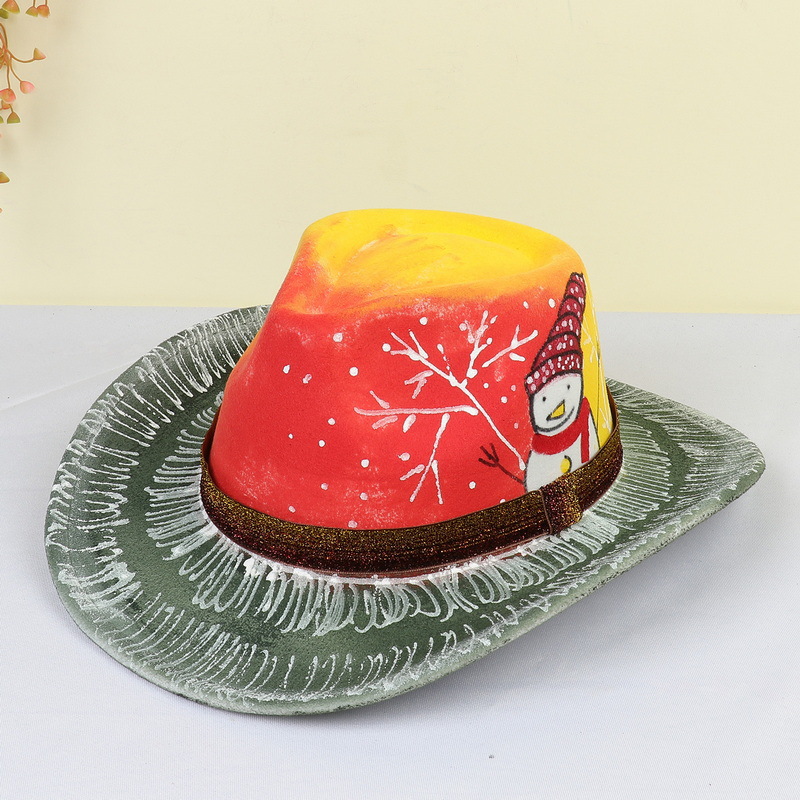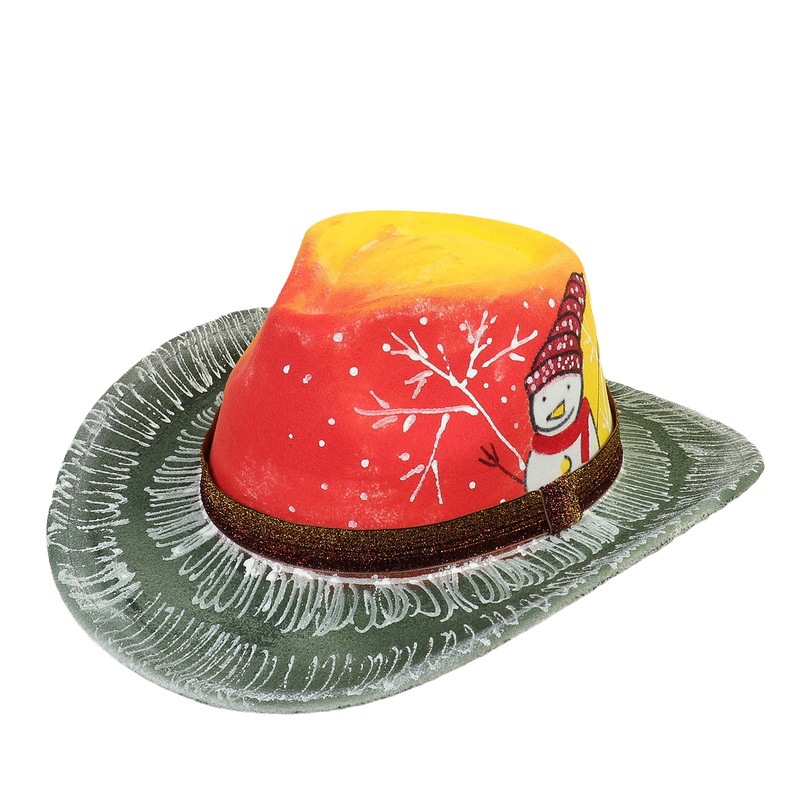 跨境新品万圣节圣诞节礼帽派对手绘彩色牛仔帽舞会骷颅头图案帽子