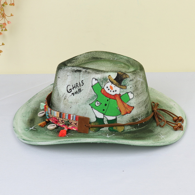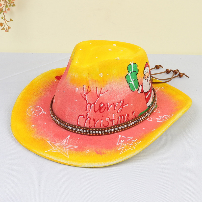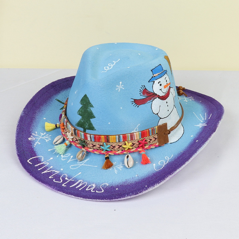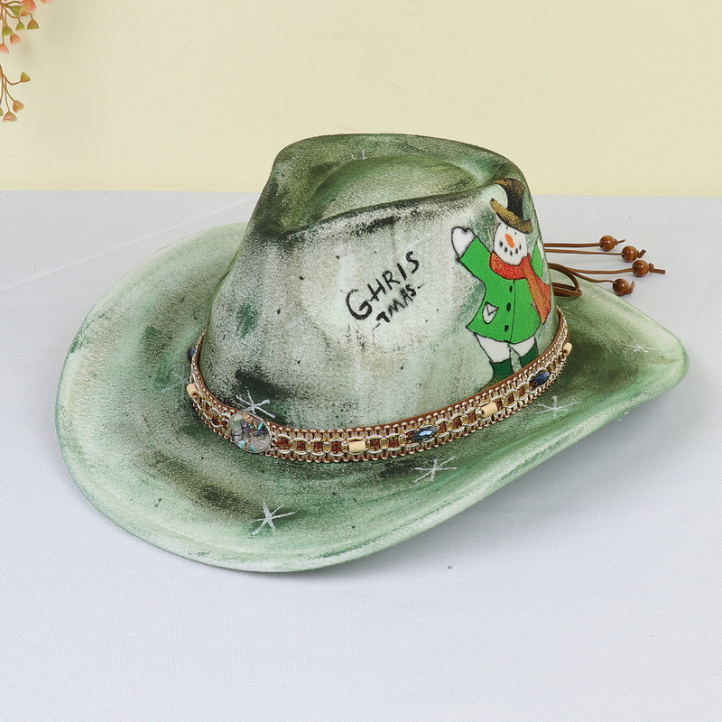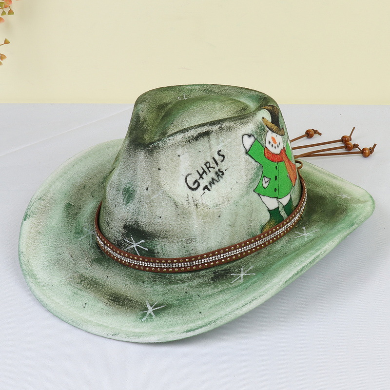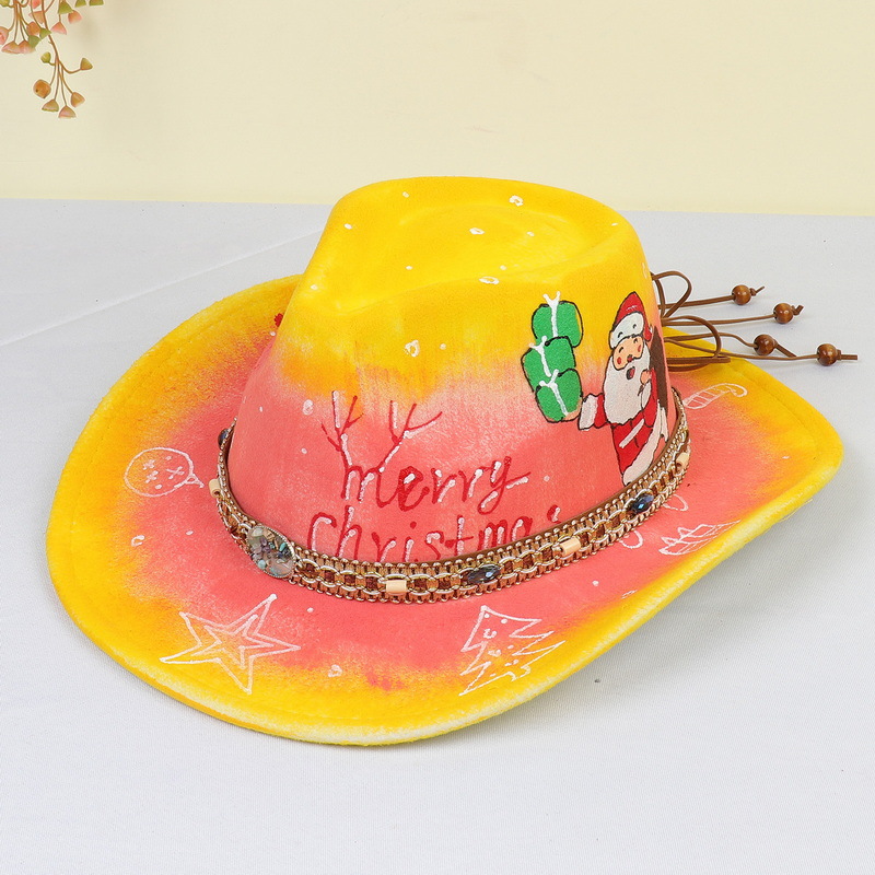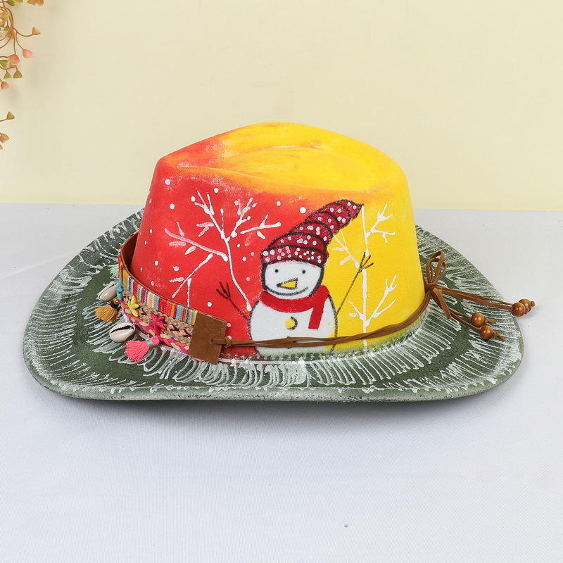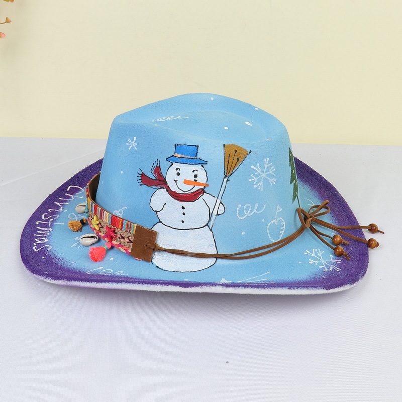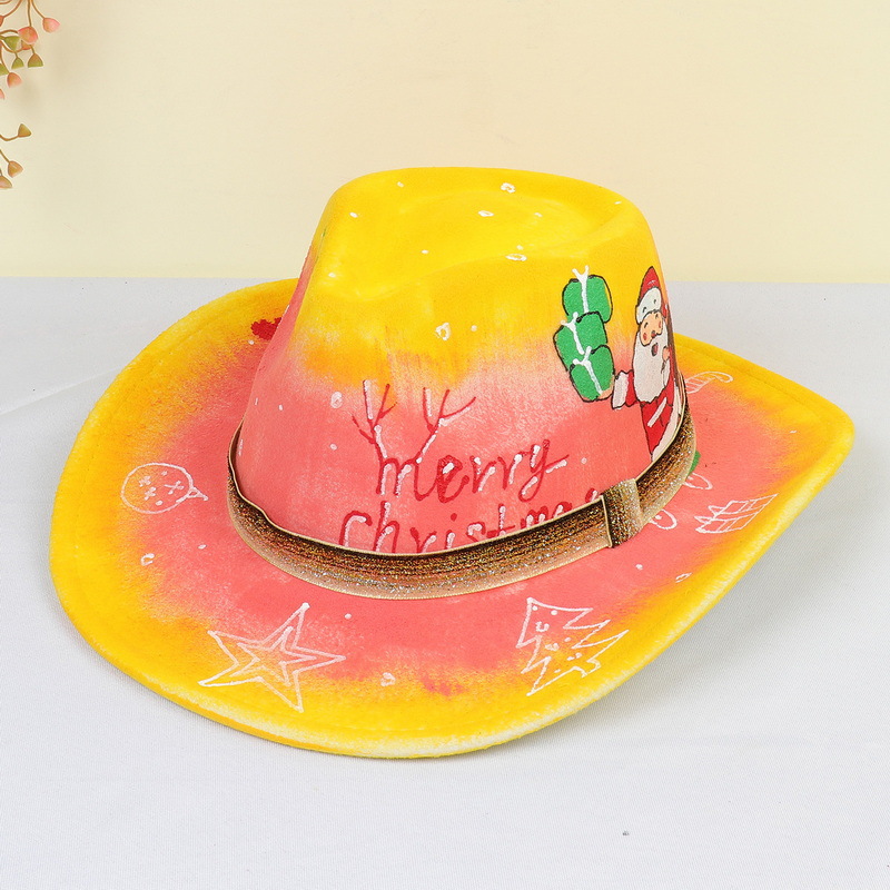 跨境新品万圣节圣诞节礼帽派对手绘彩色牛仔帽舞会骷颅头图案帽子