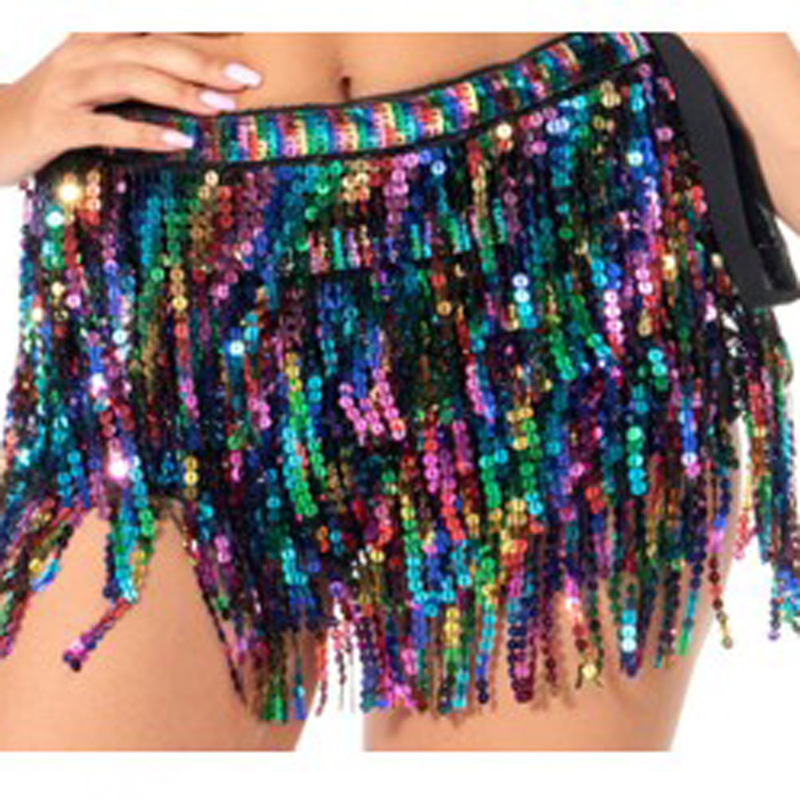 万圣节肚皮舞演出服装亮片流苏臀巾亮片流苏舞蹈裙子表演腰巾