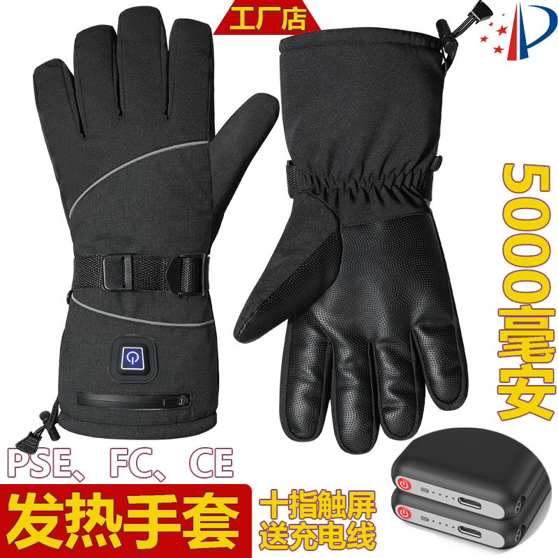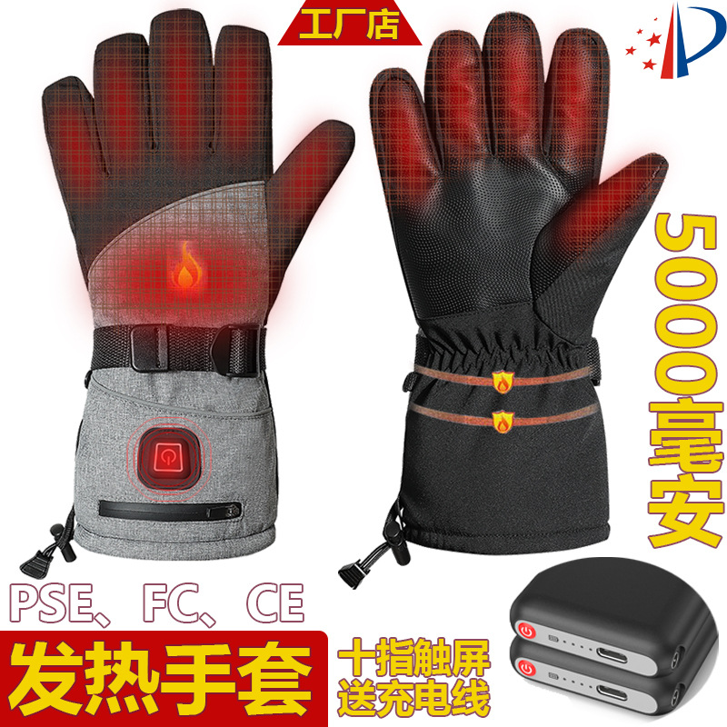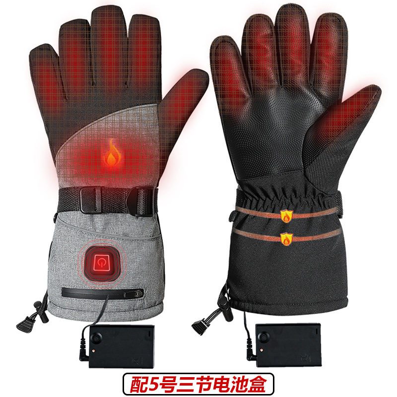 升级智能发热手套男女三挡温控户外防寒电热滑雪手套骑行加热手套