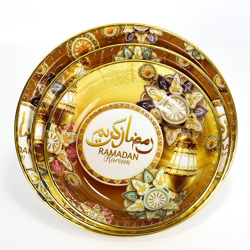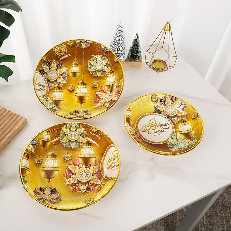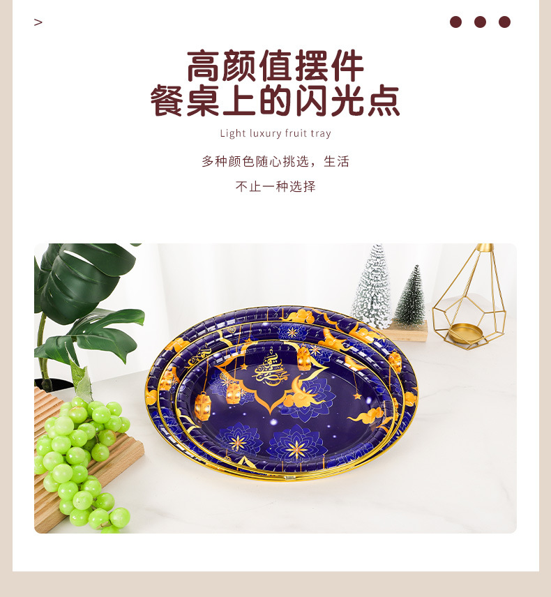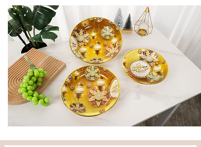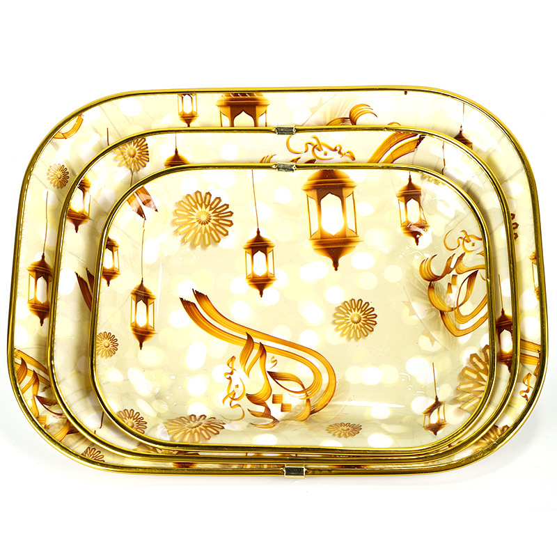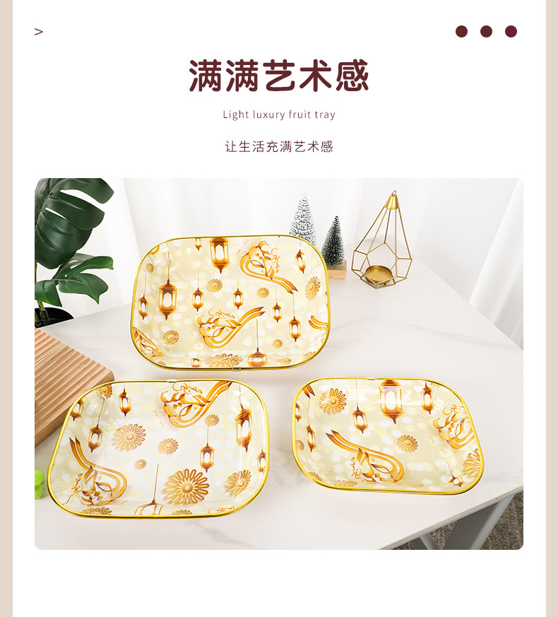 外贸大容量方形水果盘厂家批发新款多种图案果盘包金边花纸盘供货