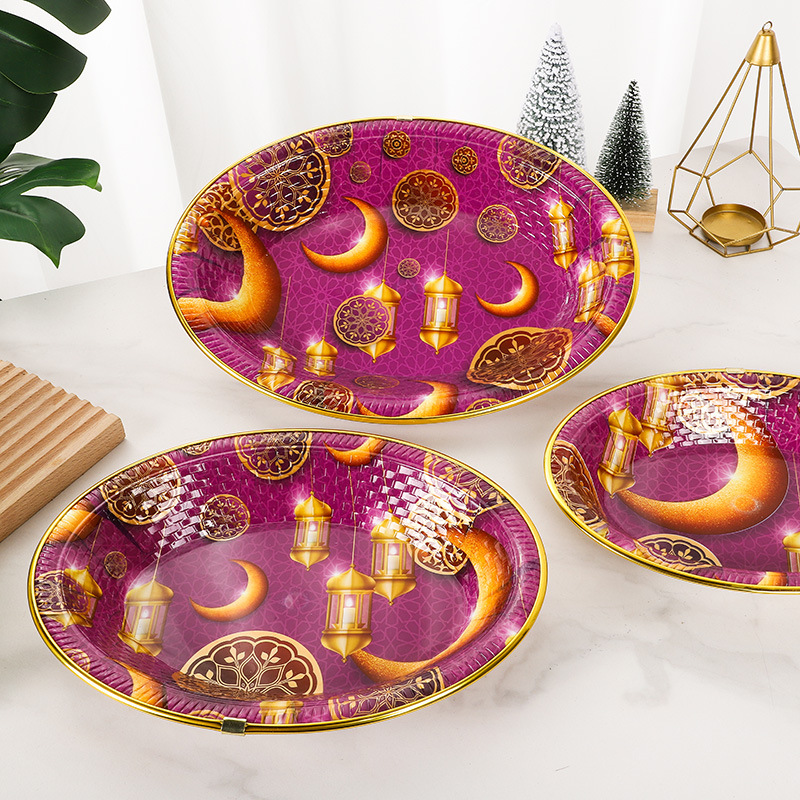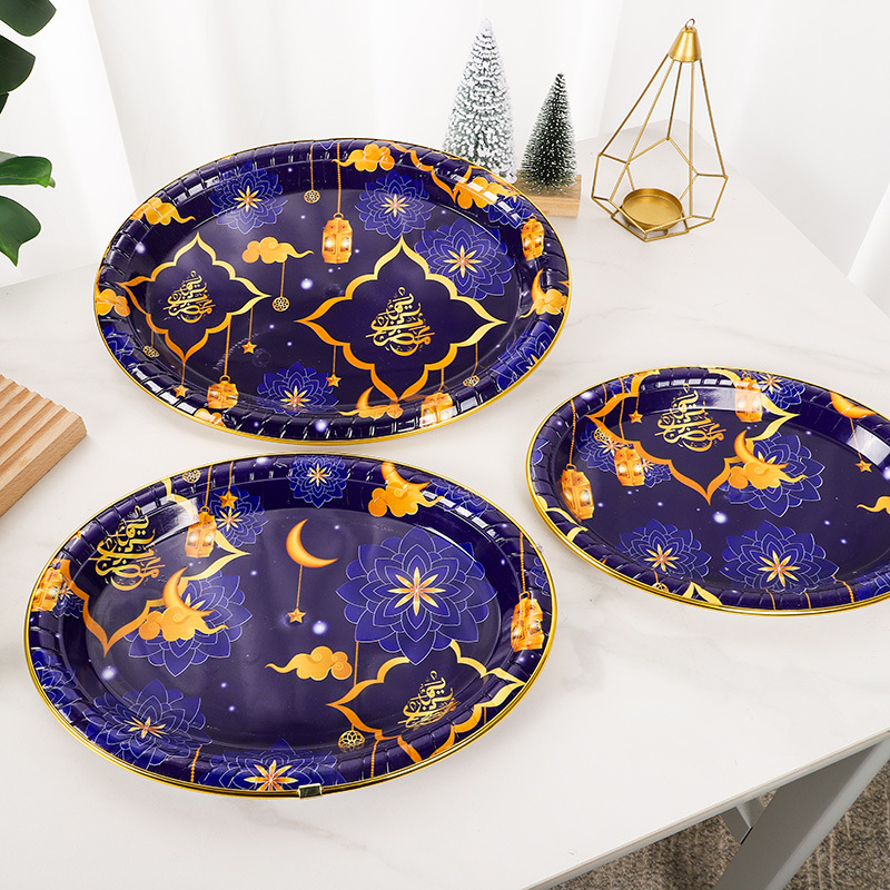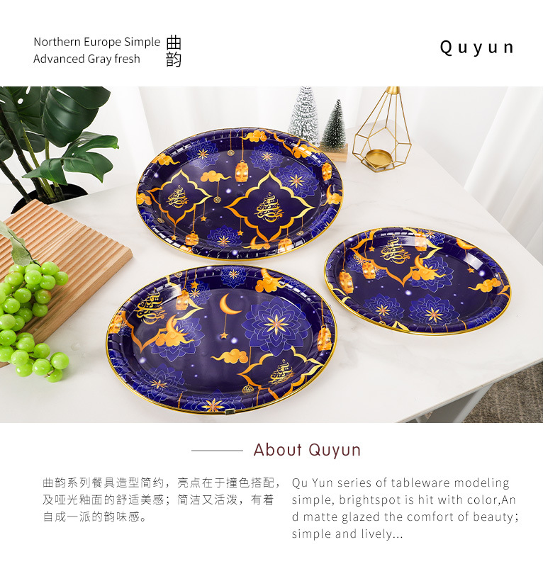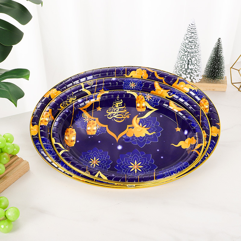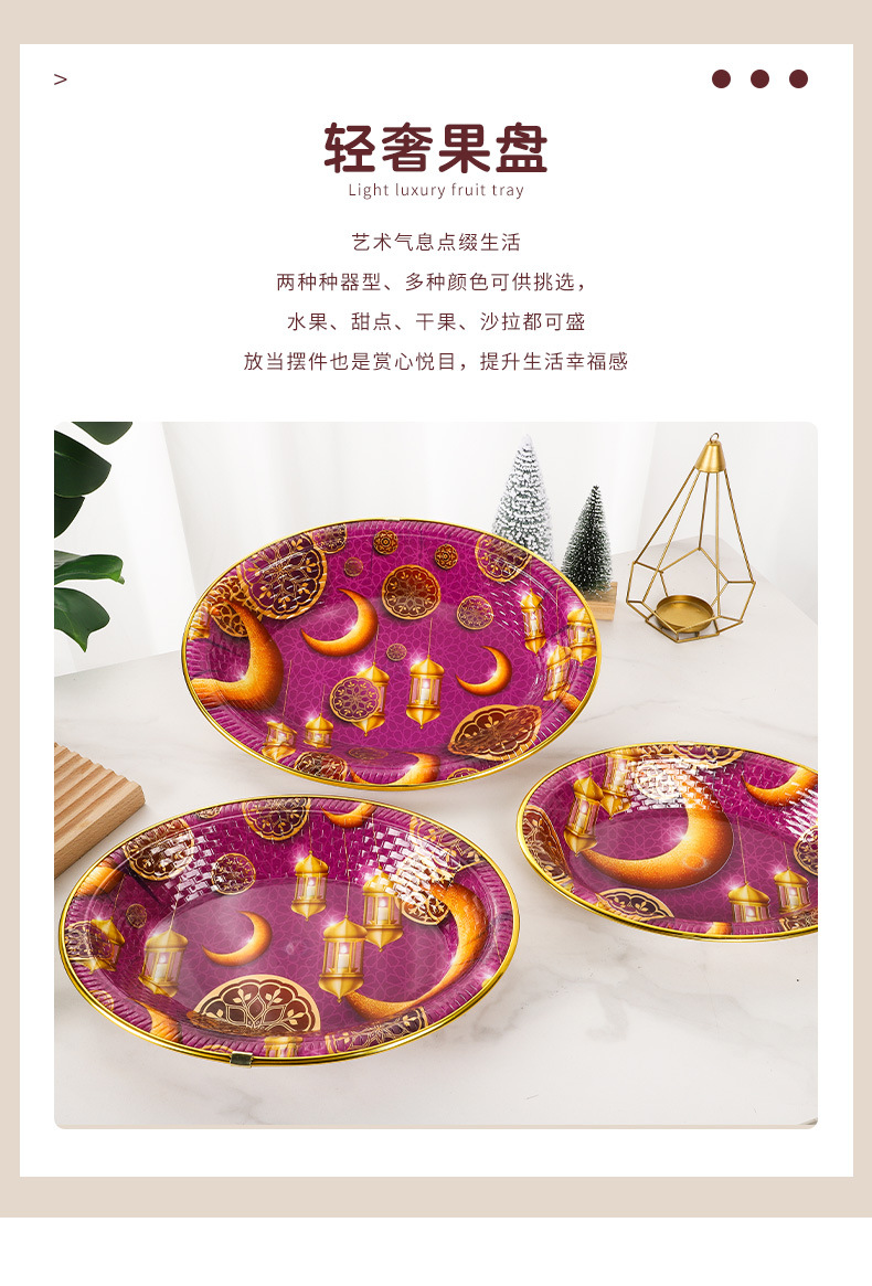 外贸大容量方形水果盘厂家批发新款多种图案果盘包金边花纸盘供货
