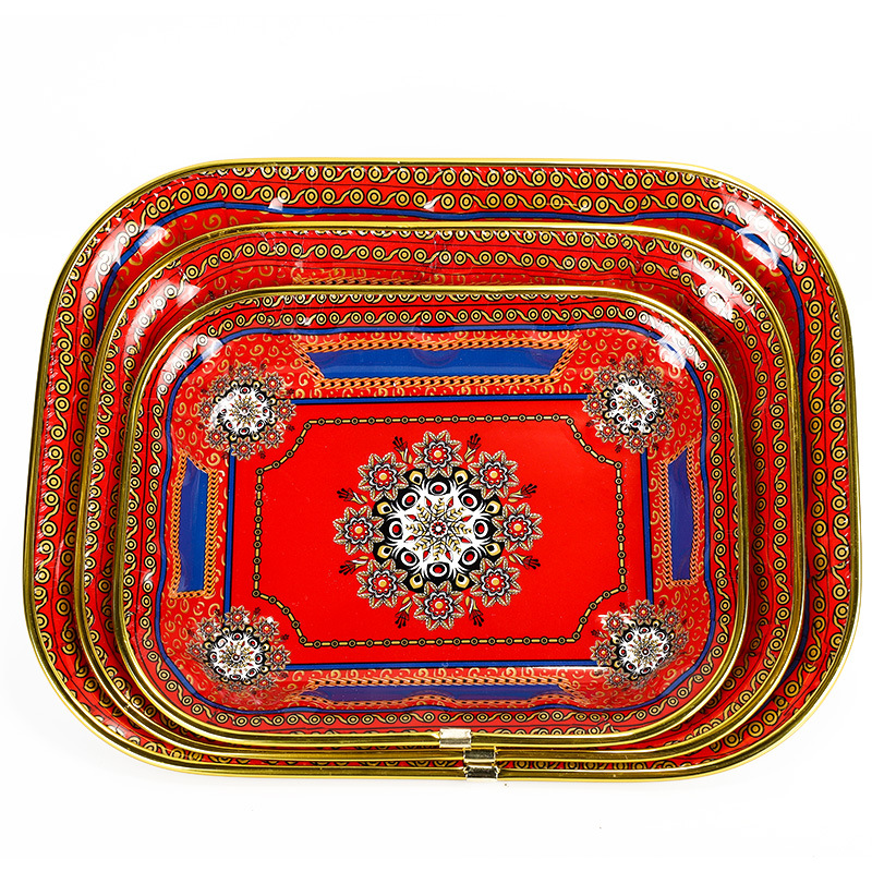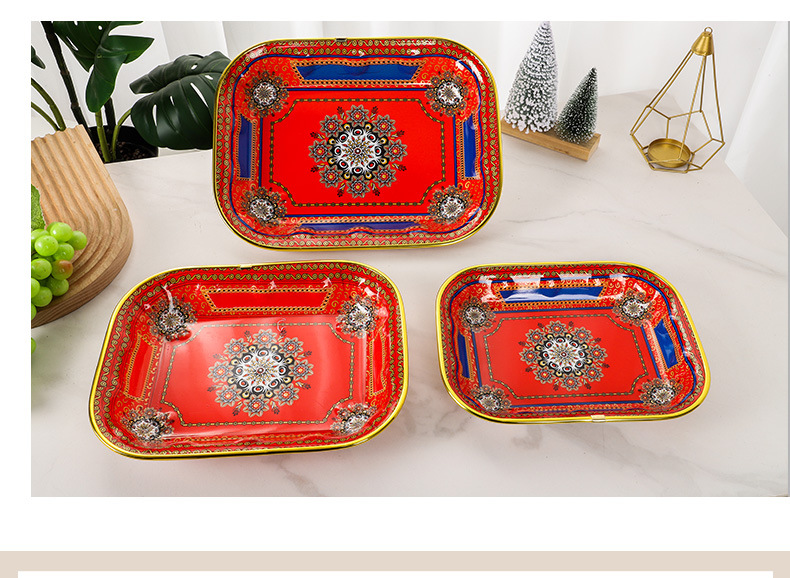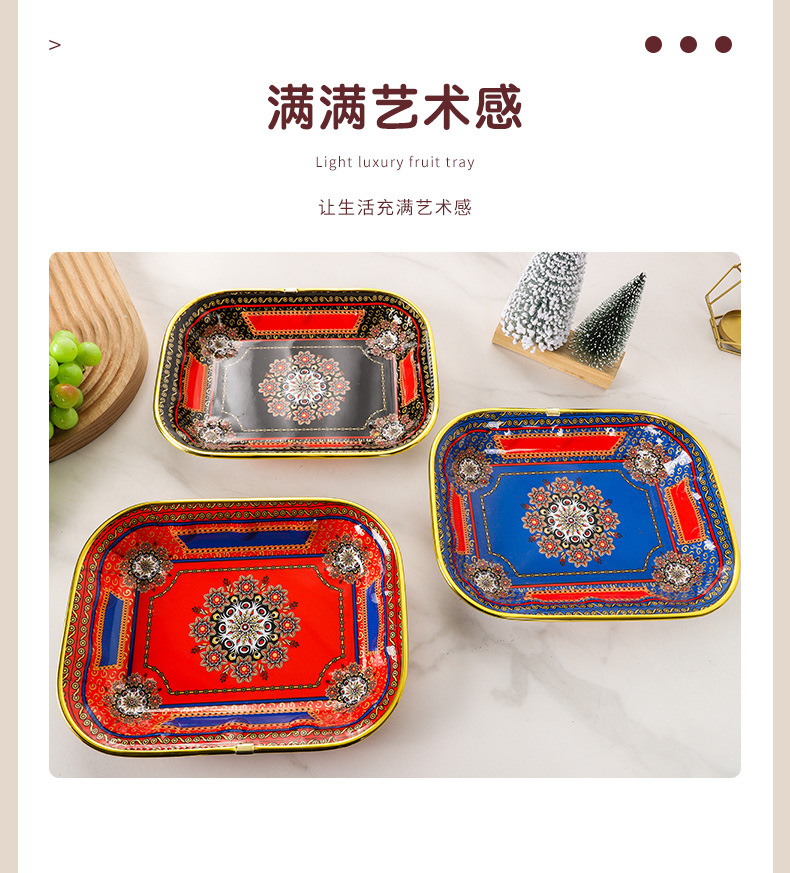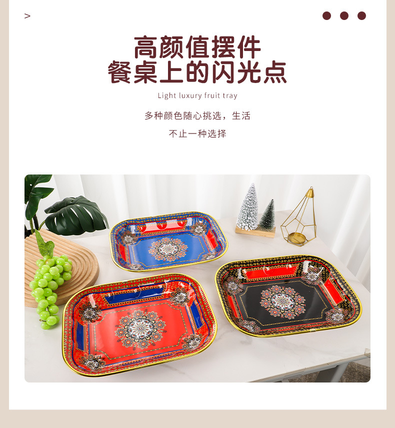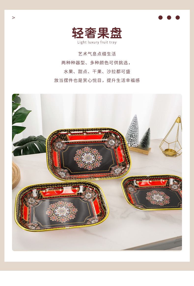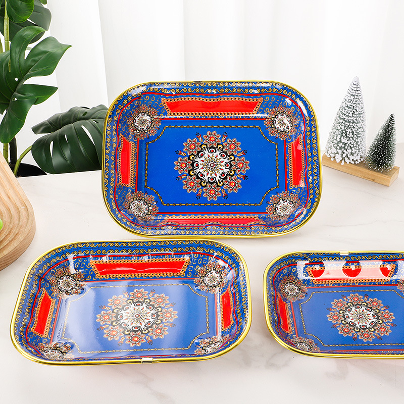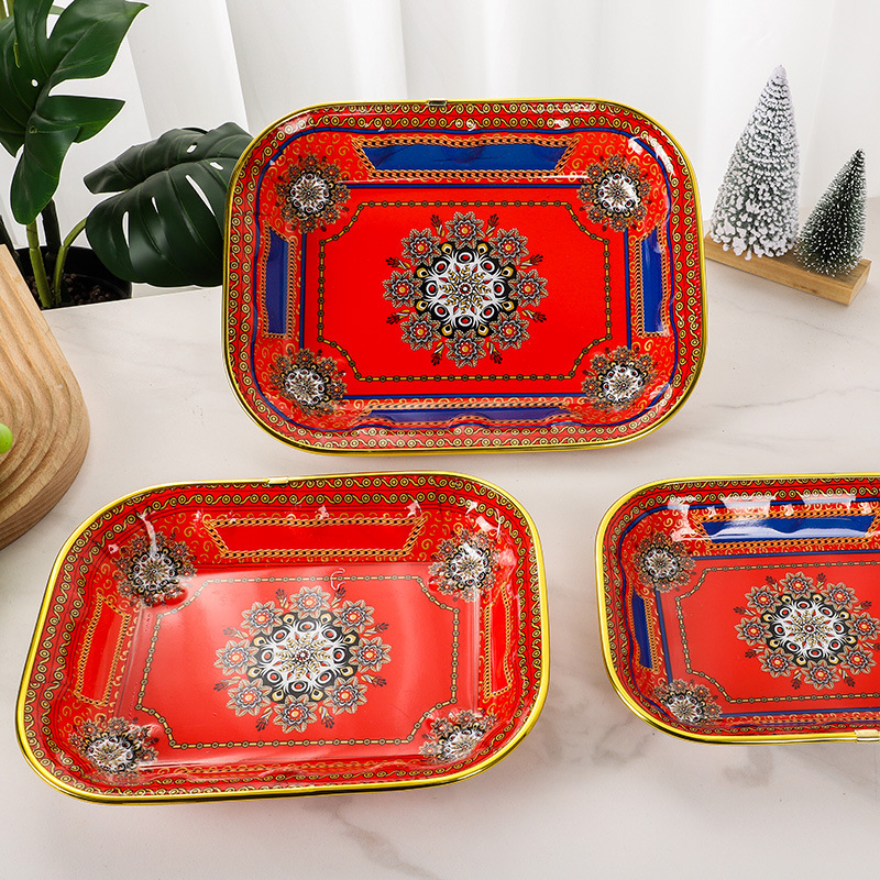 盘子亚马逊外贸非洲民族风塑料盘一次性盘家用菜意面沙拉盘水果盘