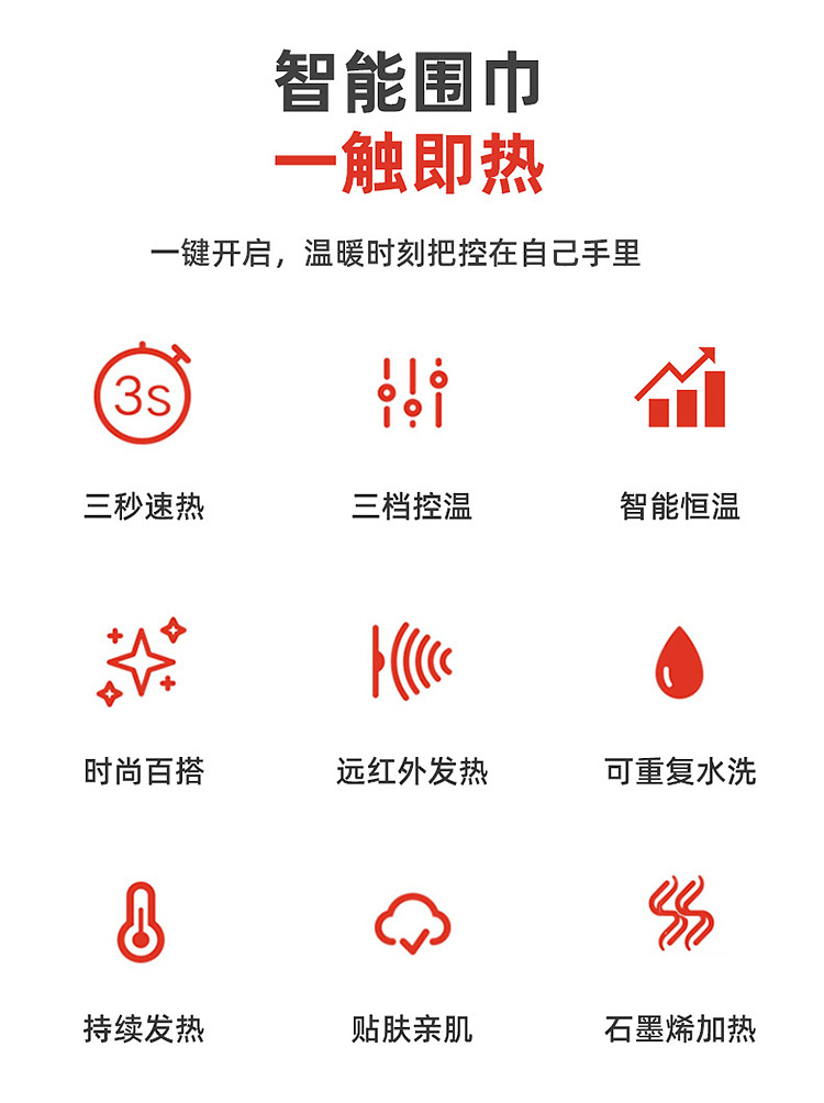 智能充电发热防水围巾护颈按摩抗寒保暖神器加热围脖男女礼物