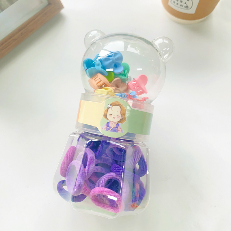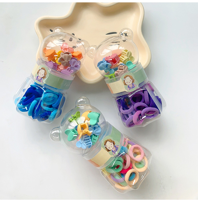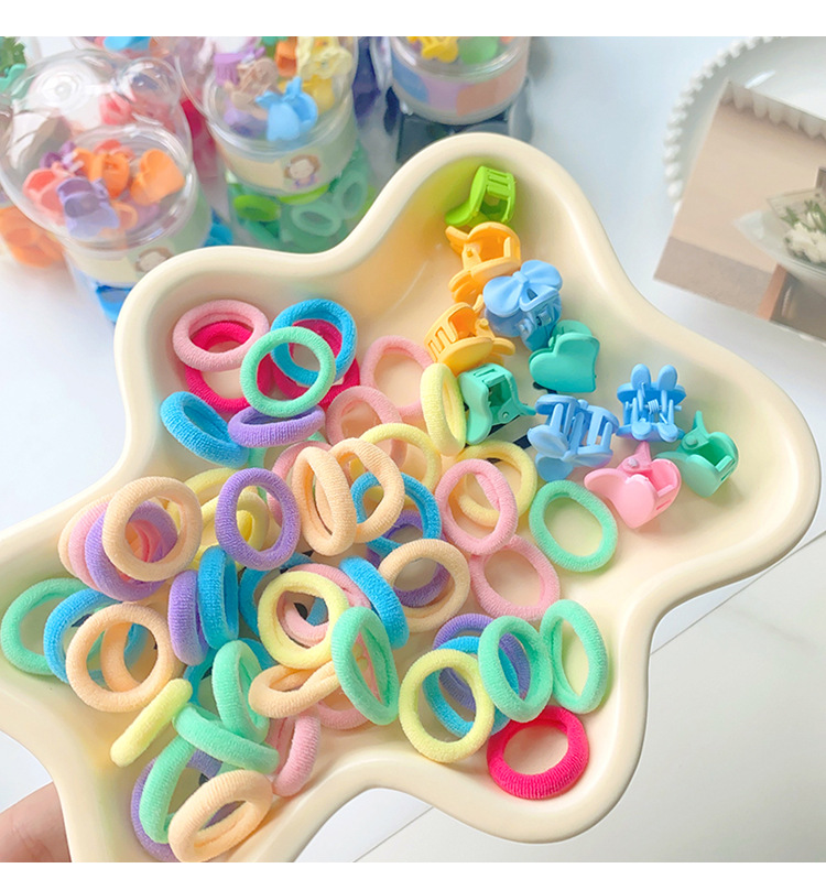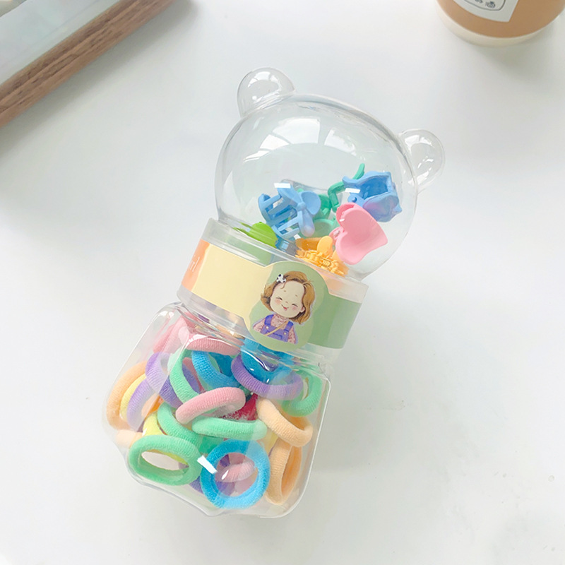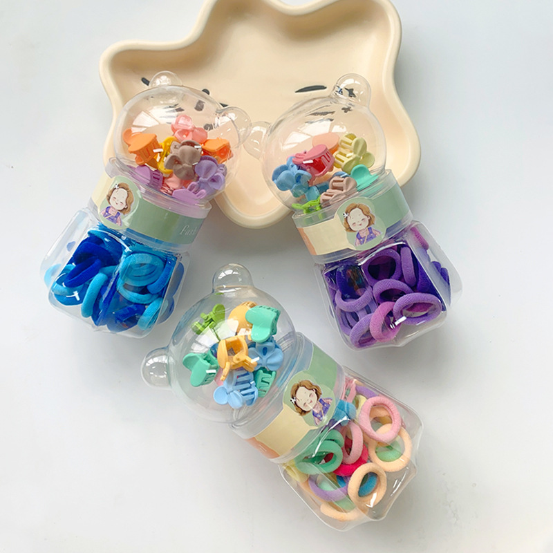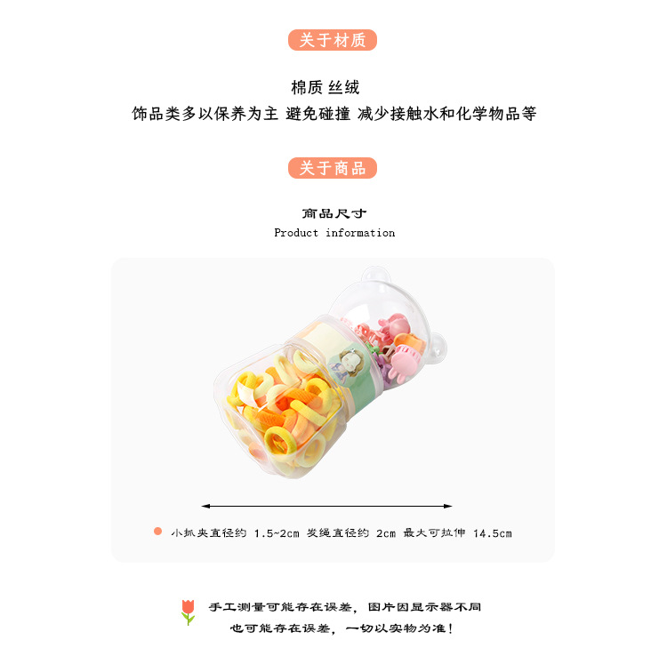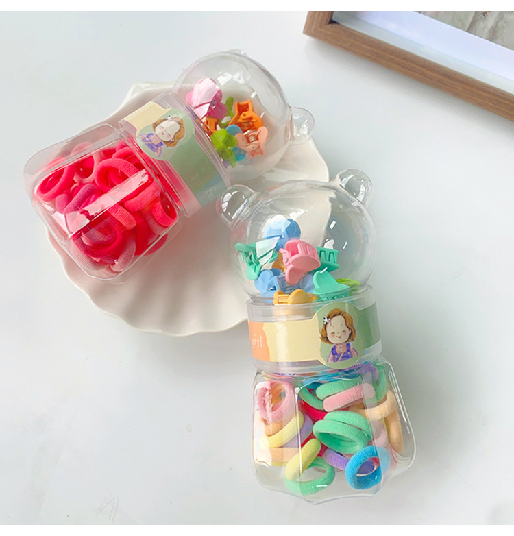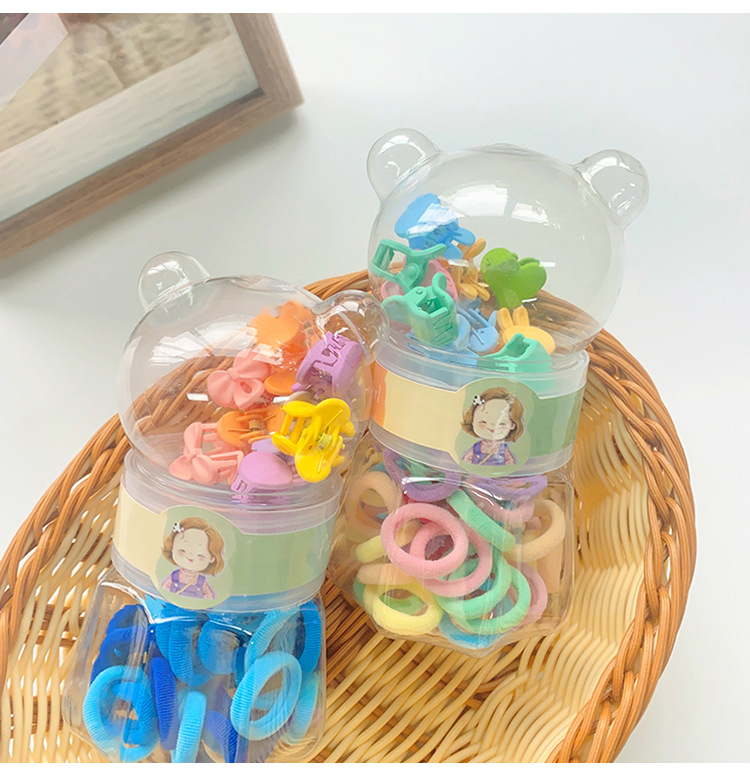 儿童罐装发绳发夹套装彩色高弹力耐用头绳女童不伤发扎头皮筋皮套