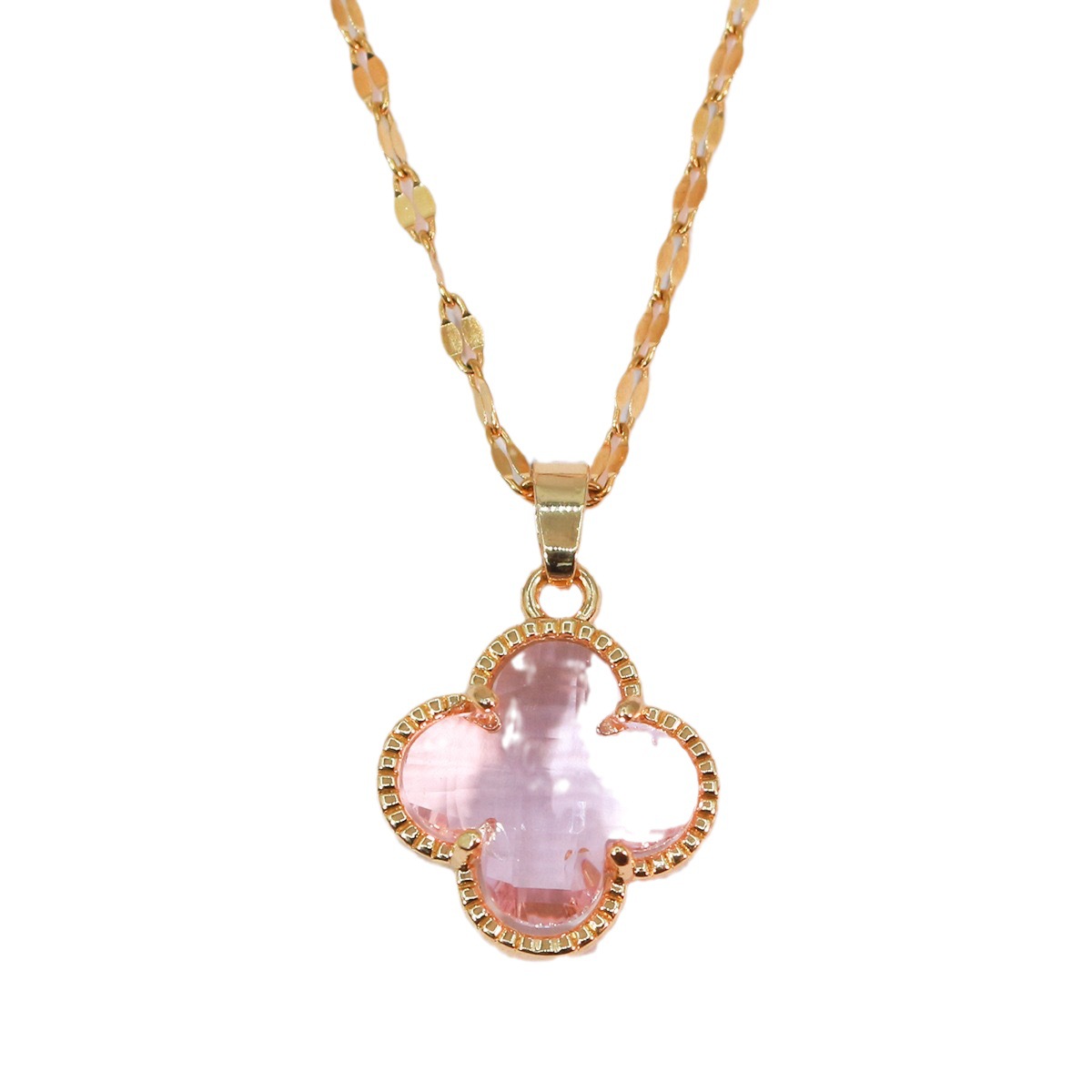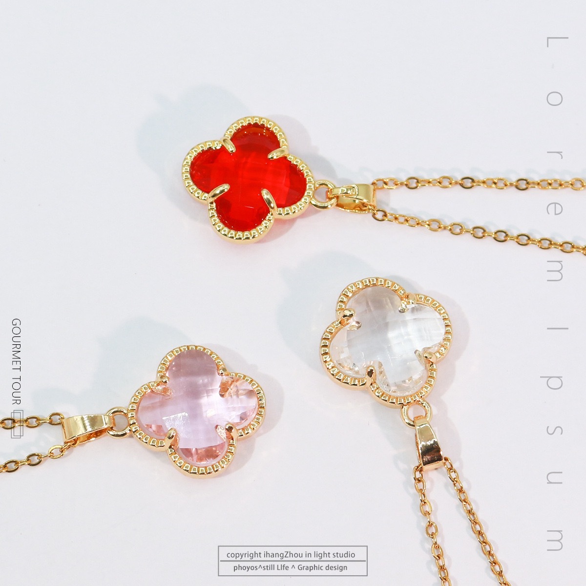 钛钢项链彩色水晶四叶草热卖时尚锁骨链轻奢小众设计感INS风项链