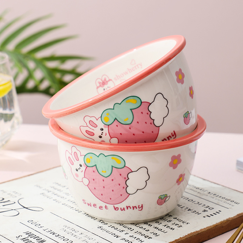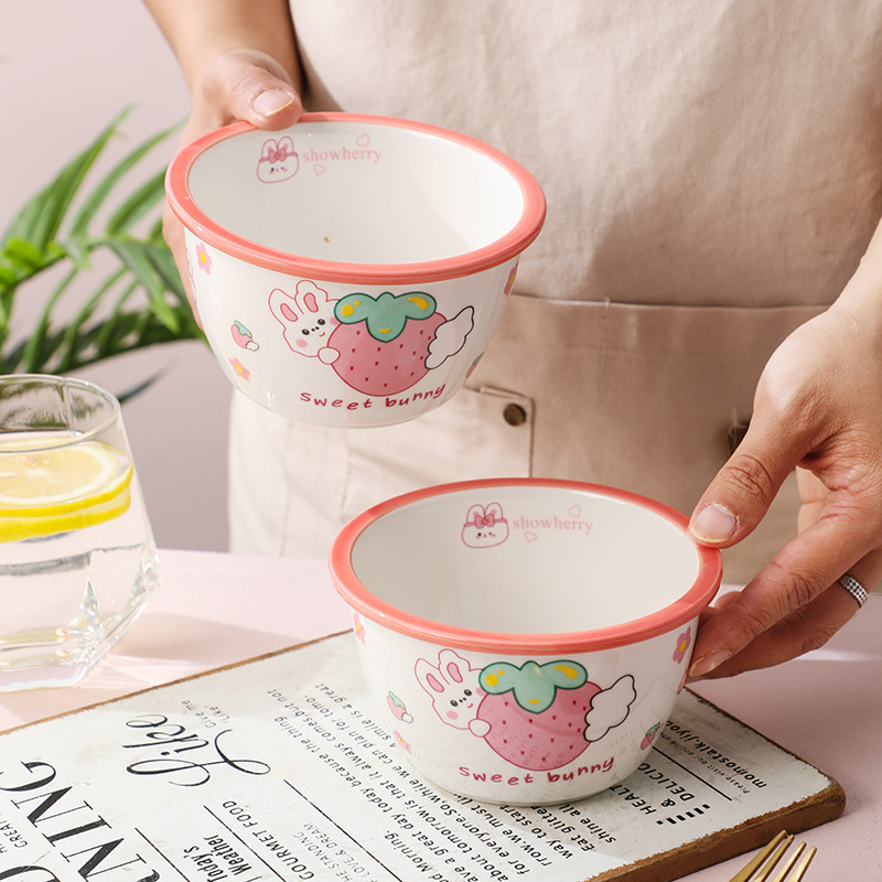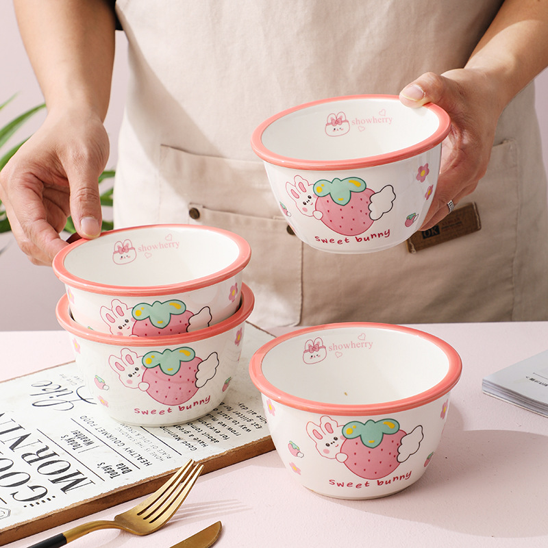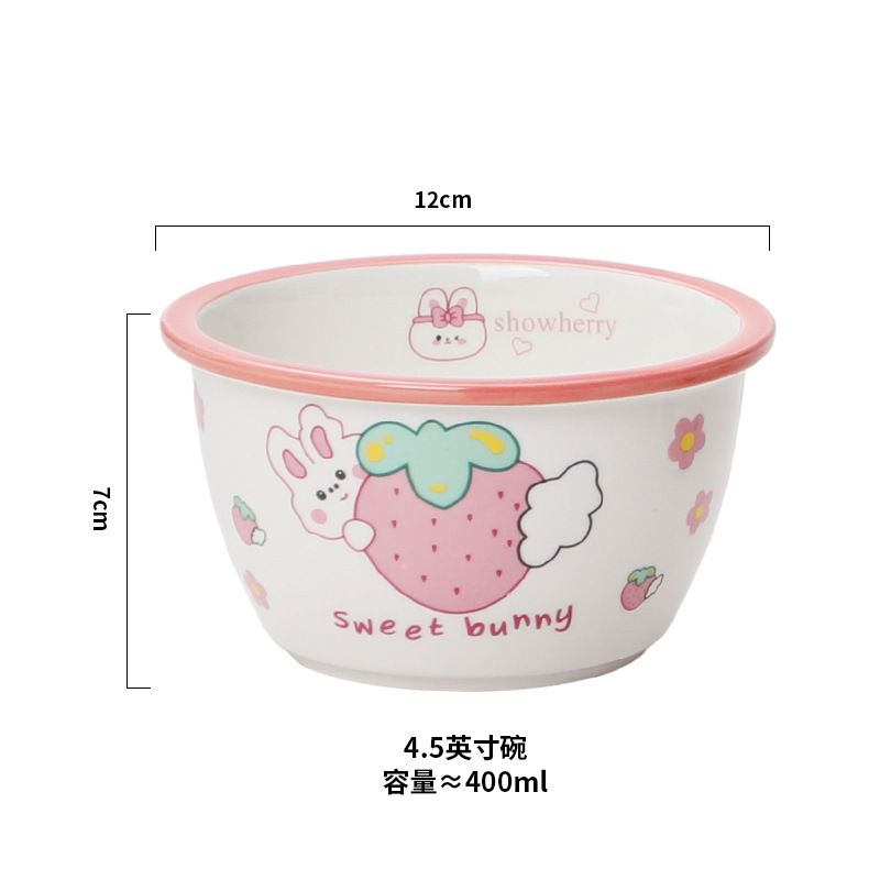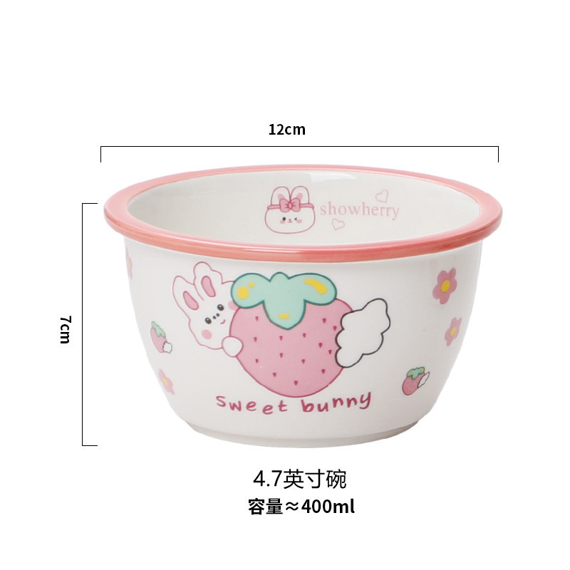 餐具草莓可爱兔粉萌陶瓷4.7寸米饭碗沙拉碗中式餐具釉下彩
