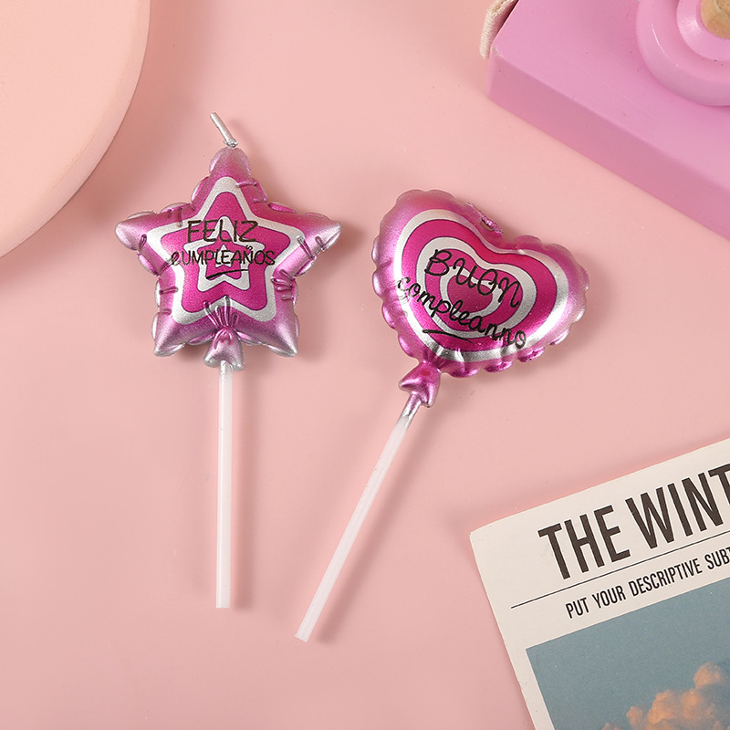 爱心烘焙生日蛋糕蜡烛 亮面五角星蜡烛灯 甜品派对装饰插件批发